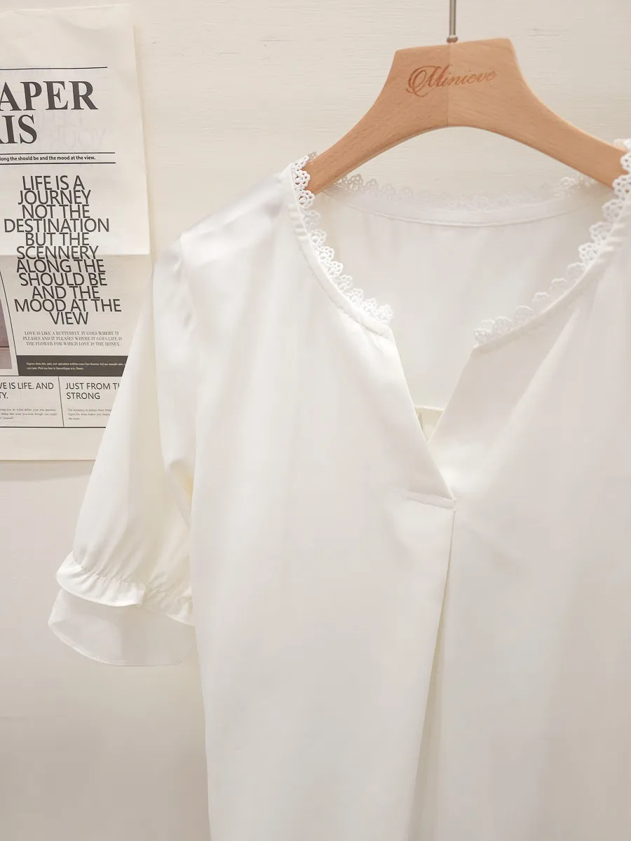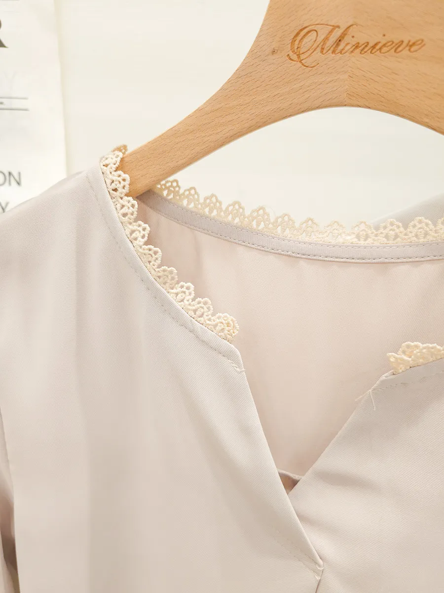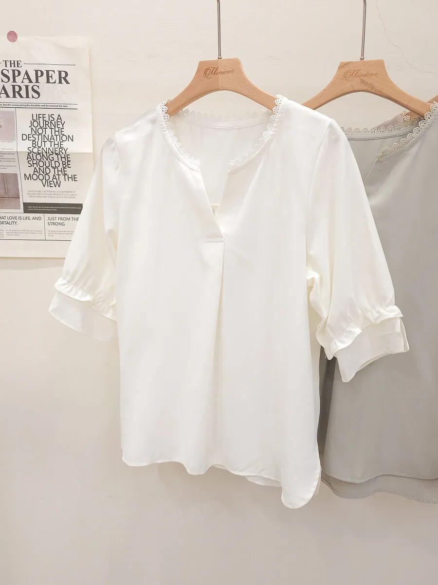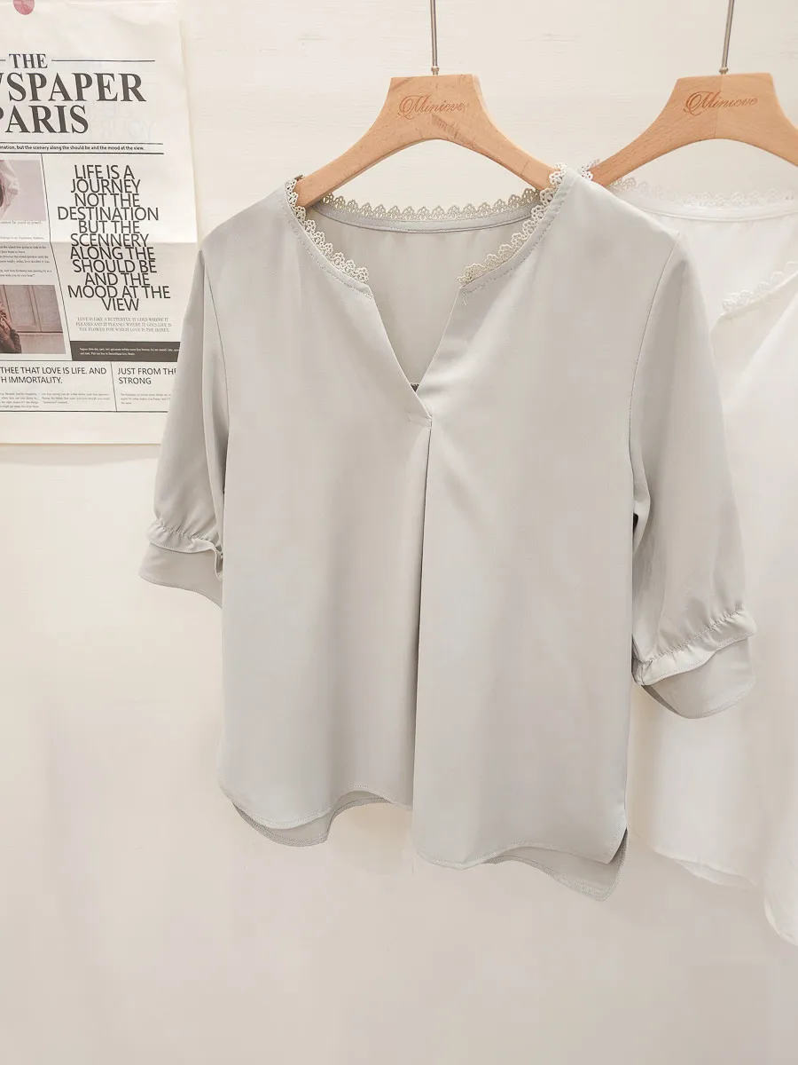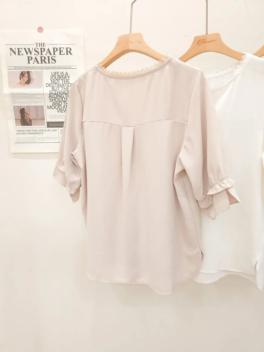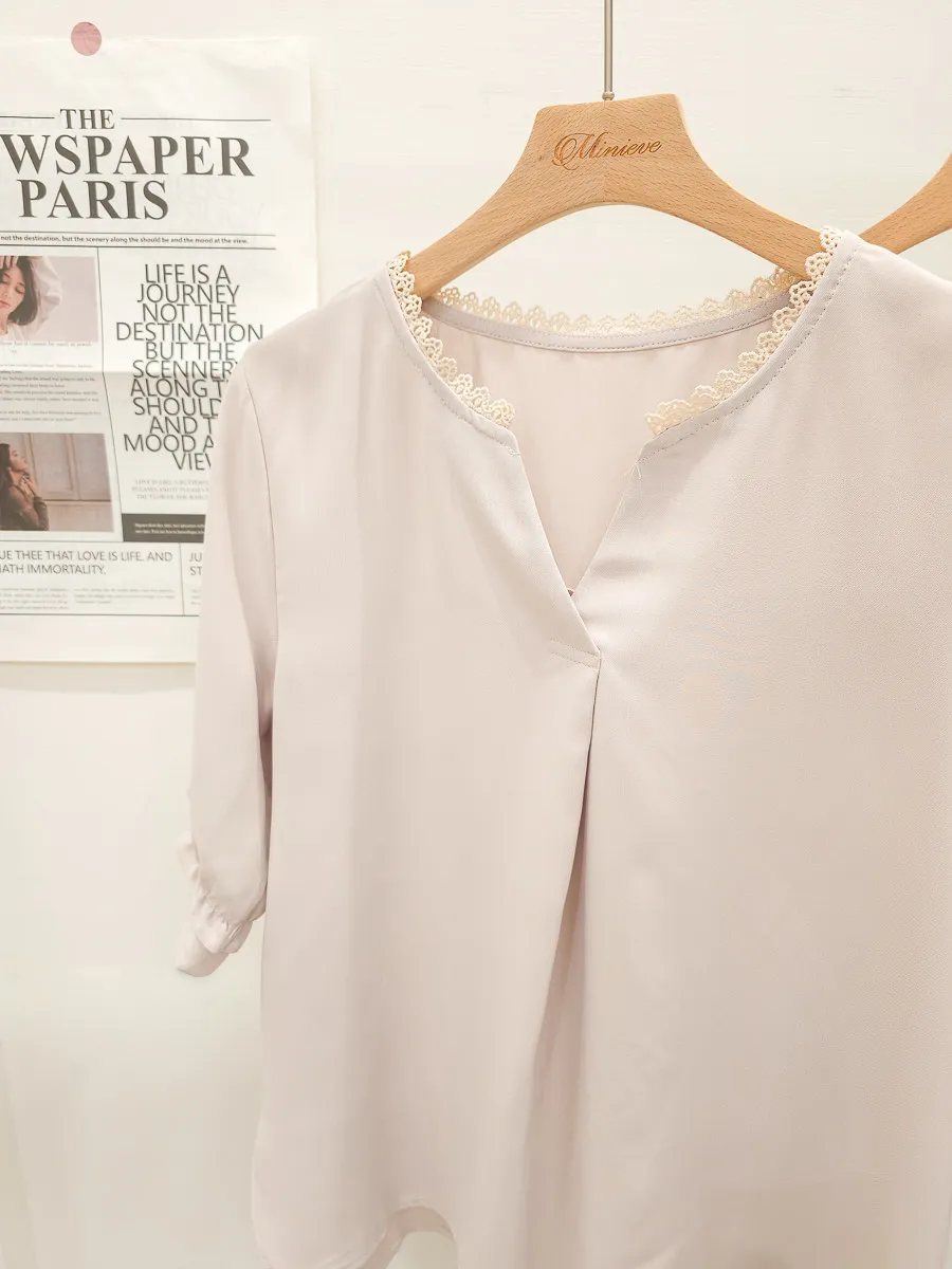 滾邊小V領寬摺上衣 3色