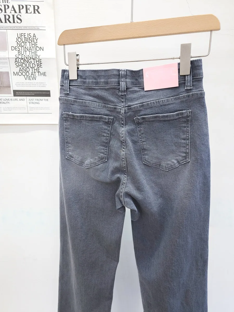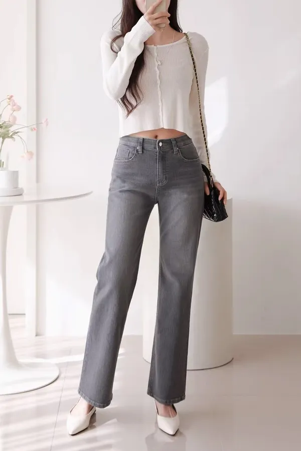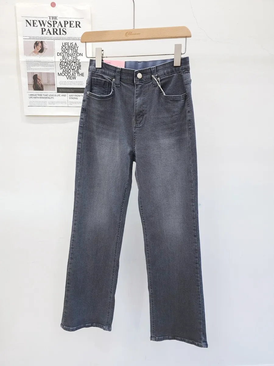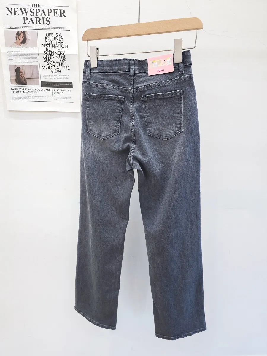 102.正韓 刷舊碳灰小直筒牛仔褲