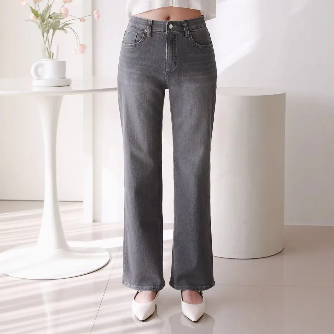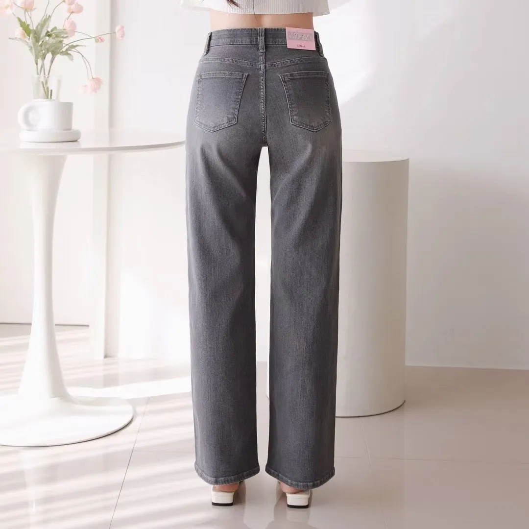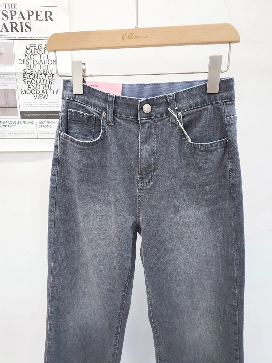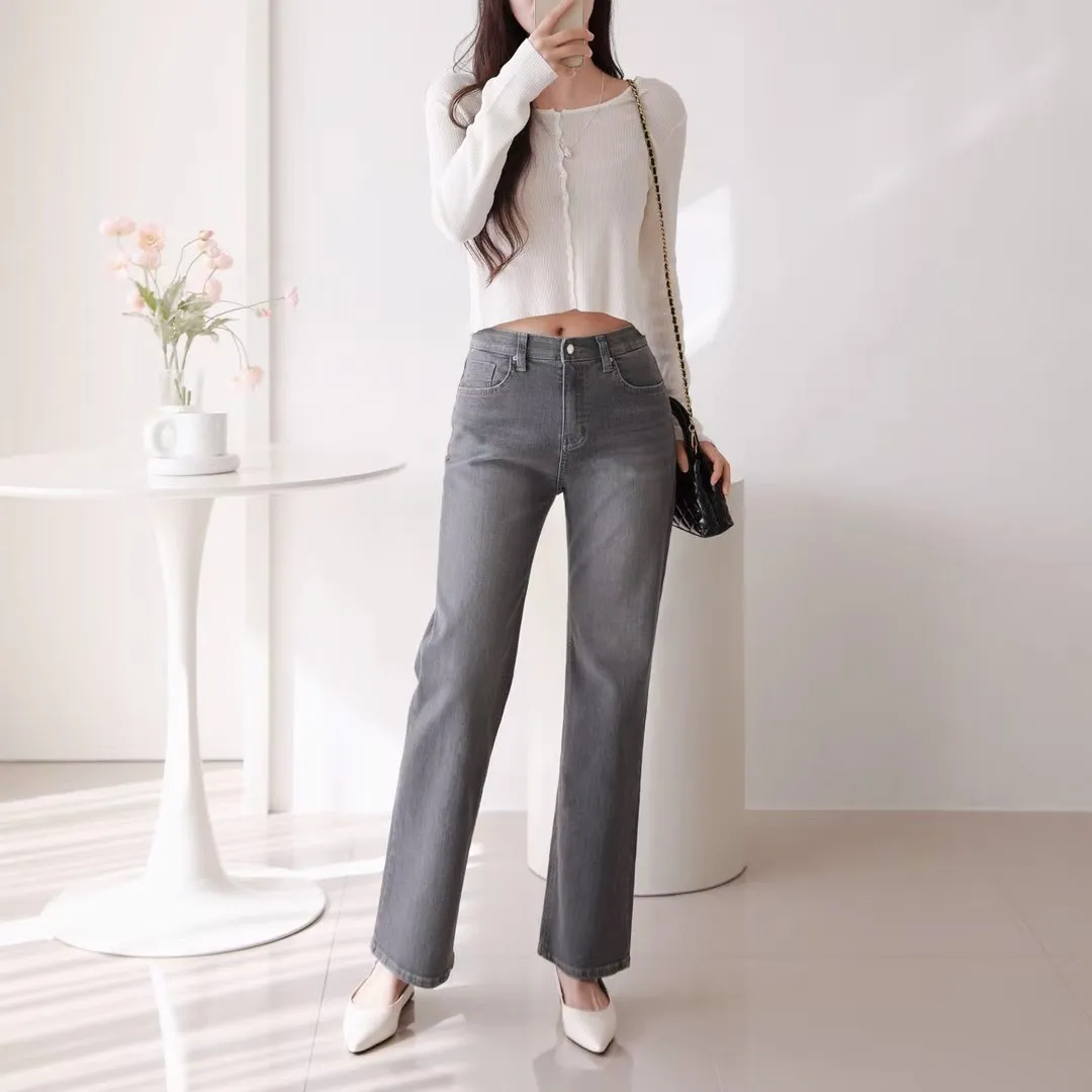 102.正韓 刷舊碳灰小直筒牛仔褲