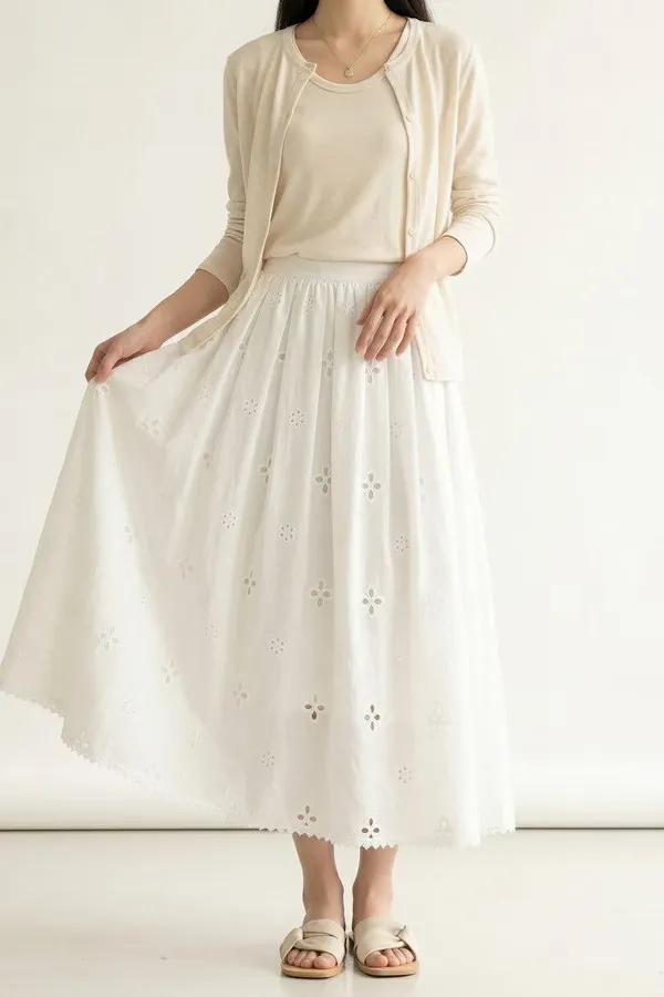 103.正韓 夏季必備燒花小白裙