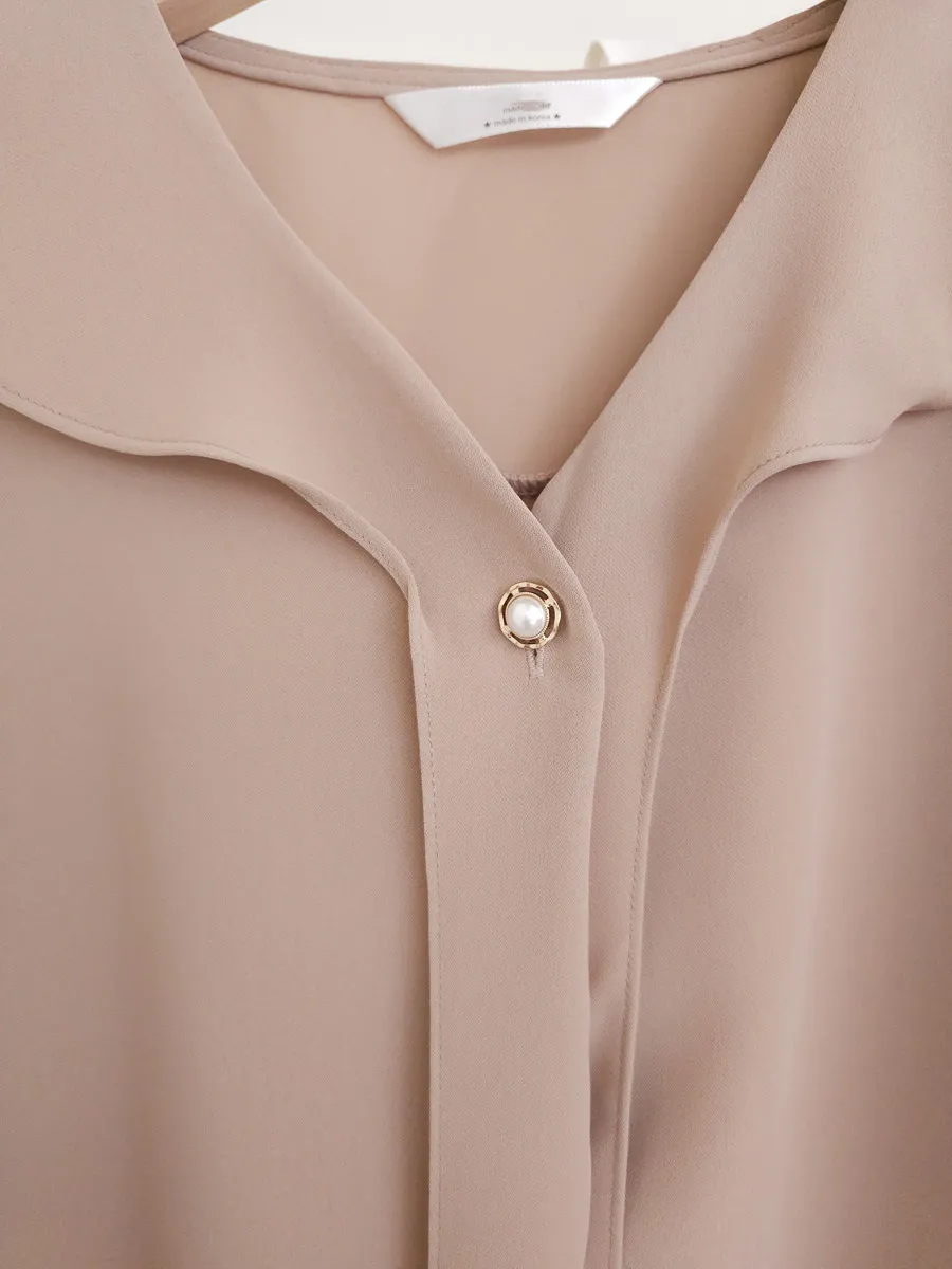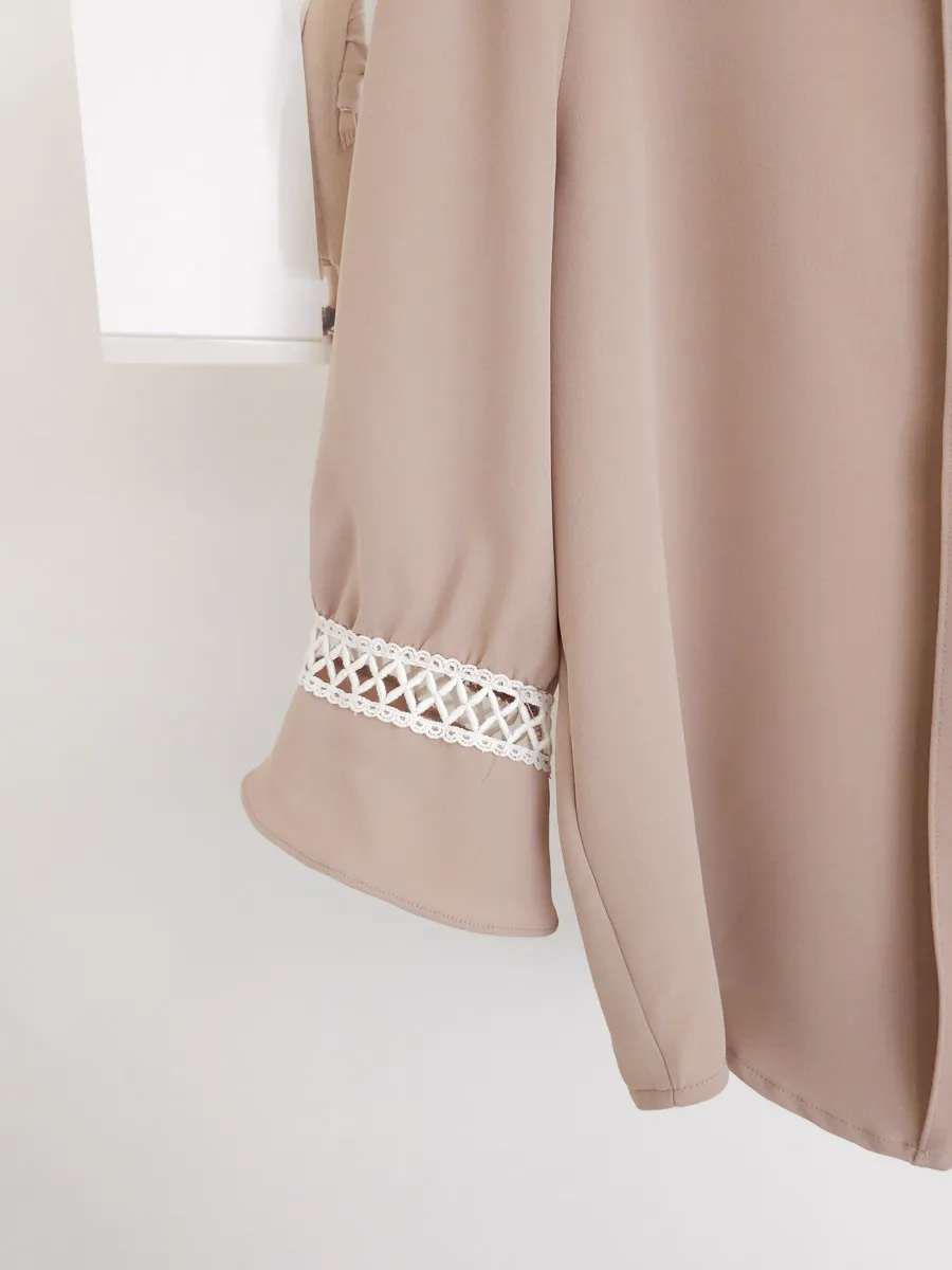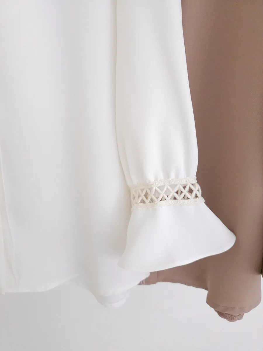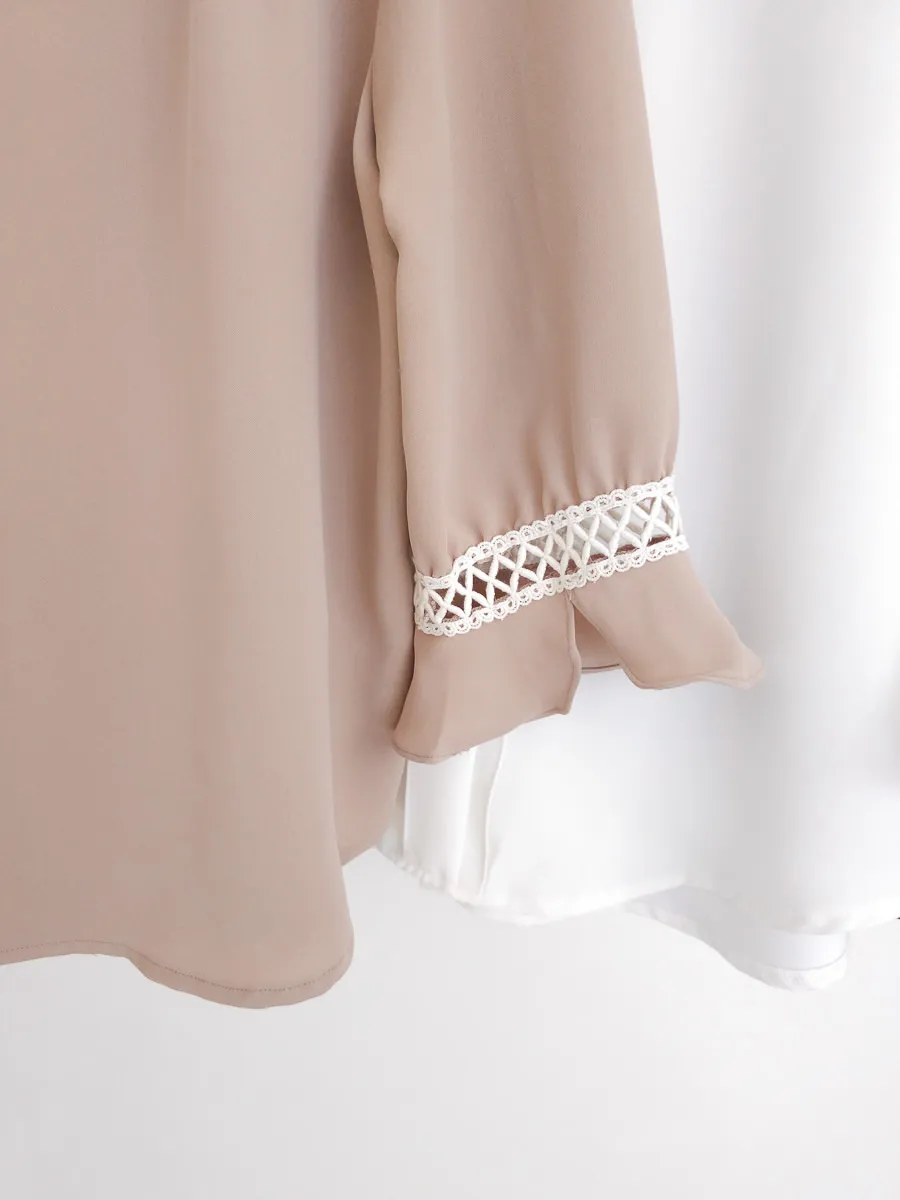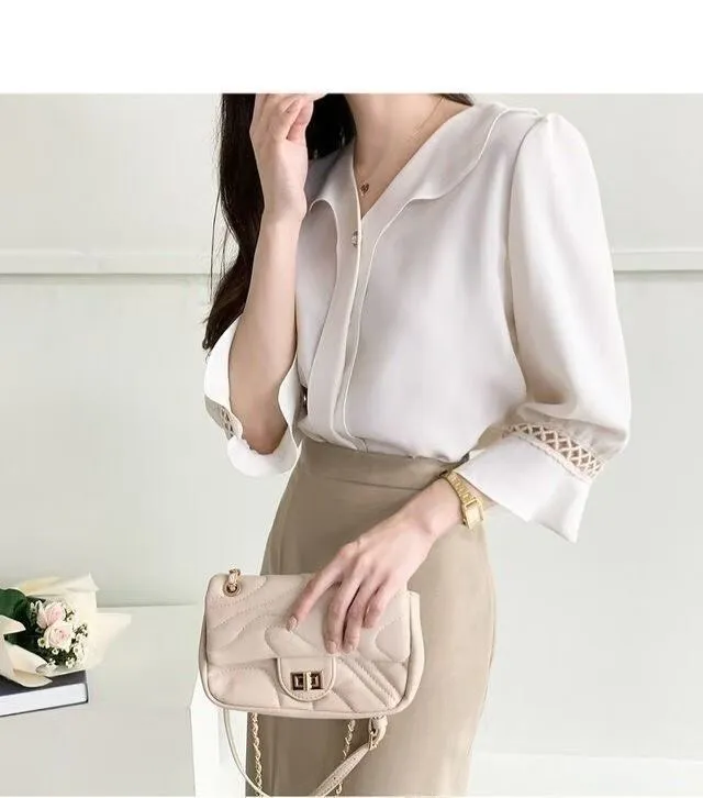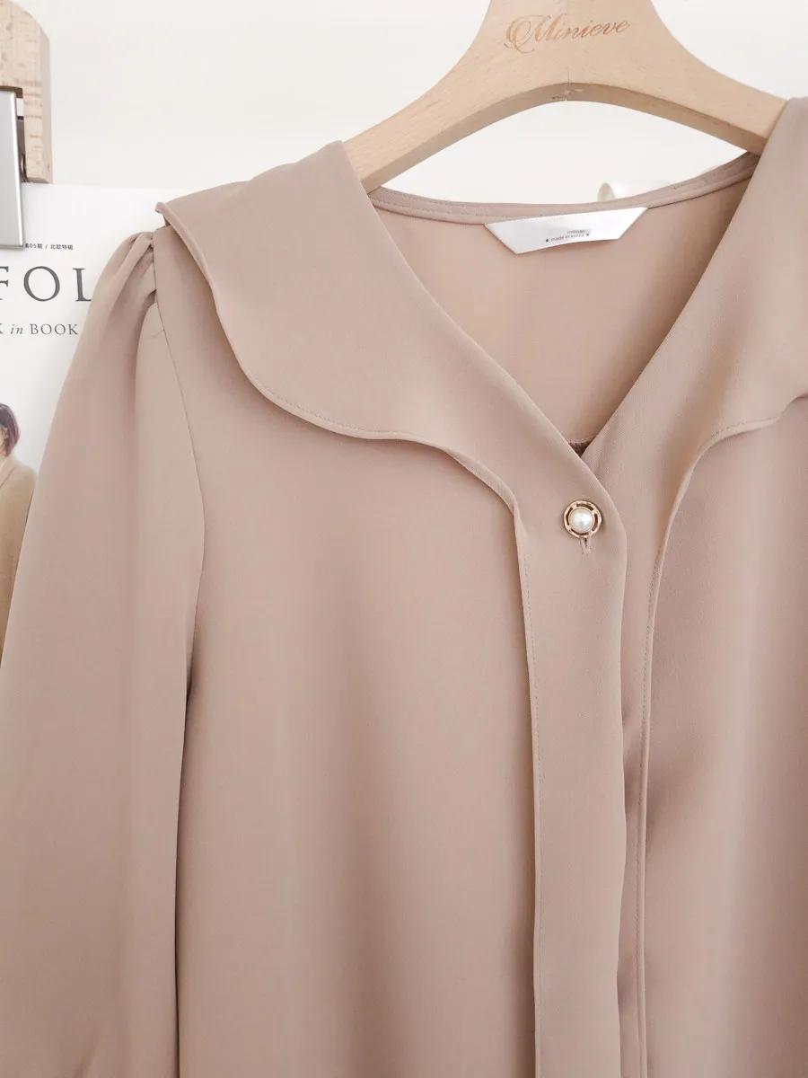 106.正韓 單珠荷葉領鏤空拼袖上衣 3色