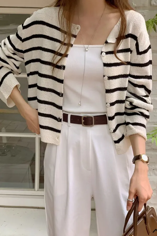 正韓 春季必備條紋針織開衫 3色