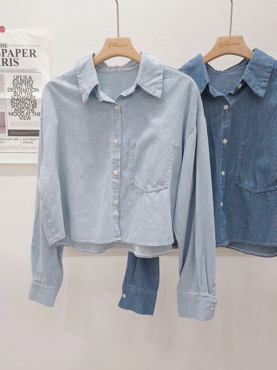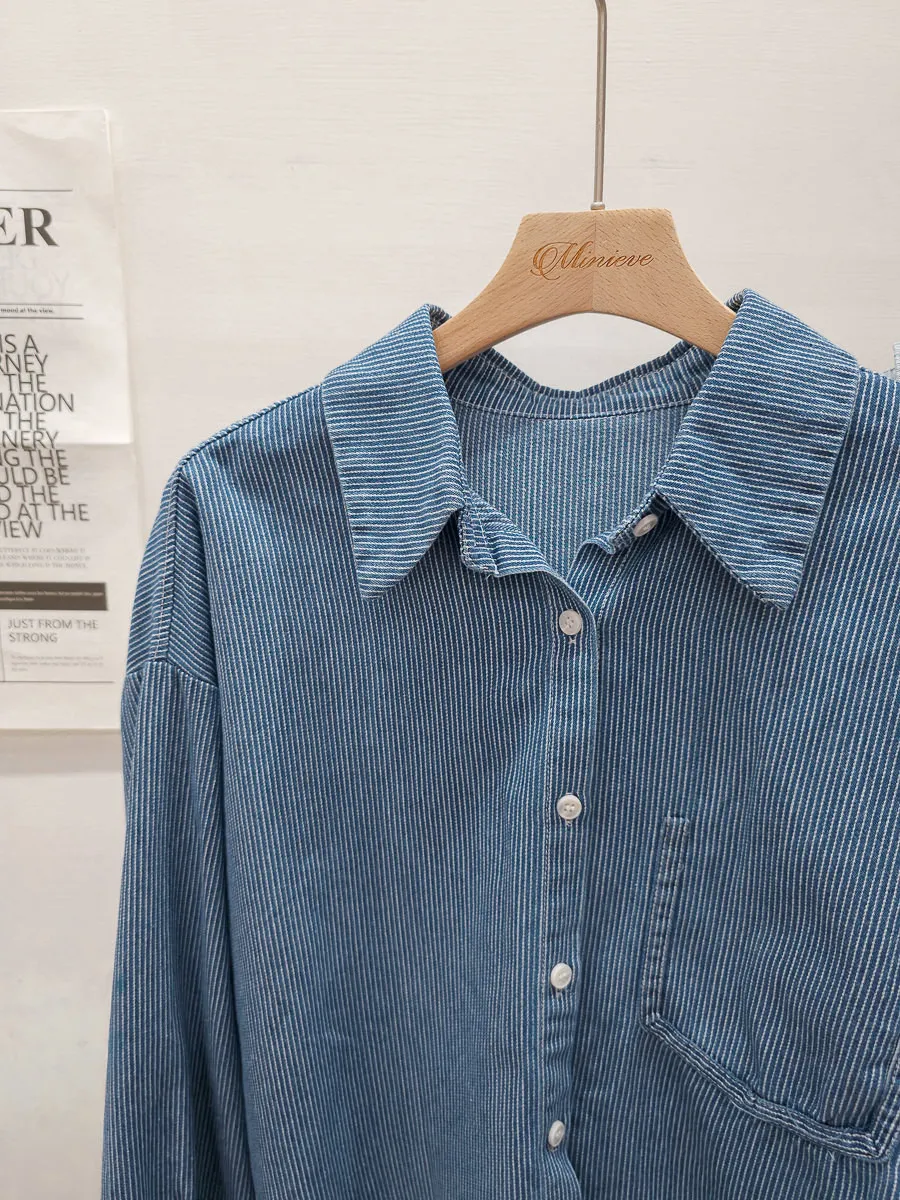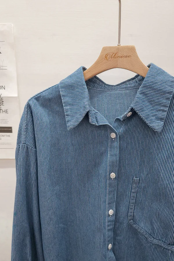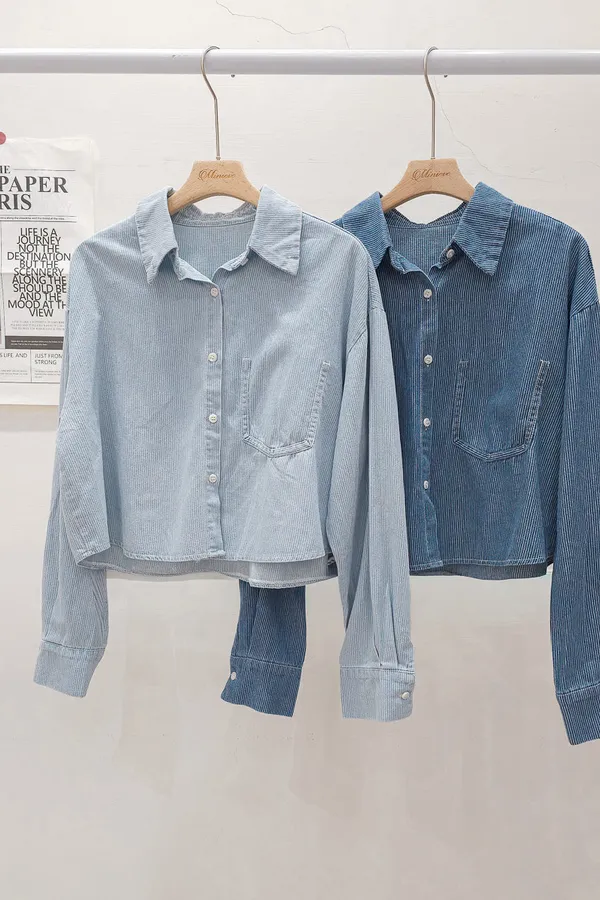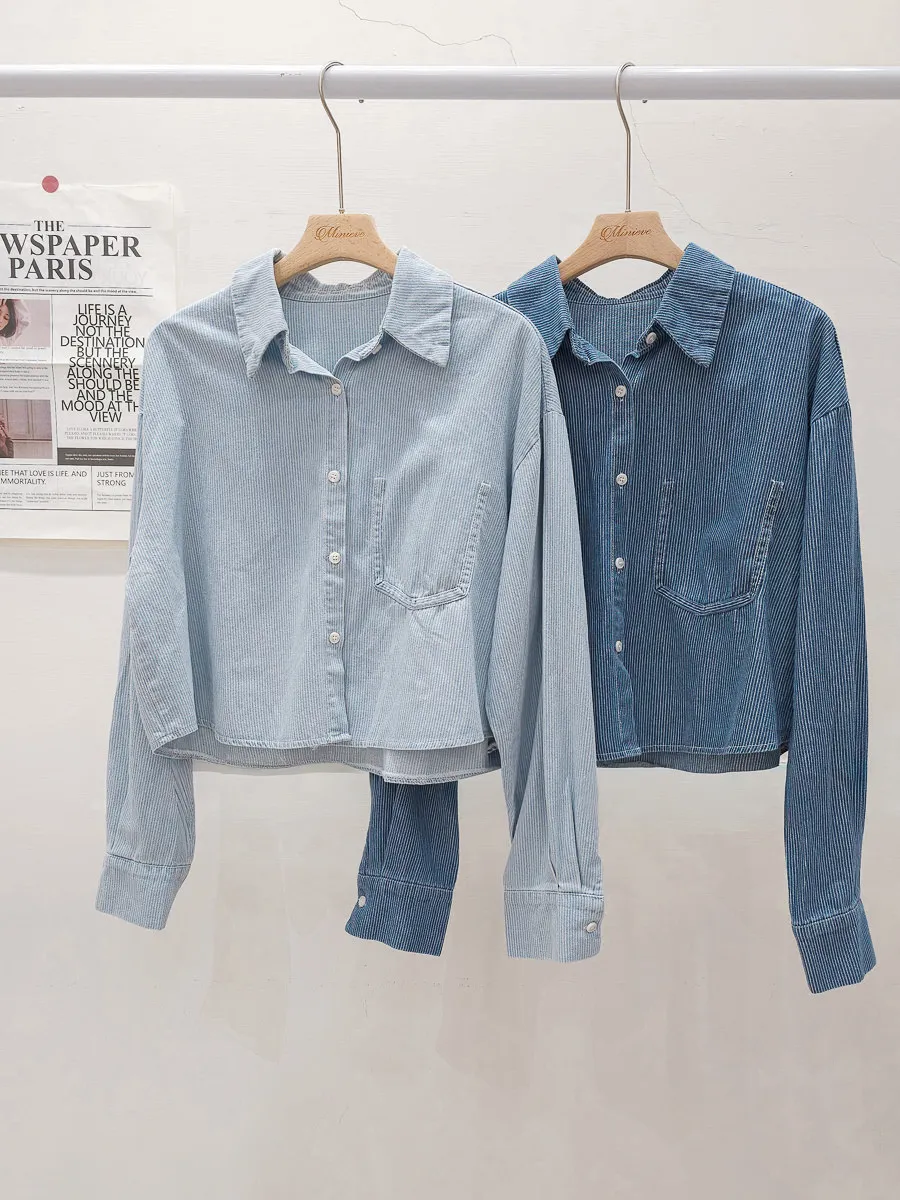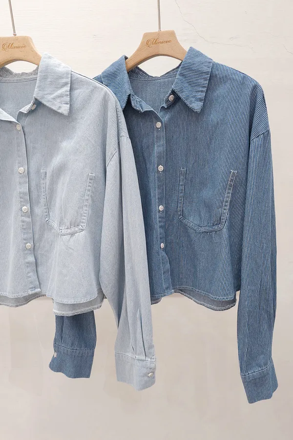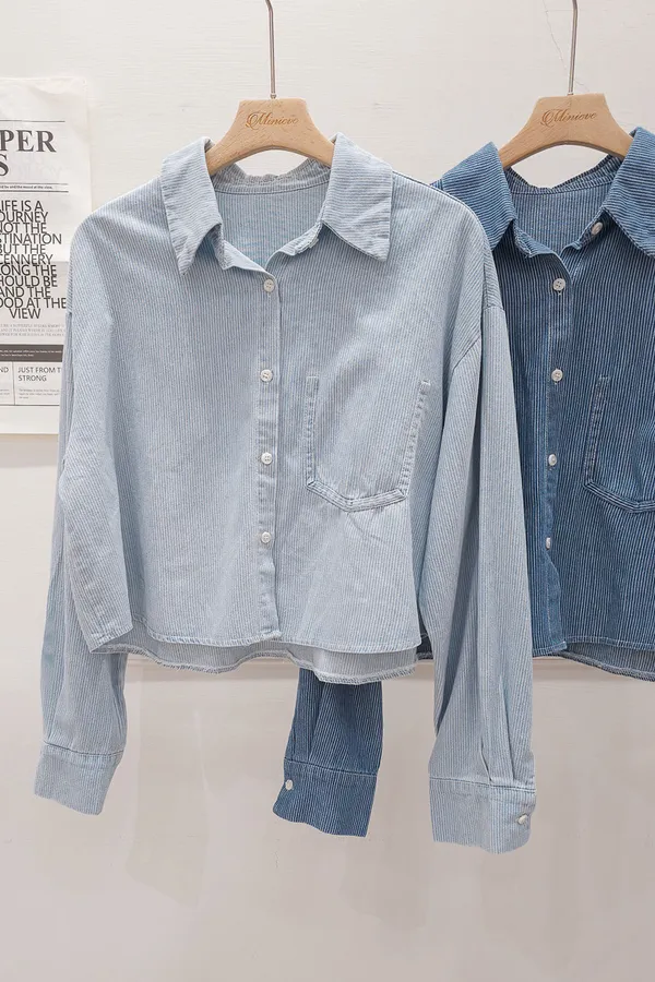 20.正韓 造型單口袋細紋牛仔開衫 2色