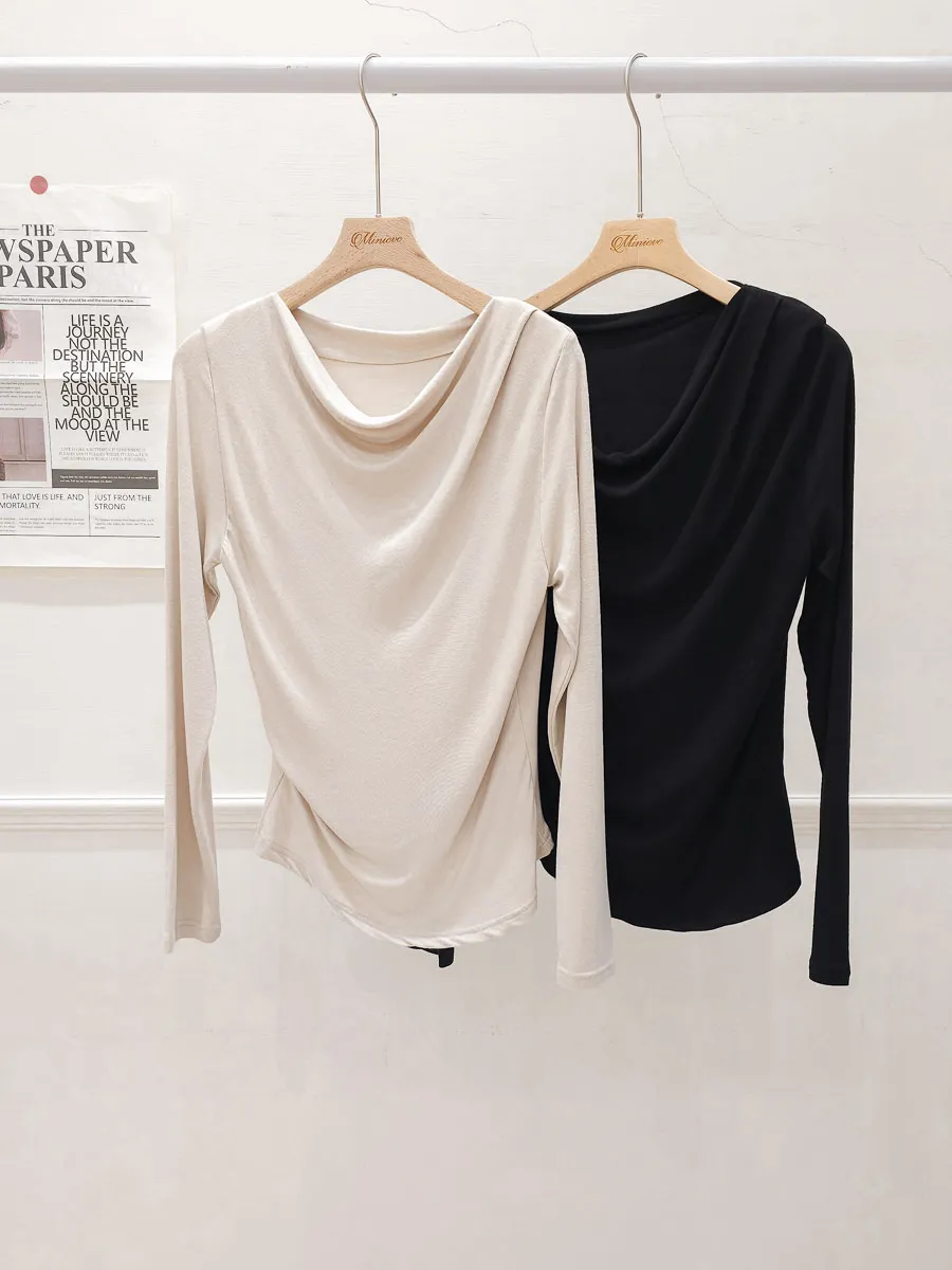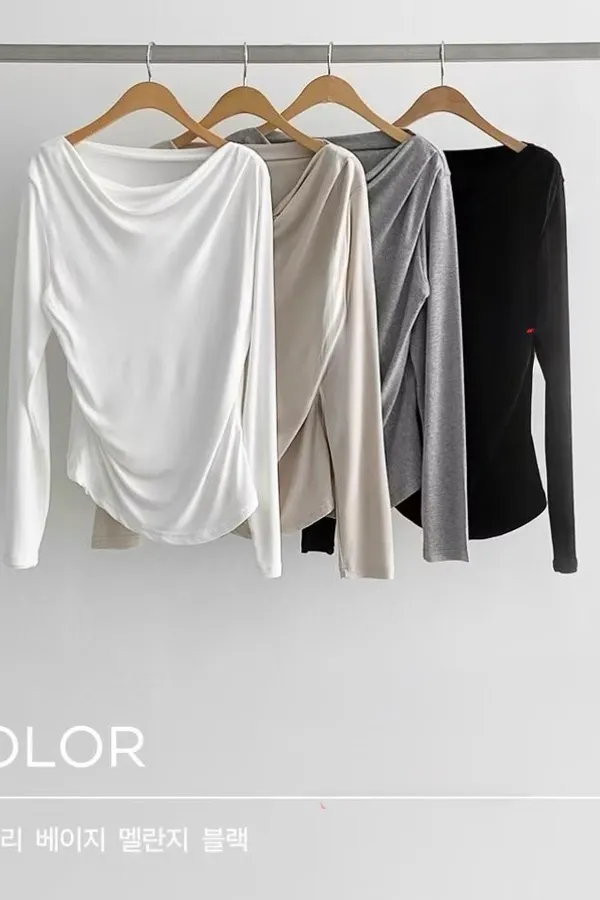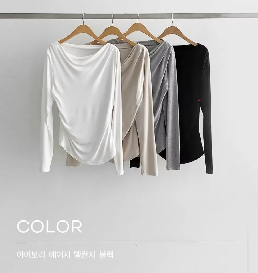 23.正韓 垂領腰線抓皺上衣 4色