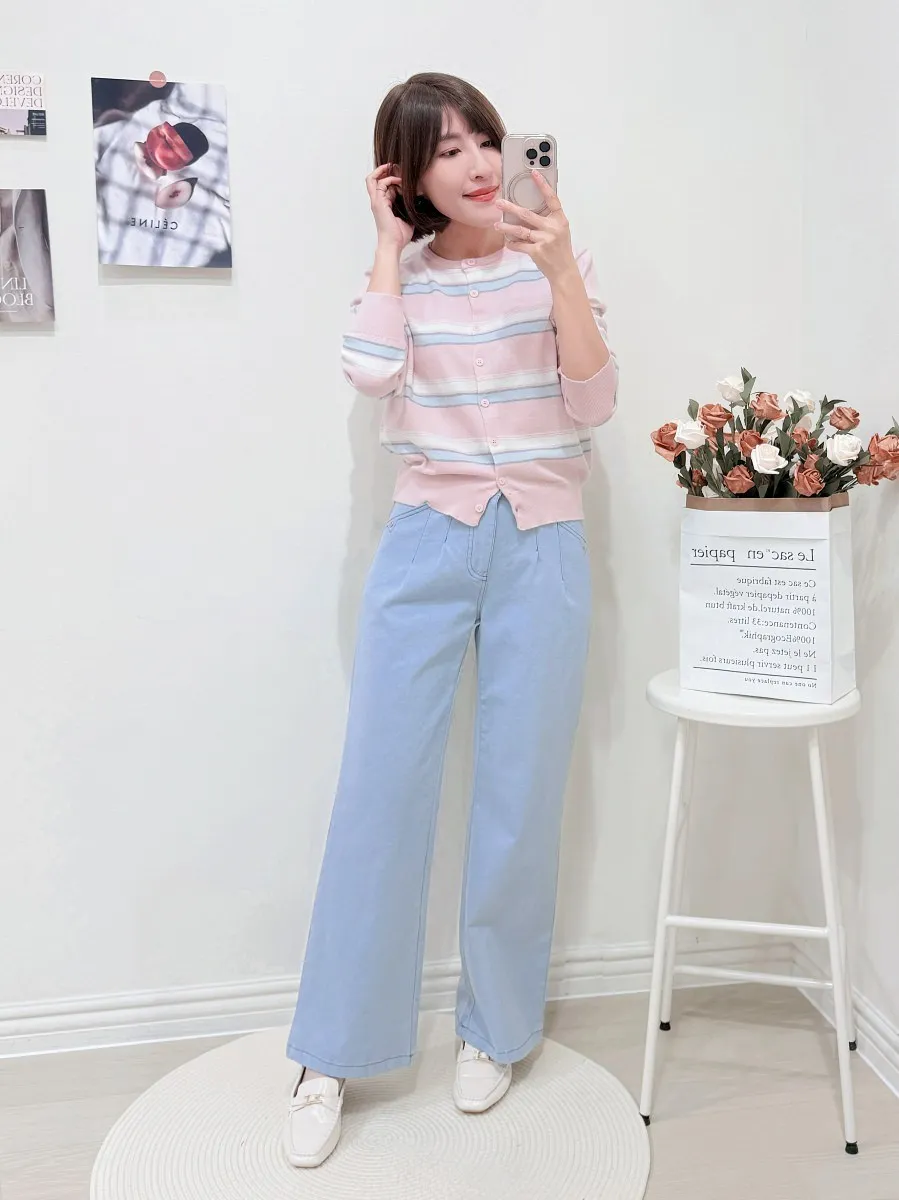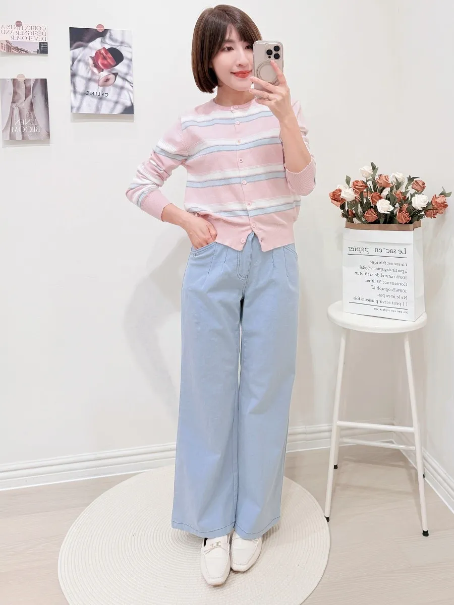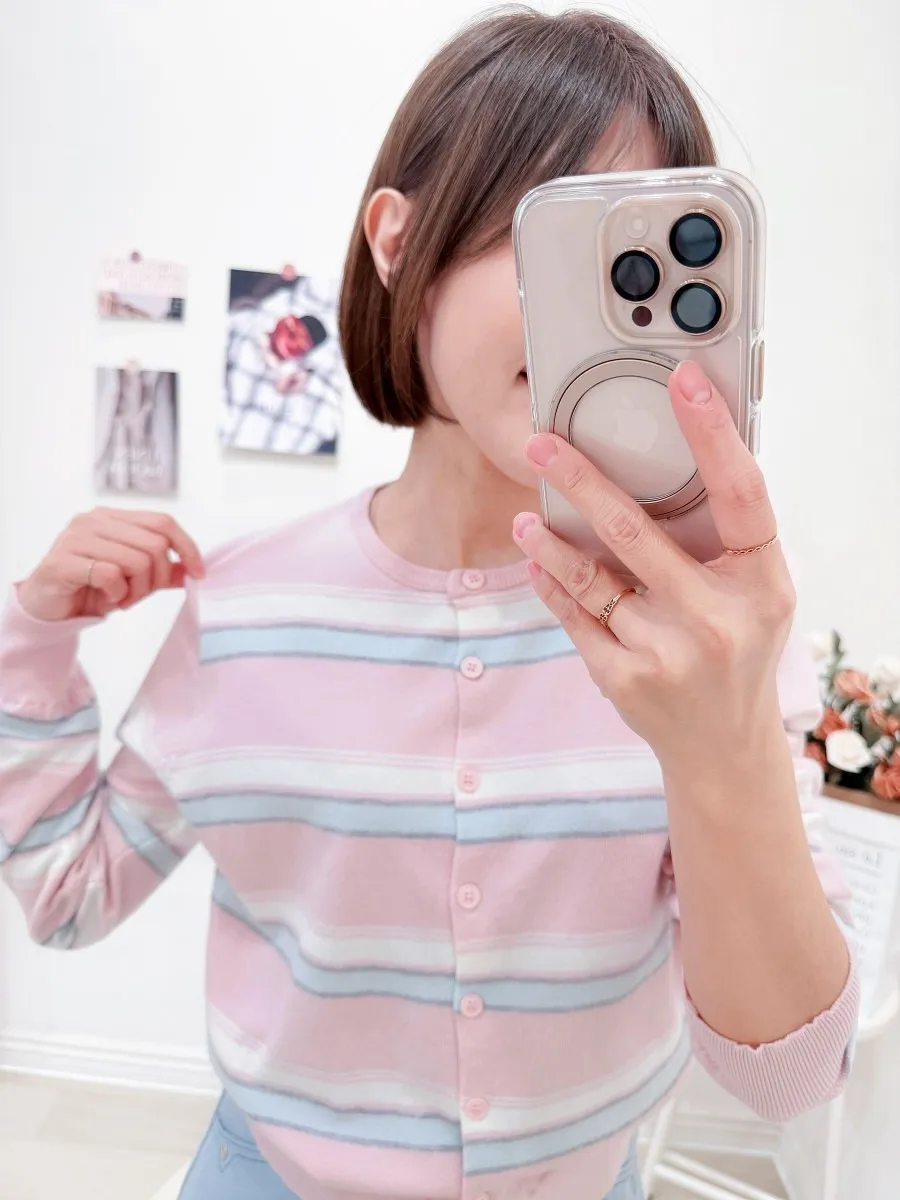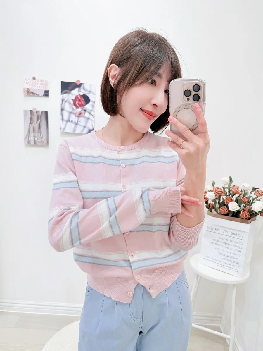 正韓 配色條紋針織開衫 2色