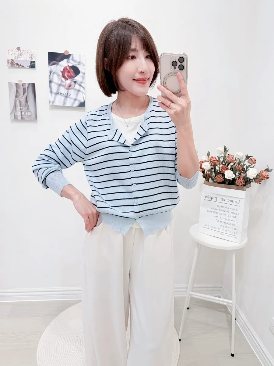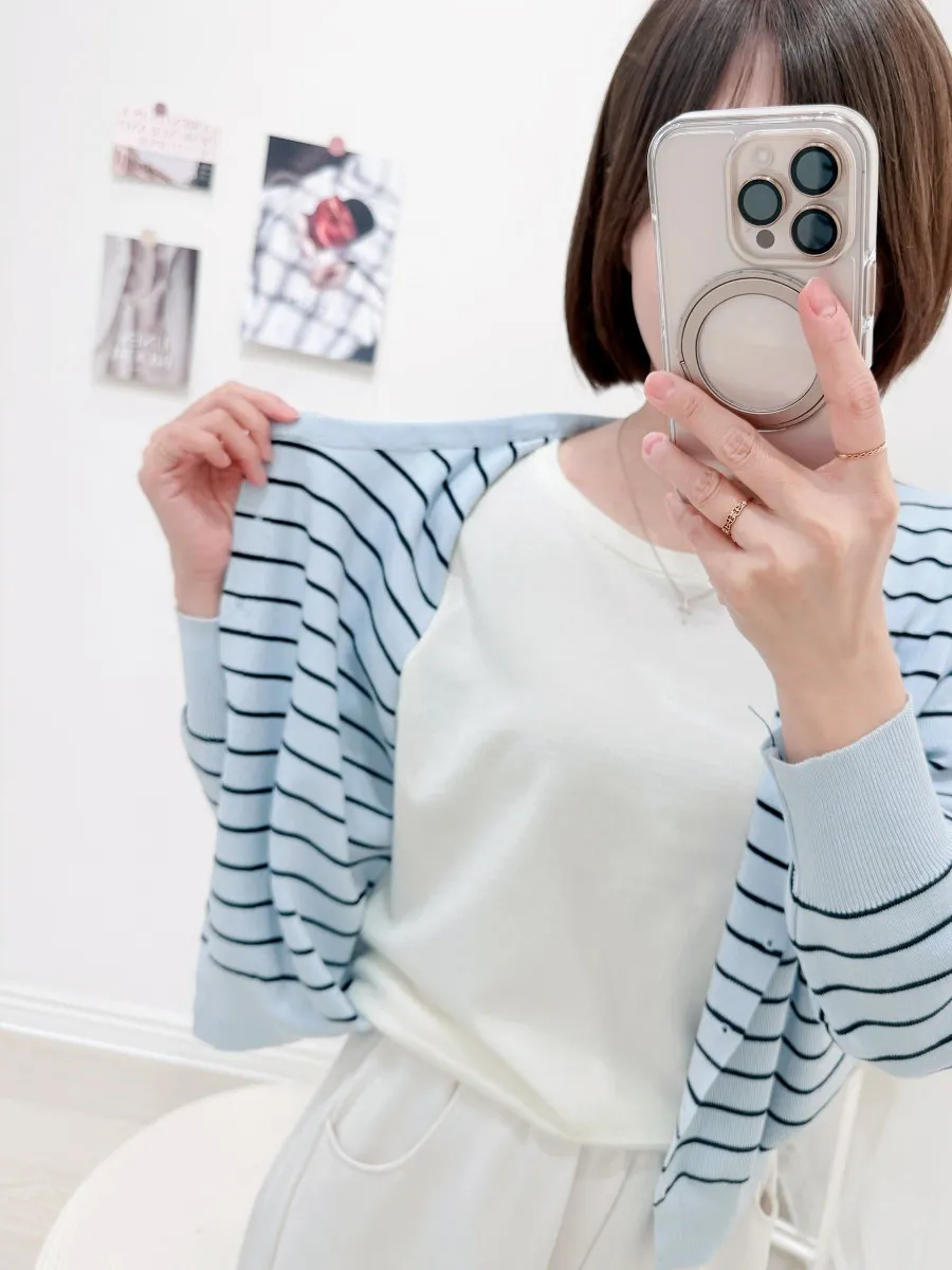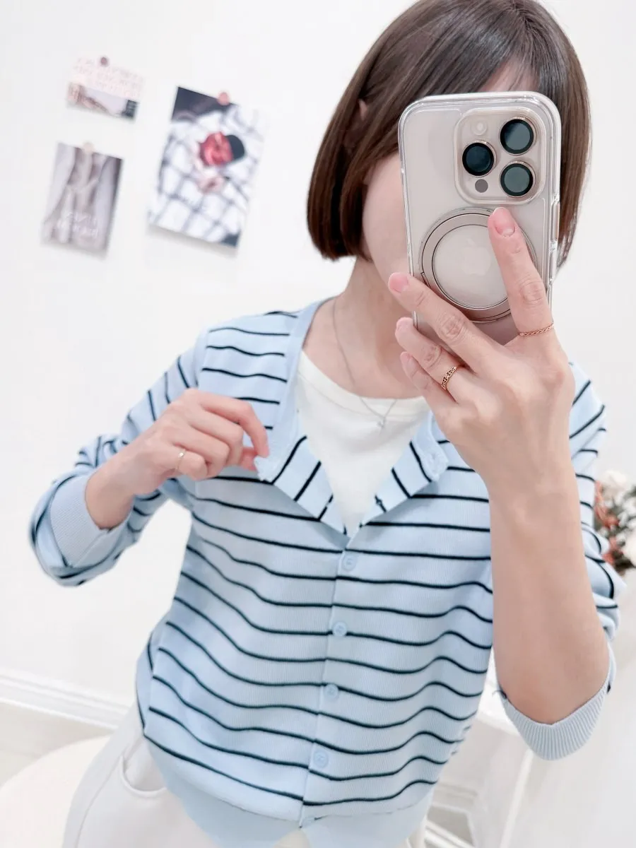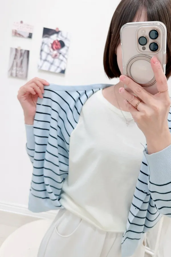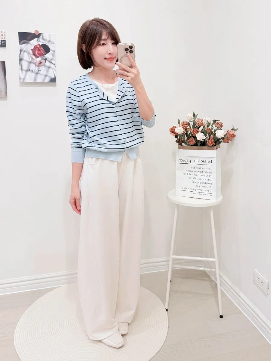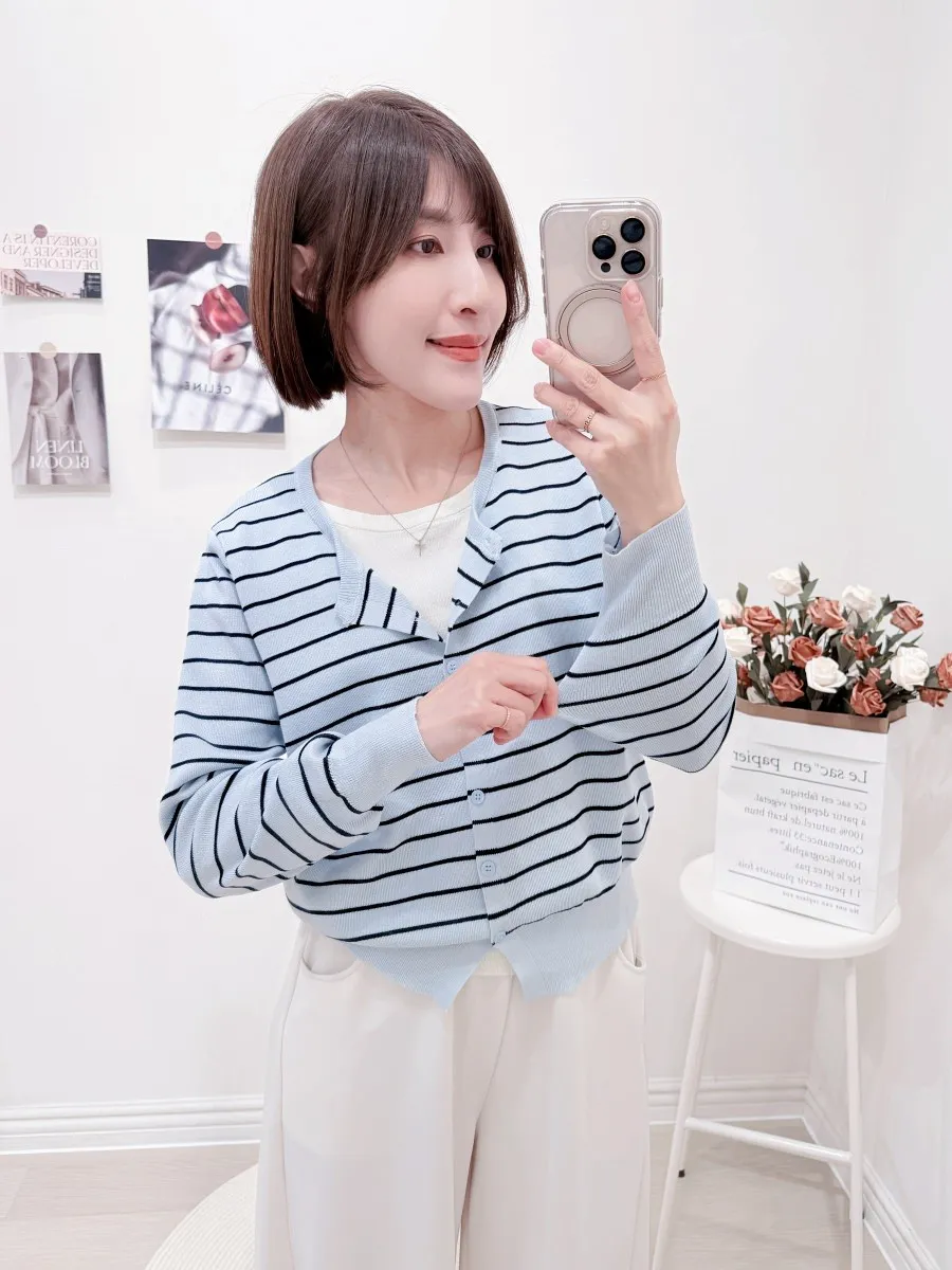 正韓 條紋假兩件針織開衫 2色