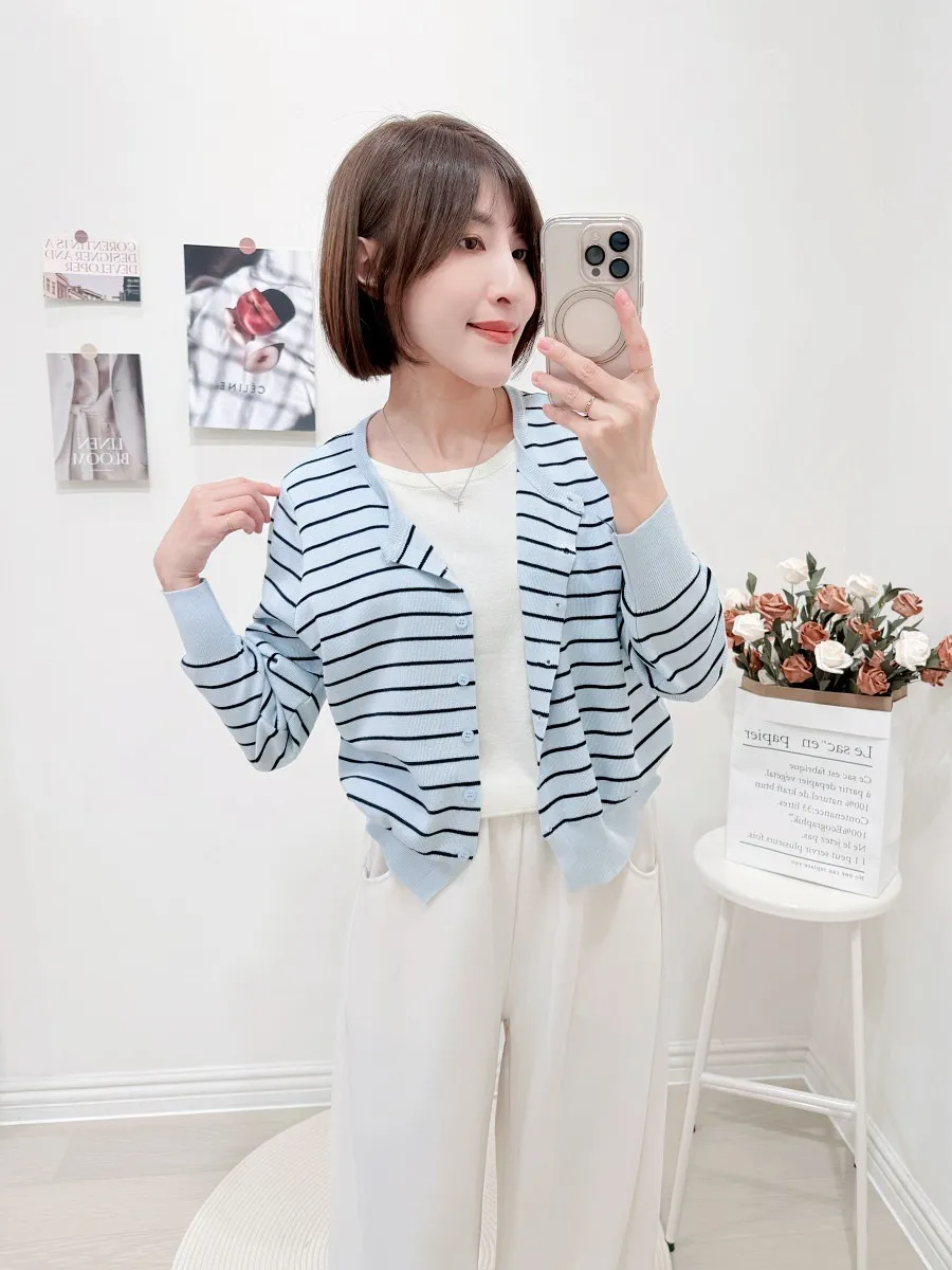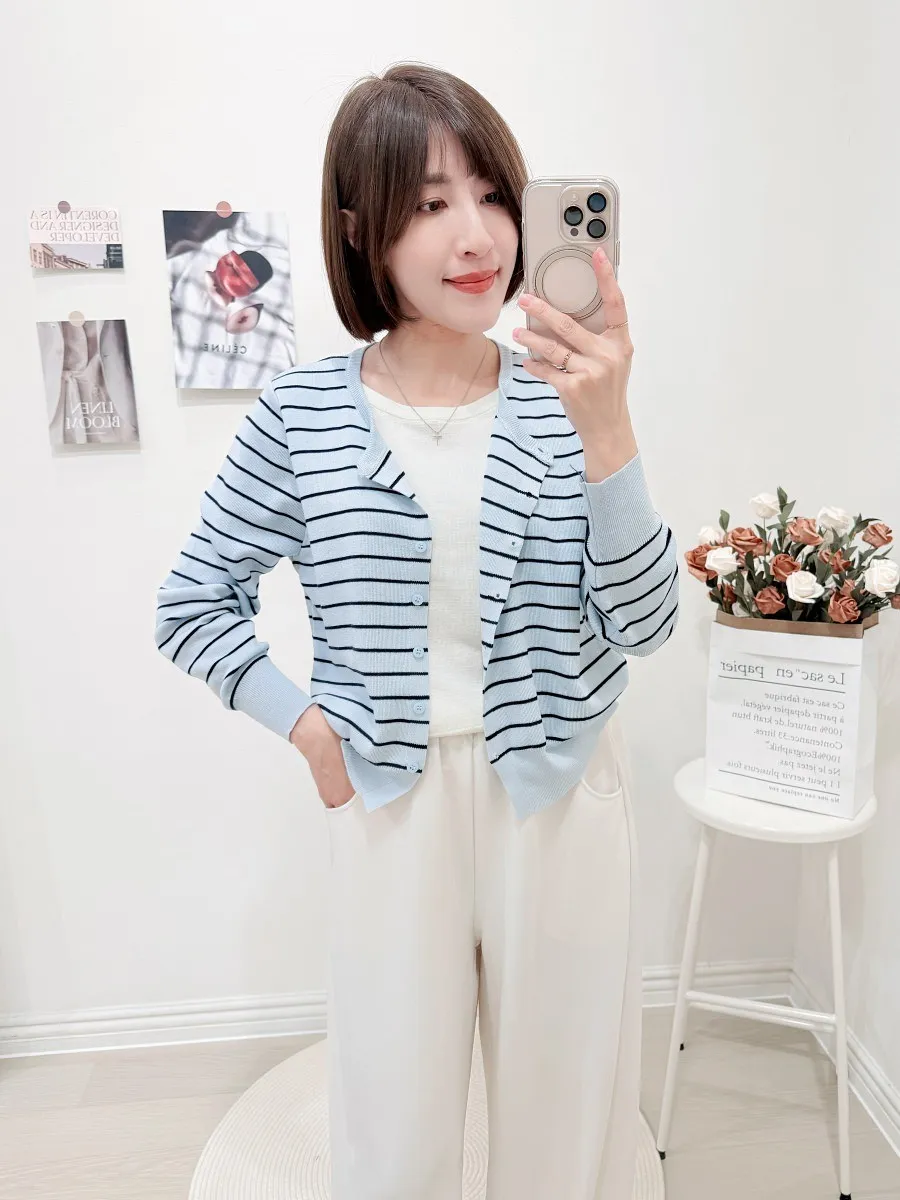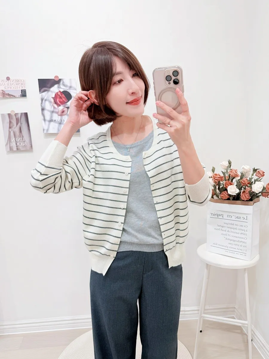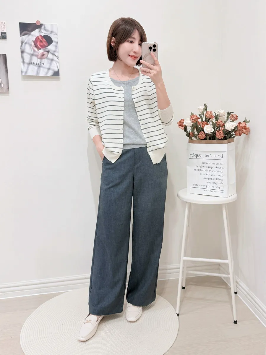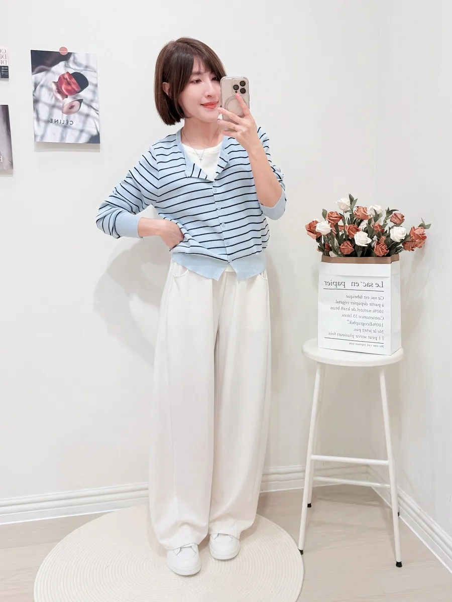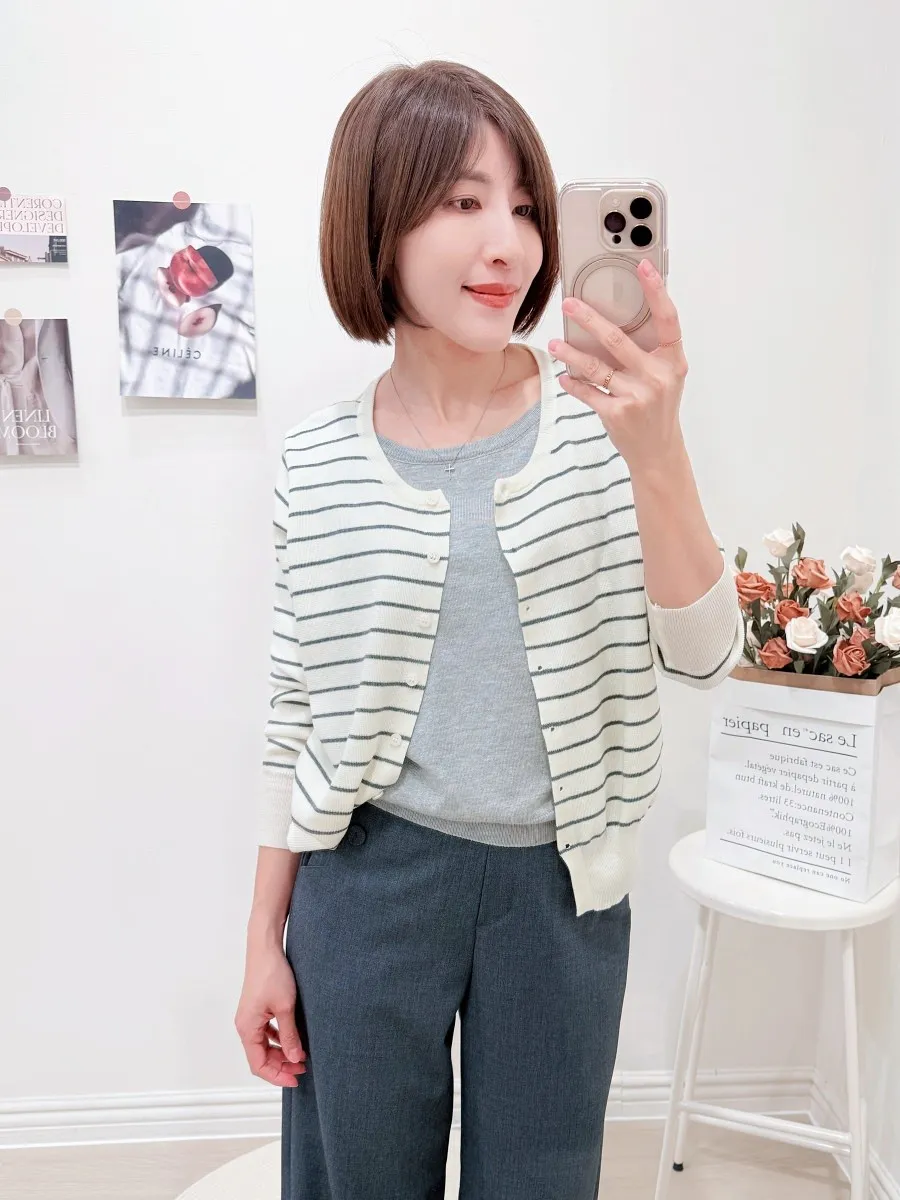 正韓 條紋假兩件針織開衫 2色