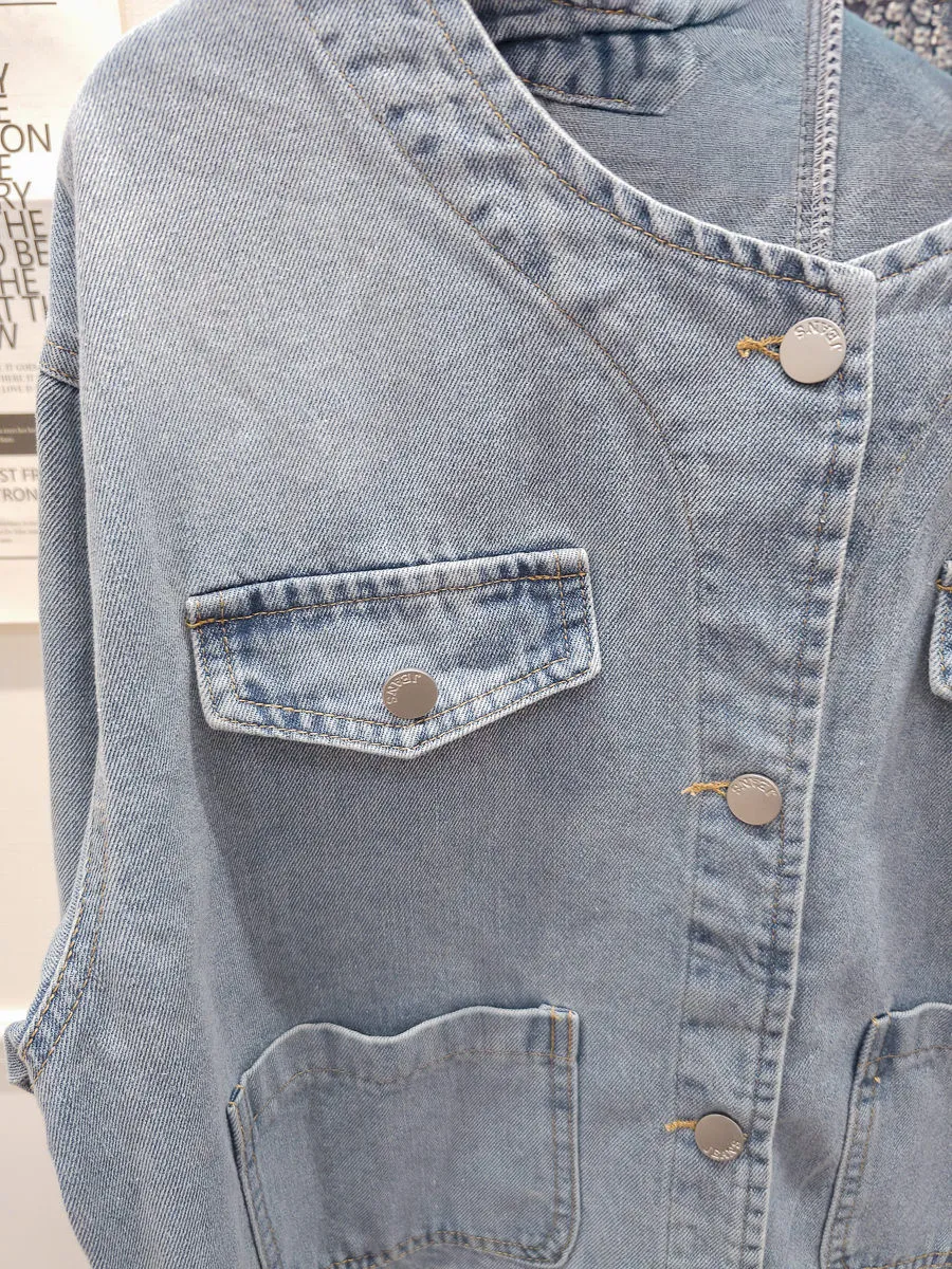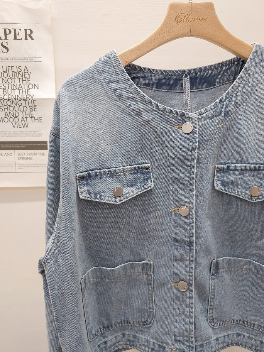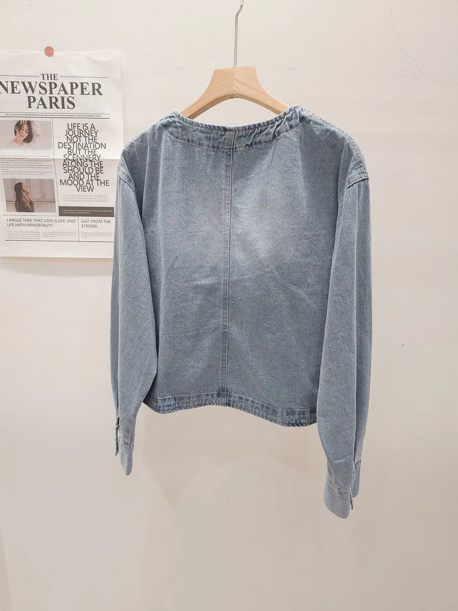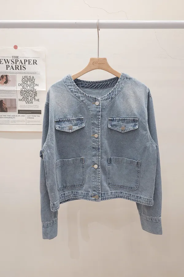 35.正韓 口袋圓領薄牛仔外套