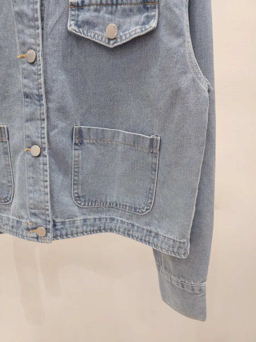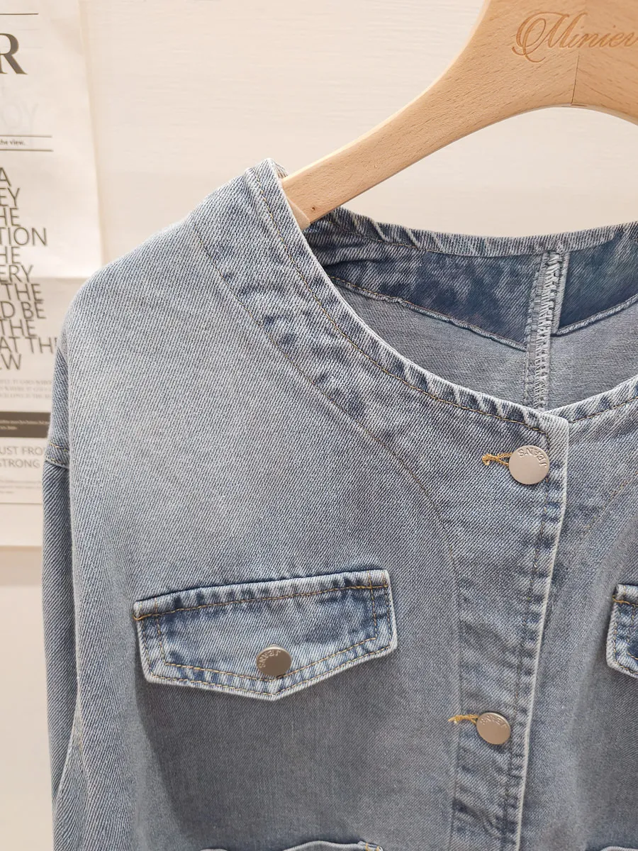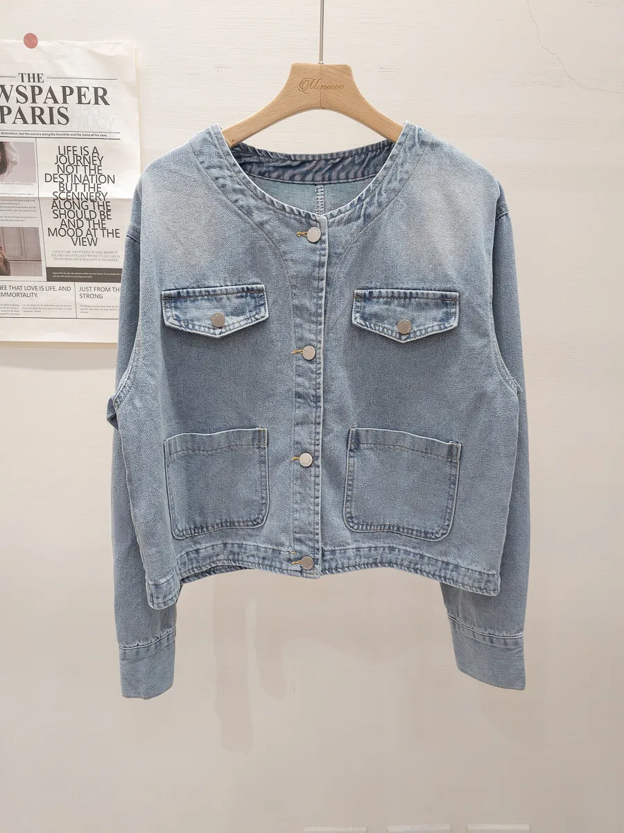 35.正韓 口袋圓領薄牛仔外套