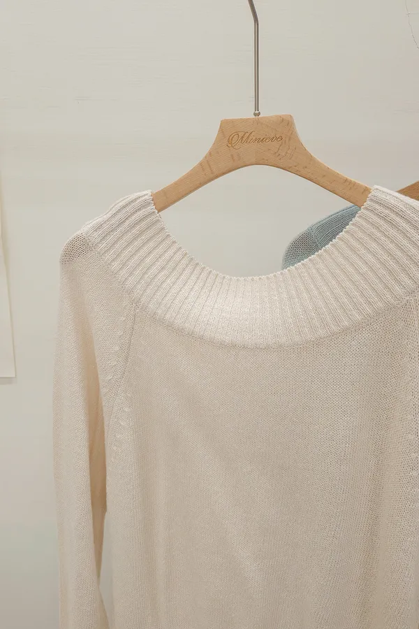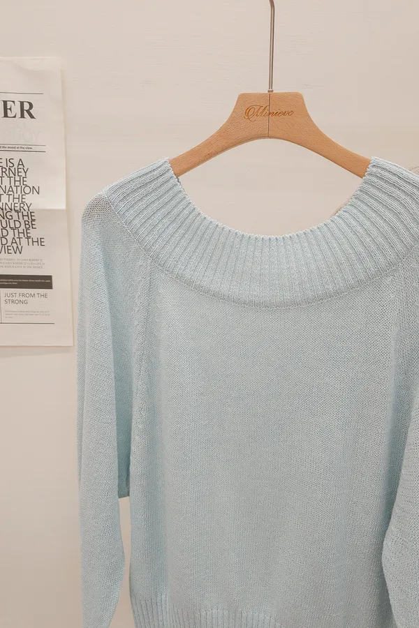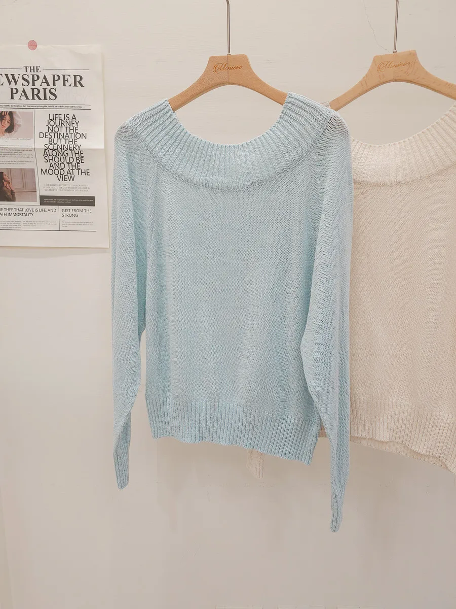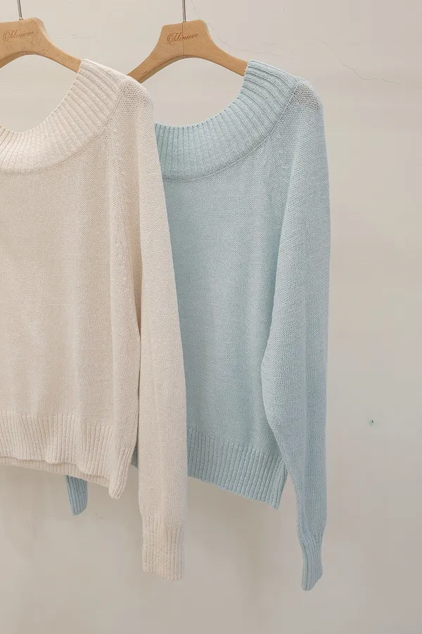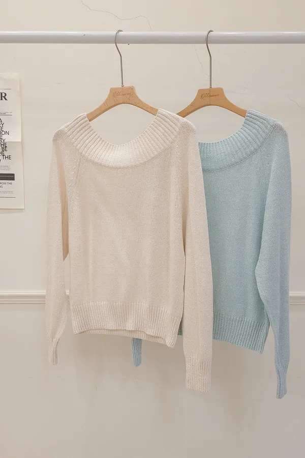 41.正韓 坑條寬圓領針織上衣 2色