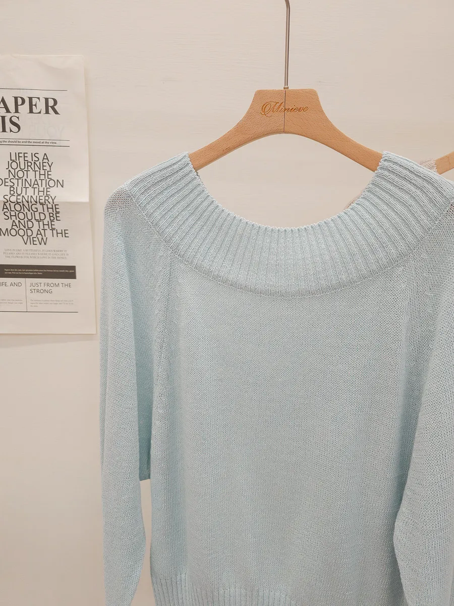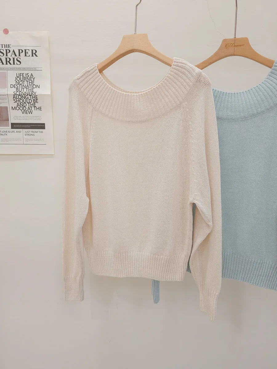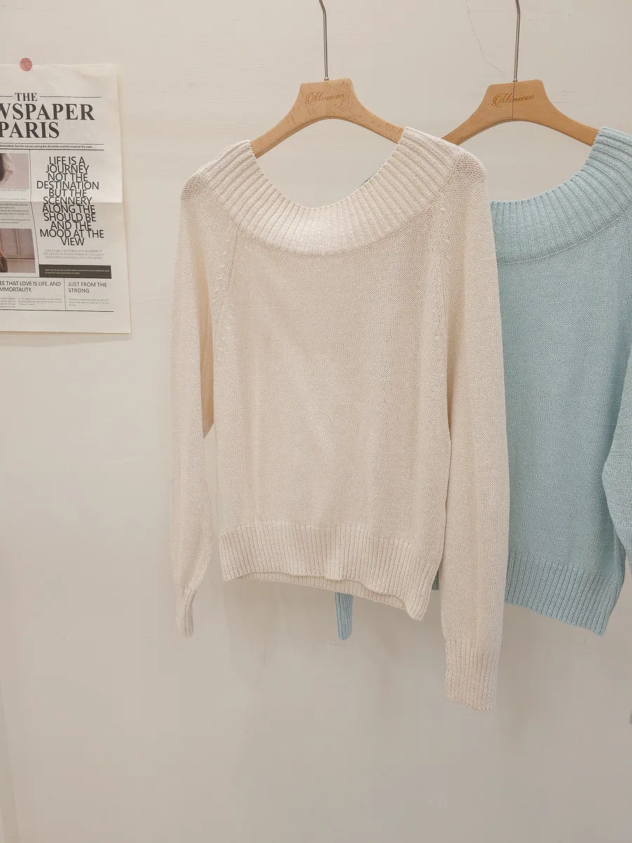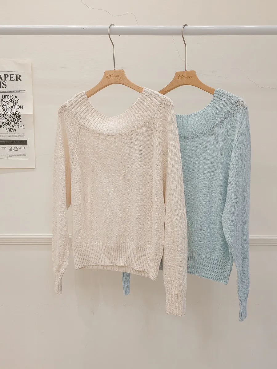 41.正韓 坑條寬圓領針織上衣 2色