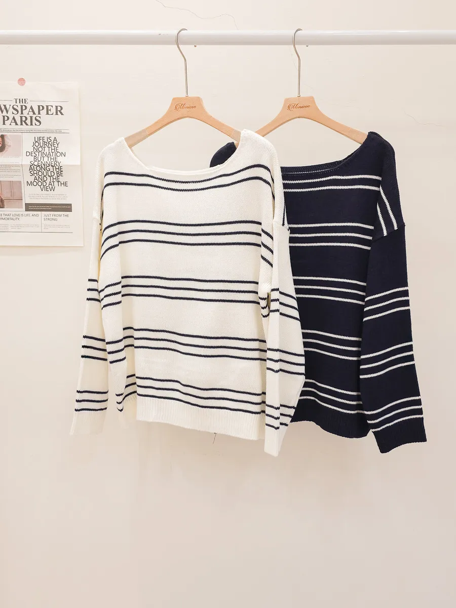 42.正韓 寬細條紋針織上衣 2色