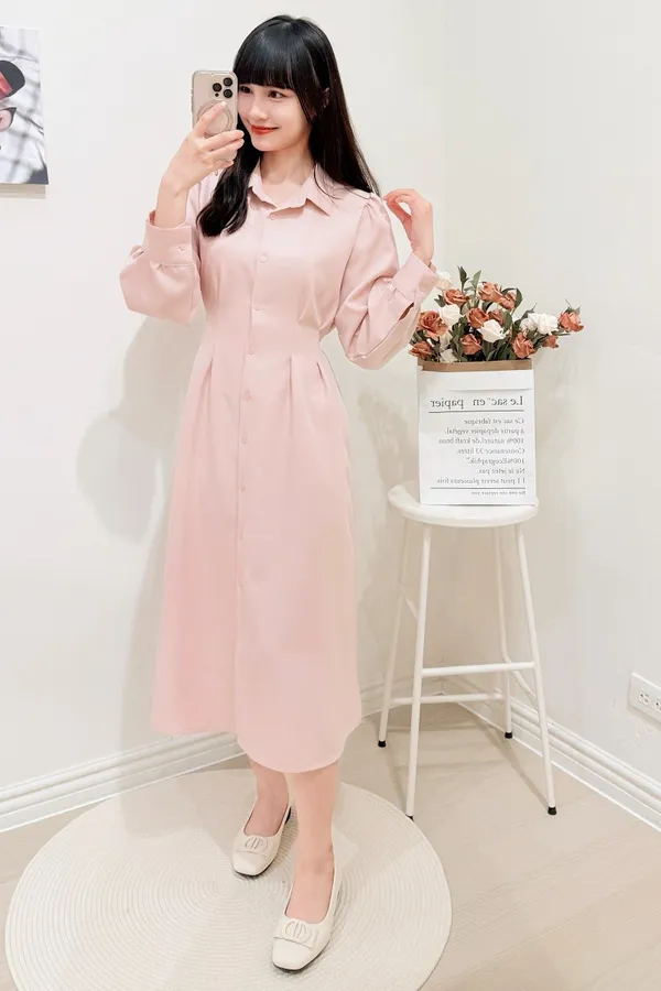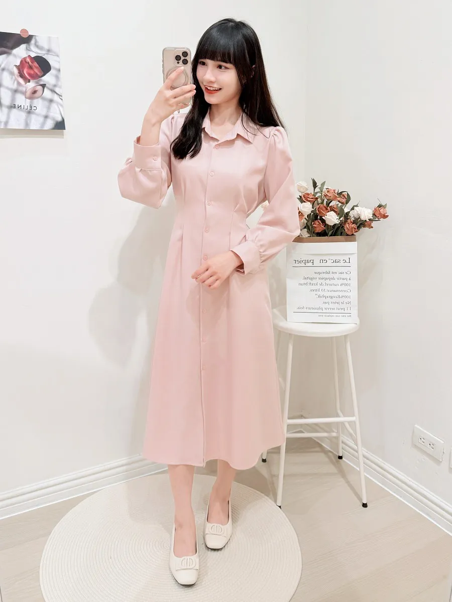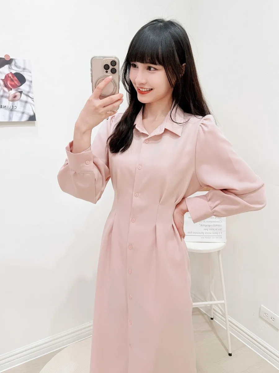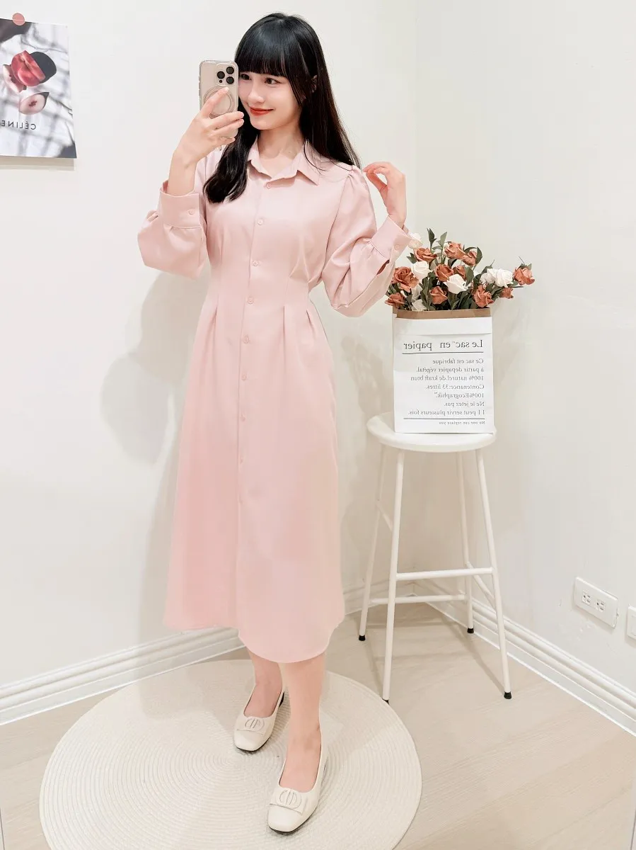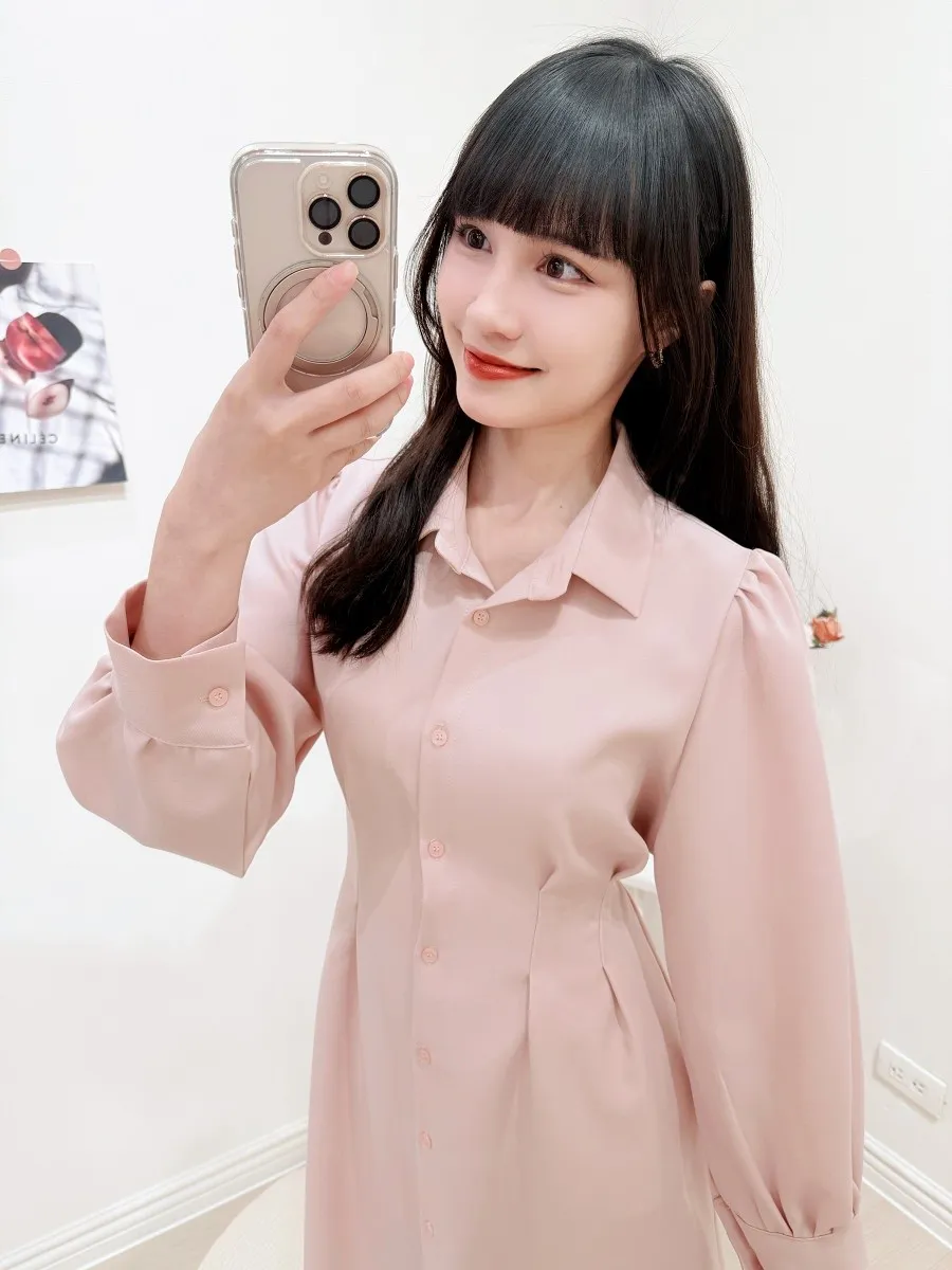 正韓 開釦後綁帶雪紡洋裝 3色