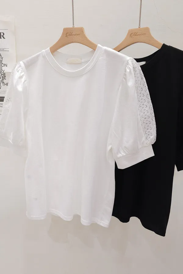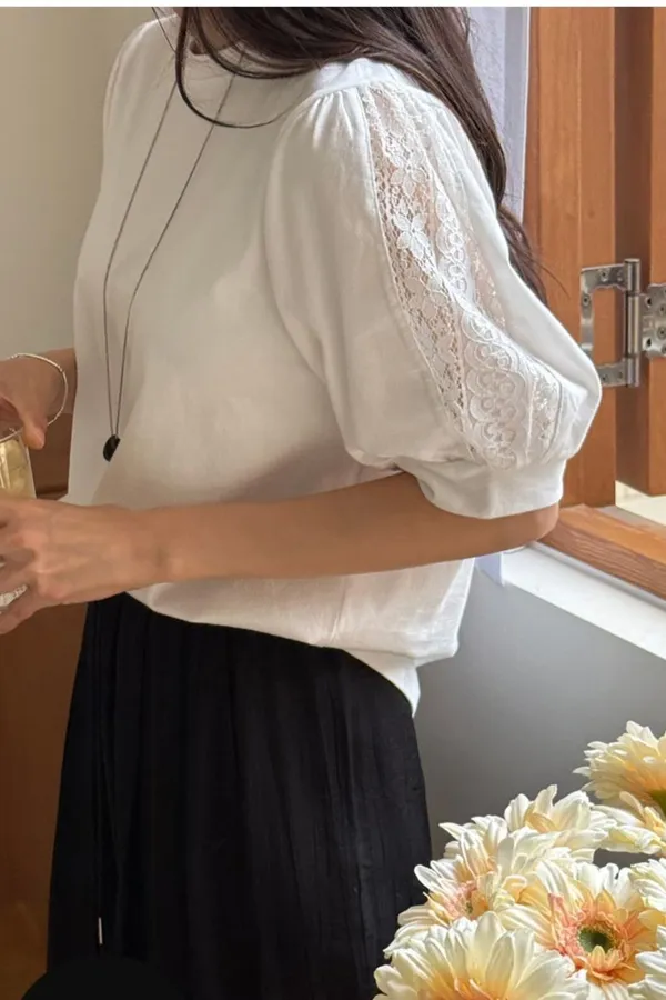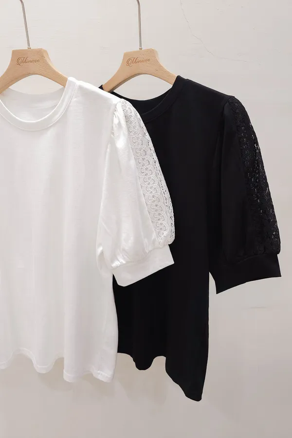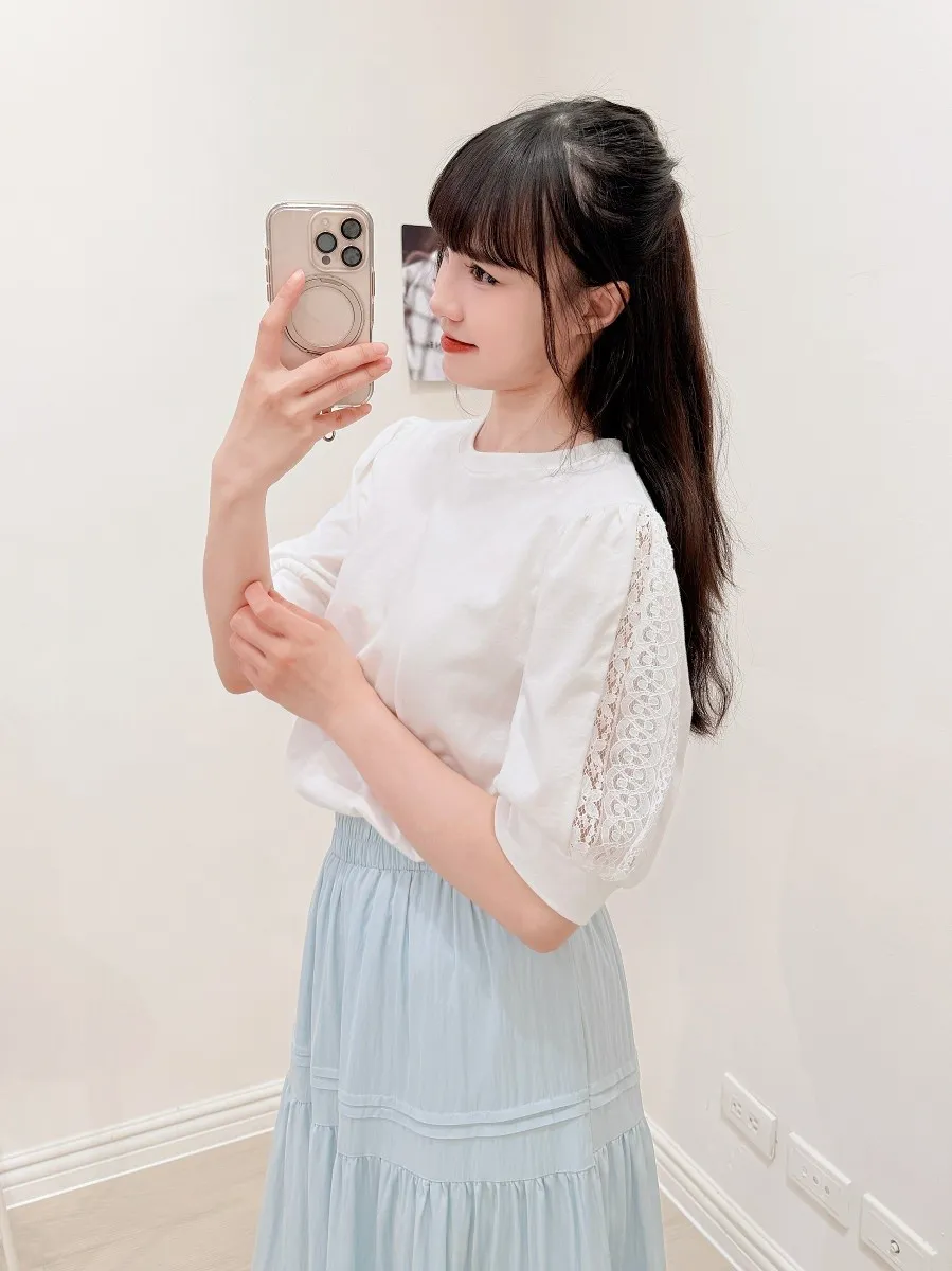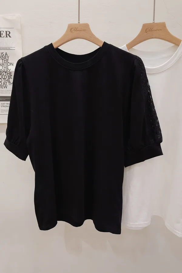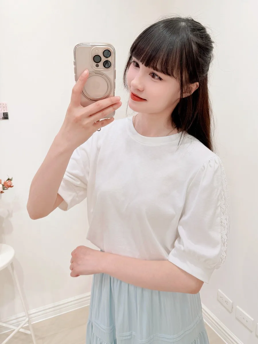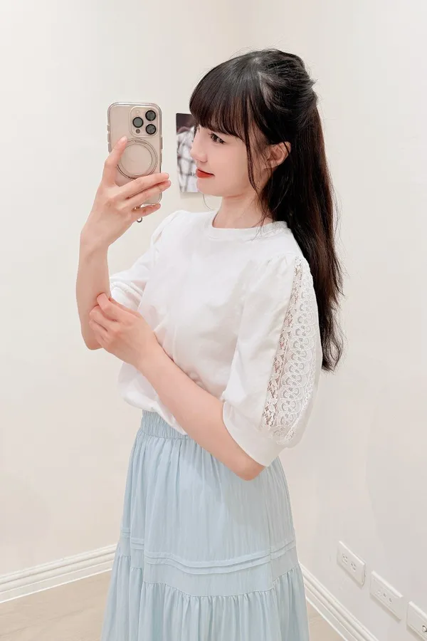 51.正韓 蕾絲透袖棉質上衣 2色