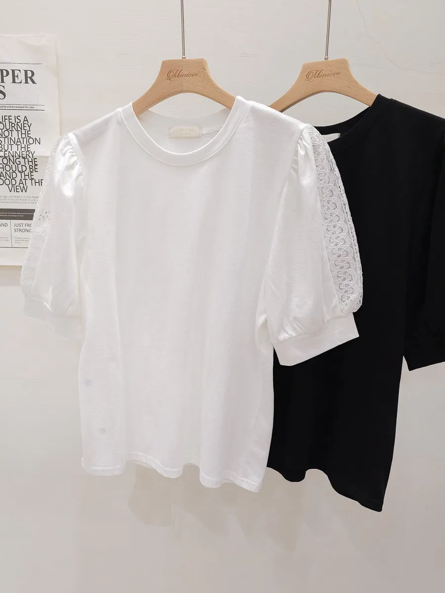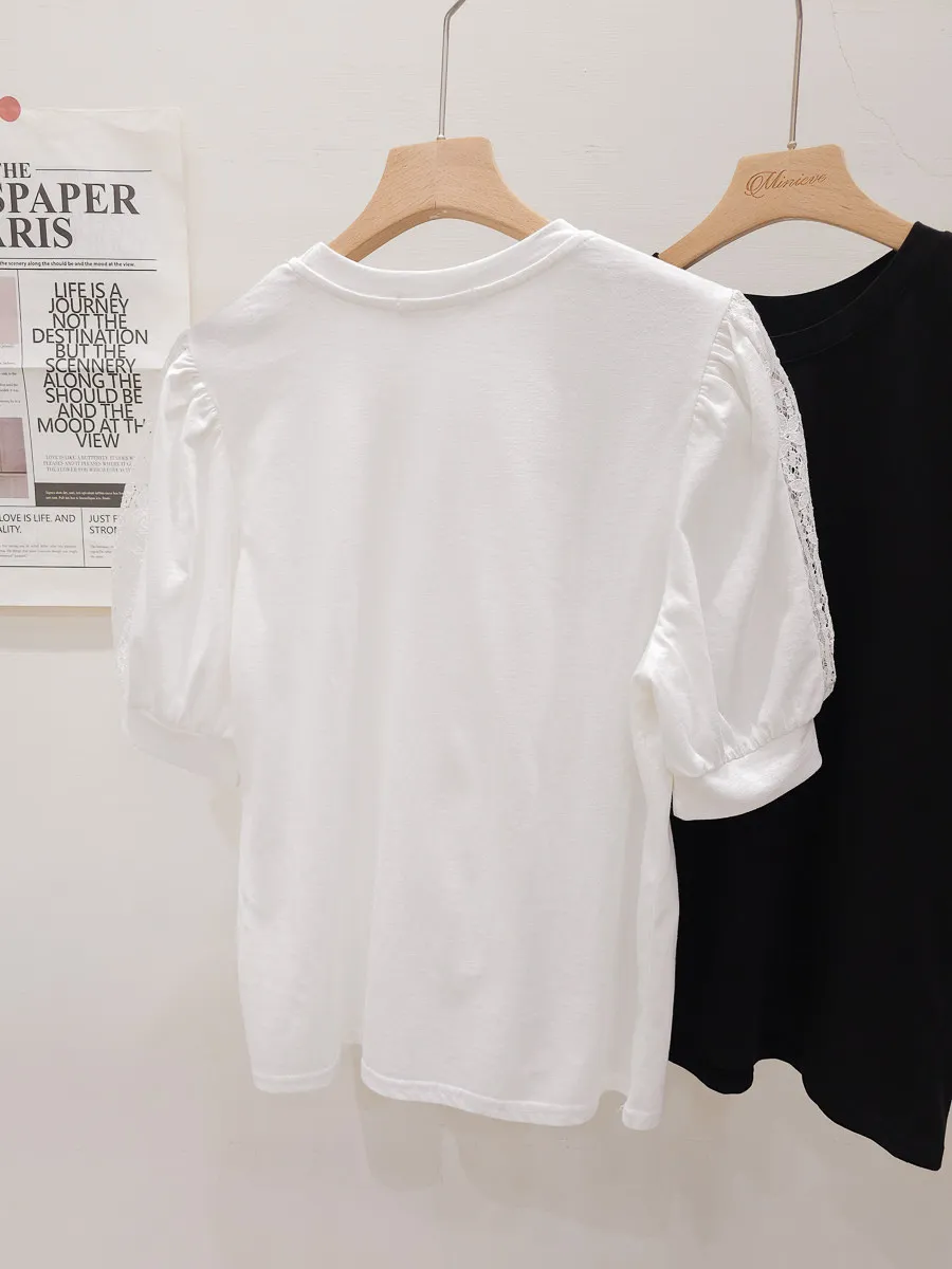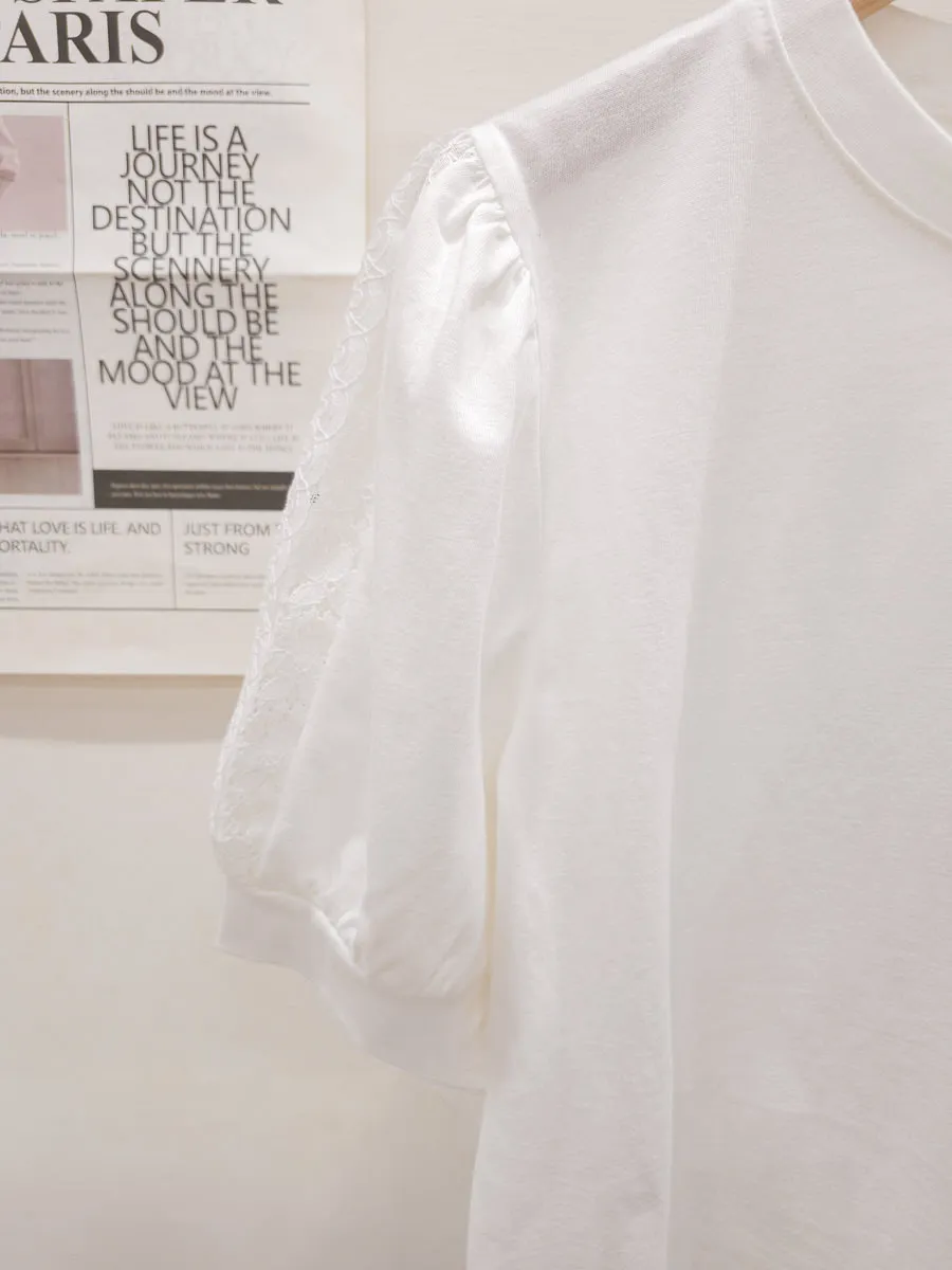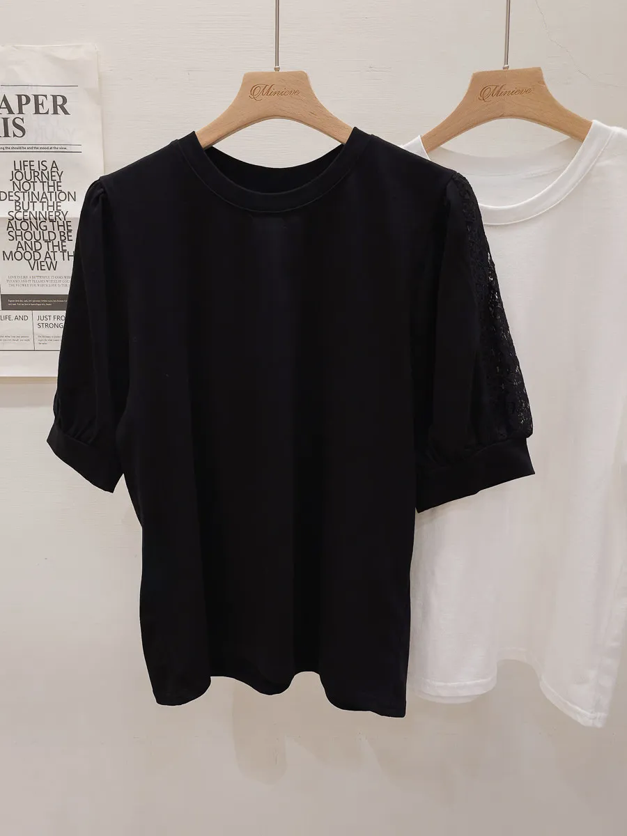 51.正韓 蕾絲透袖棉質上衣 2色