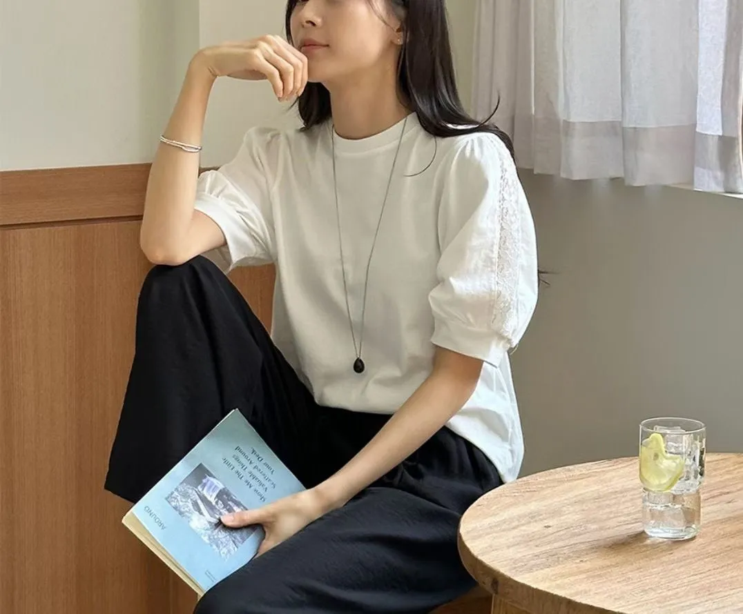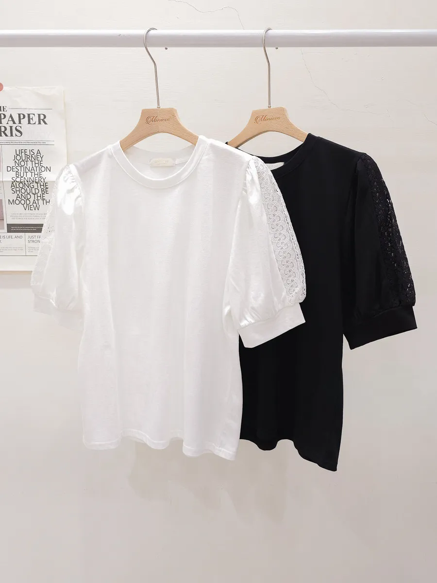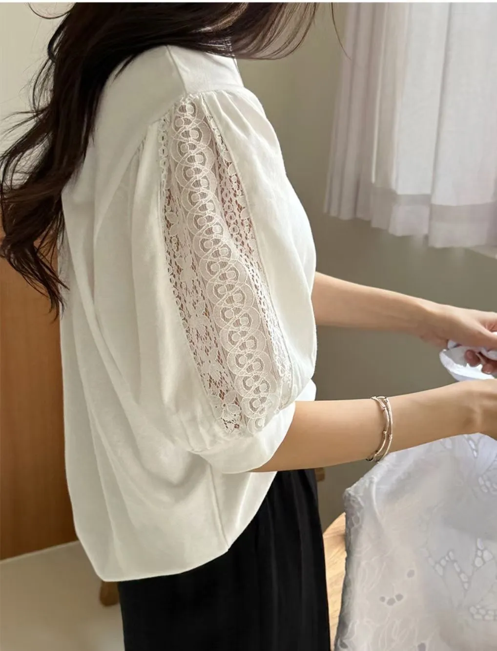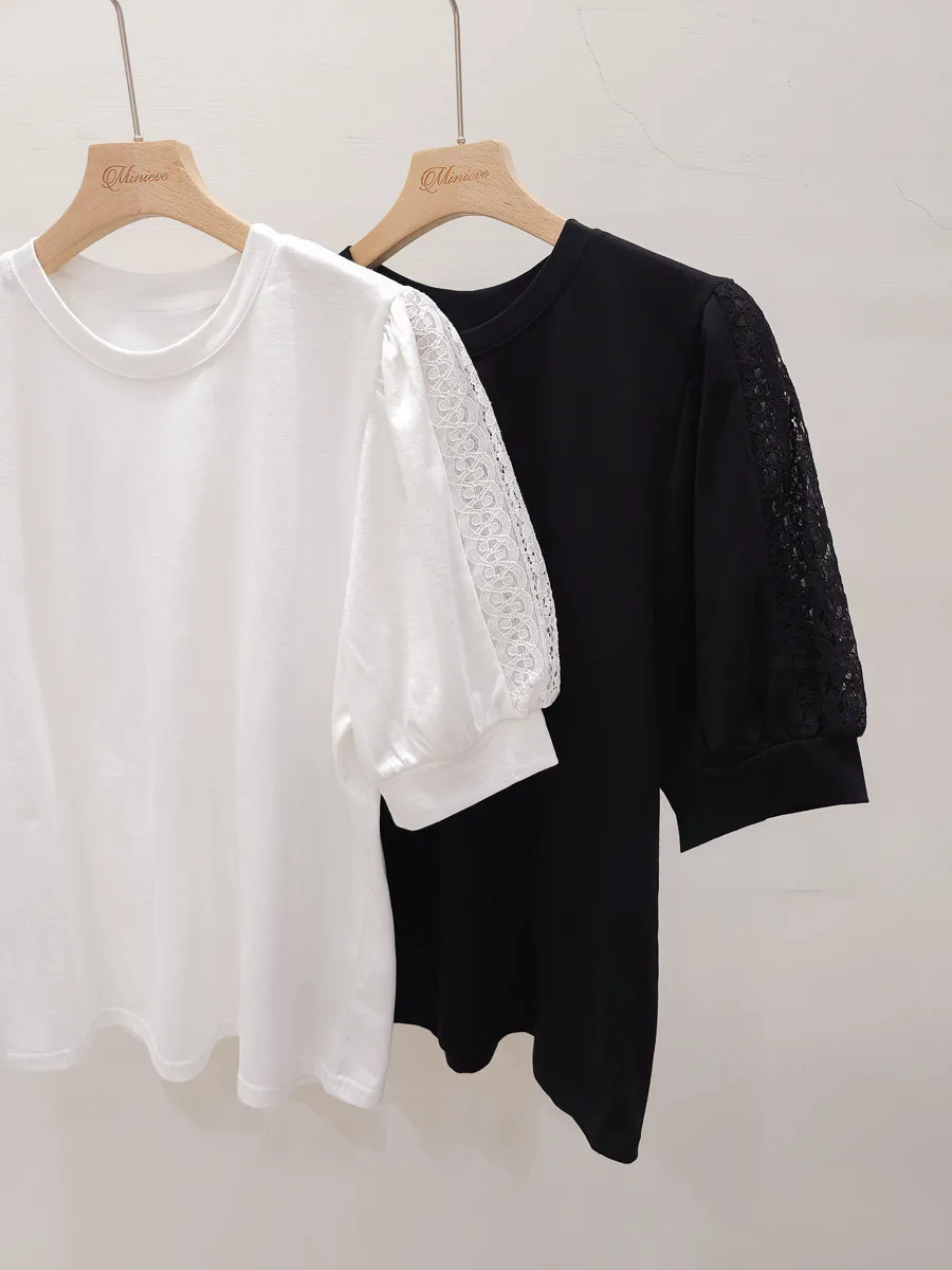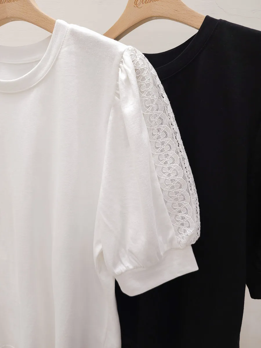 51.正韓 蕾絲透袖棉質上衣 2色