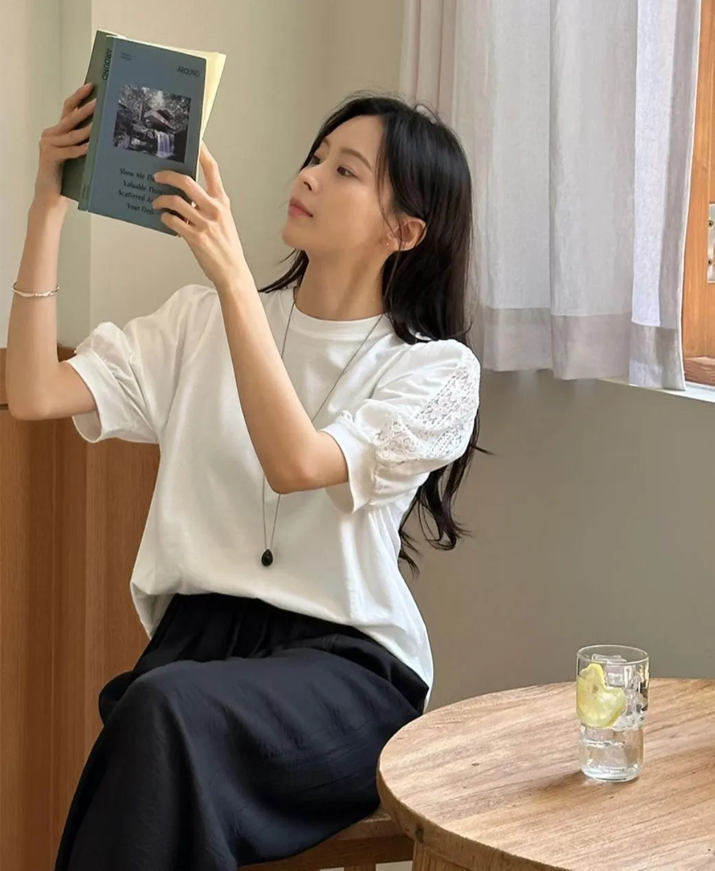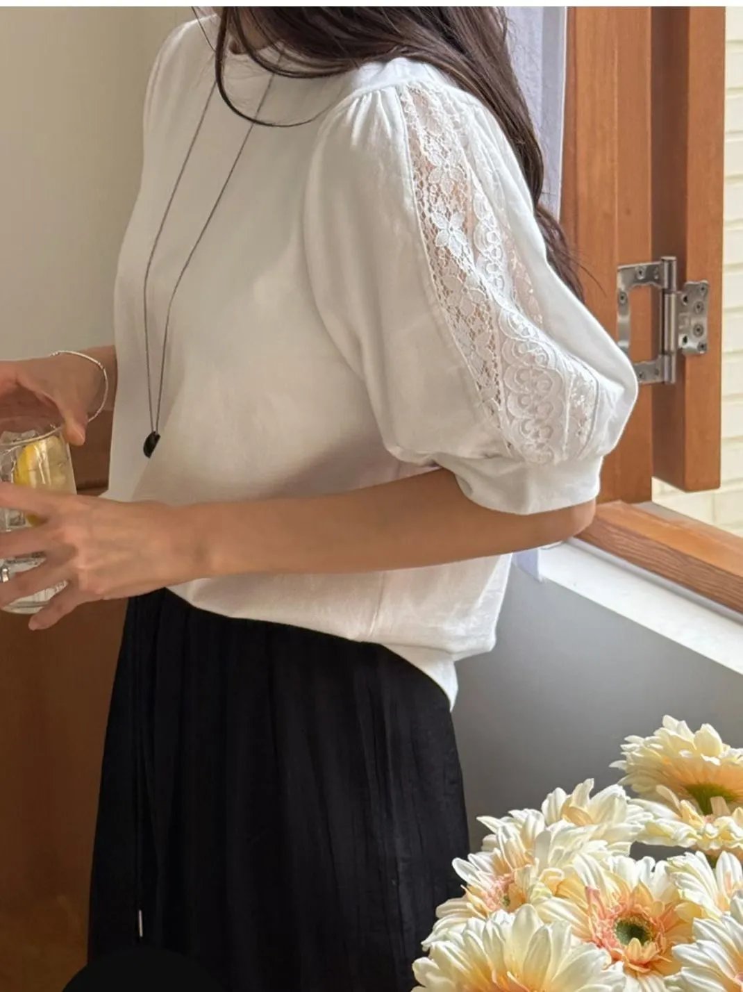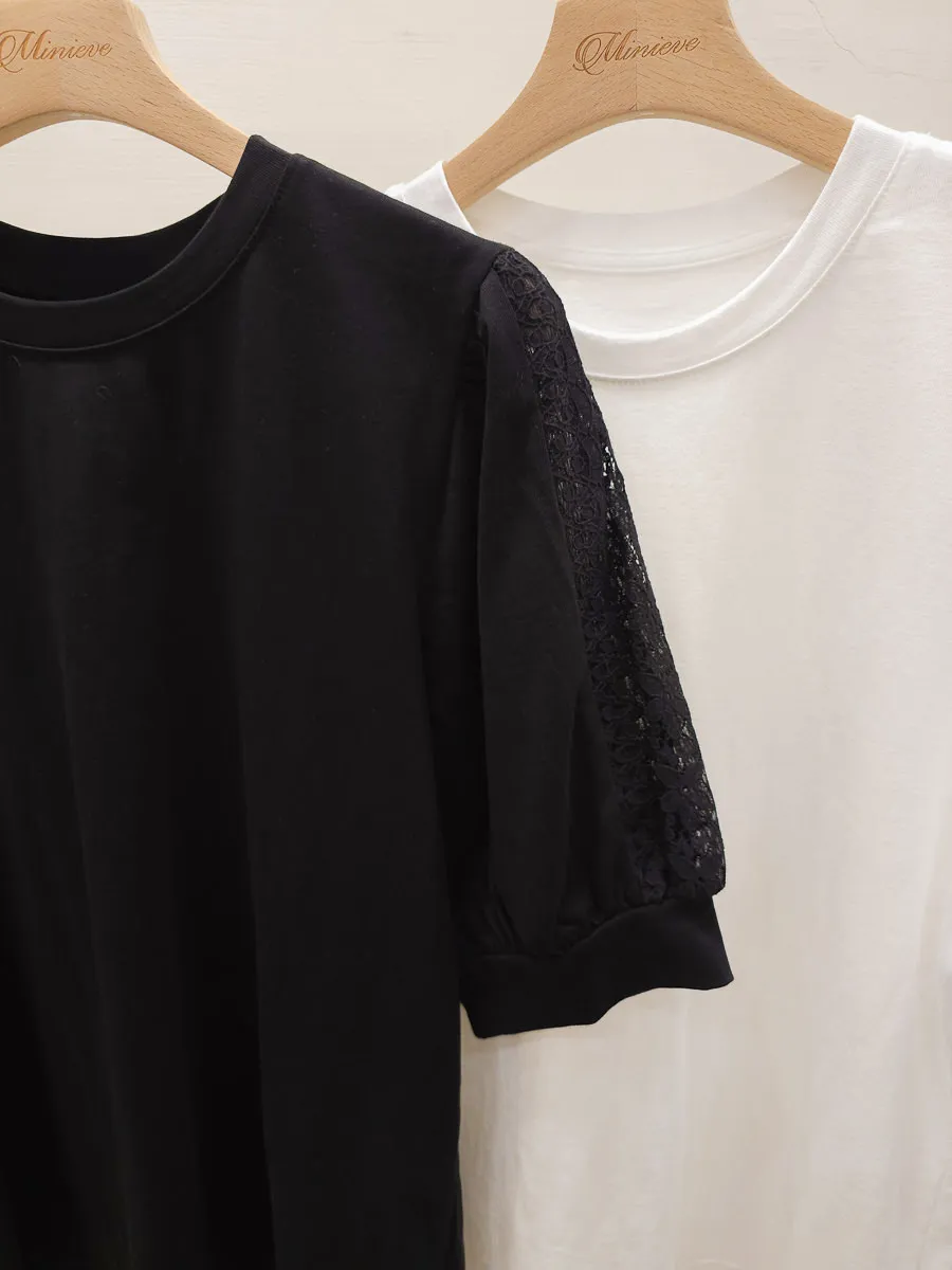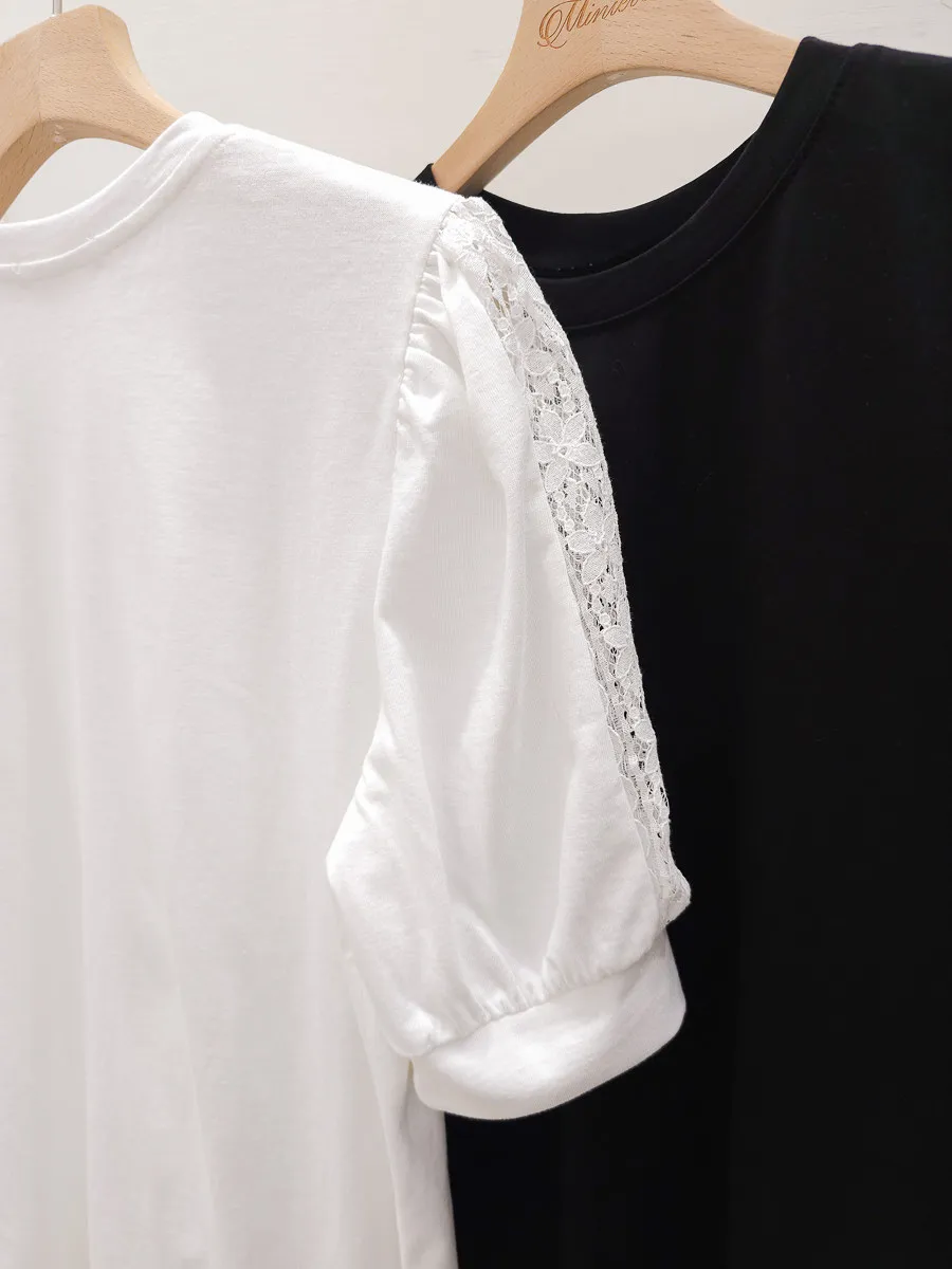 51.正韓 蕾絲透袖棉質上衣 2色