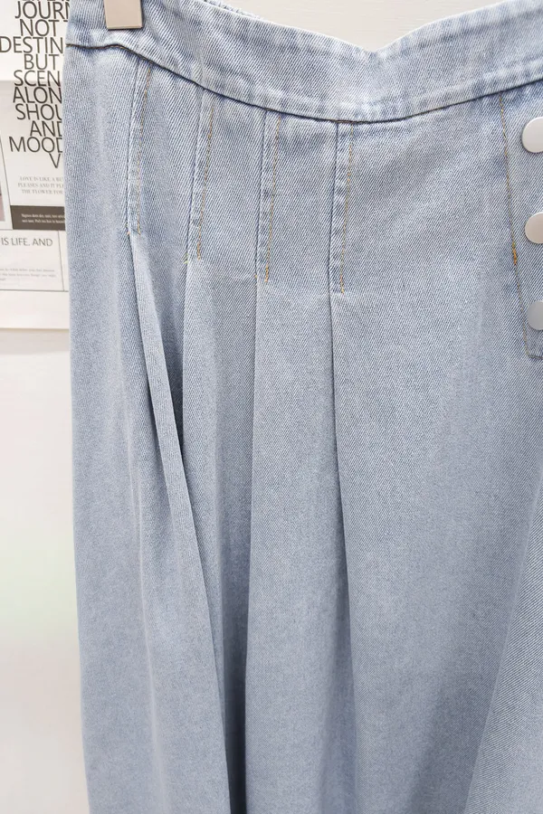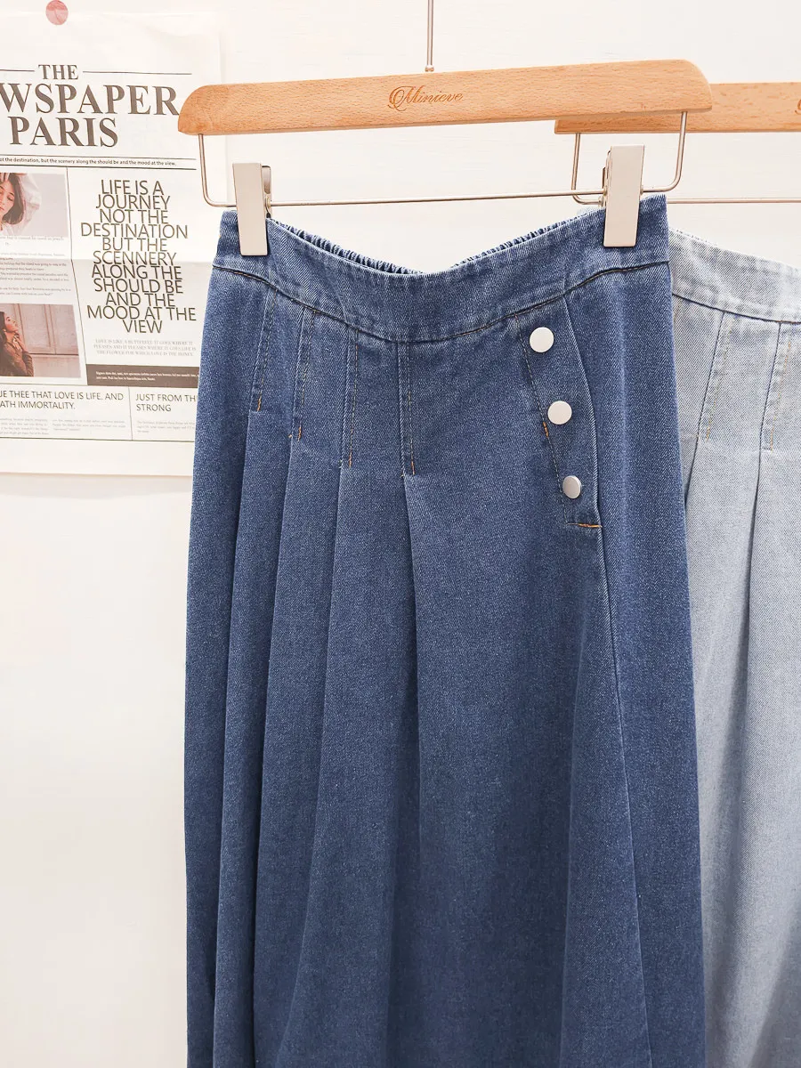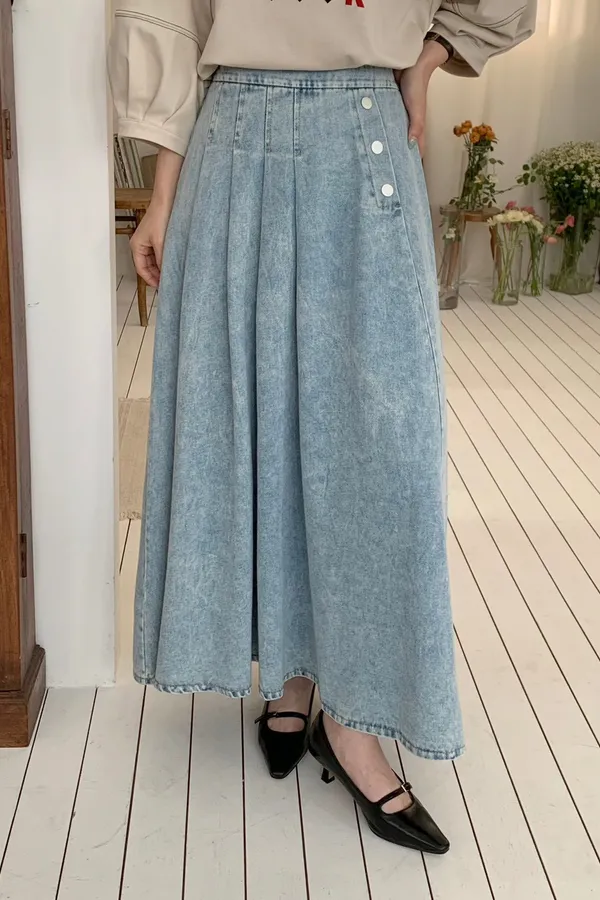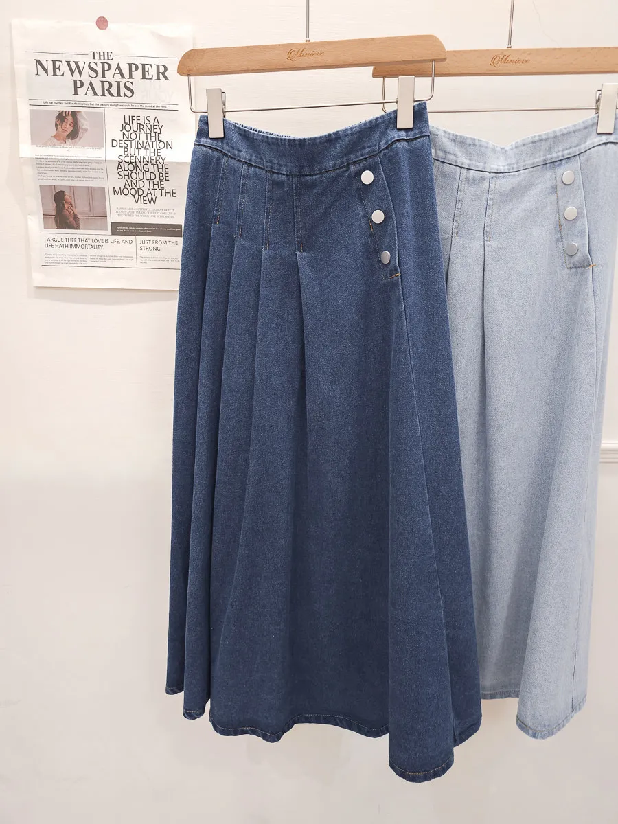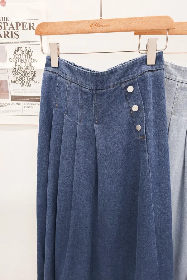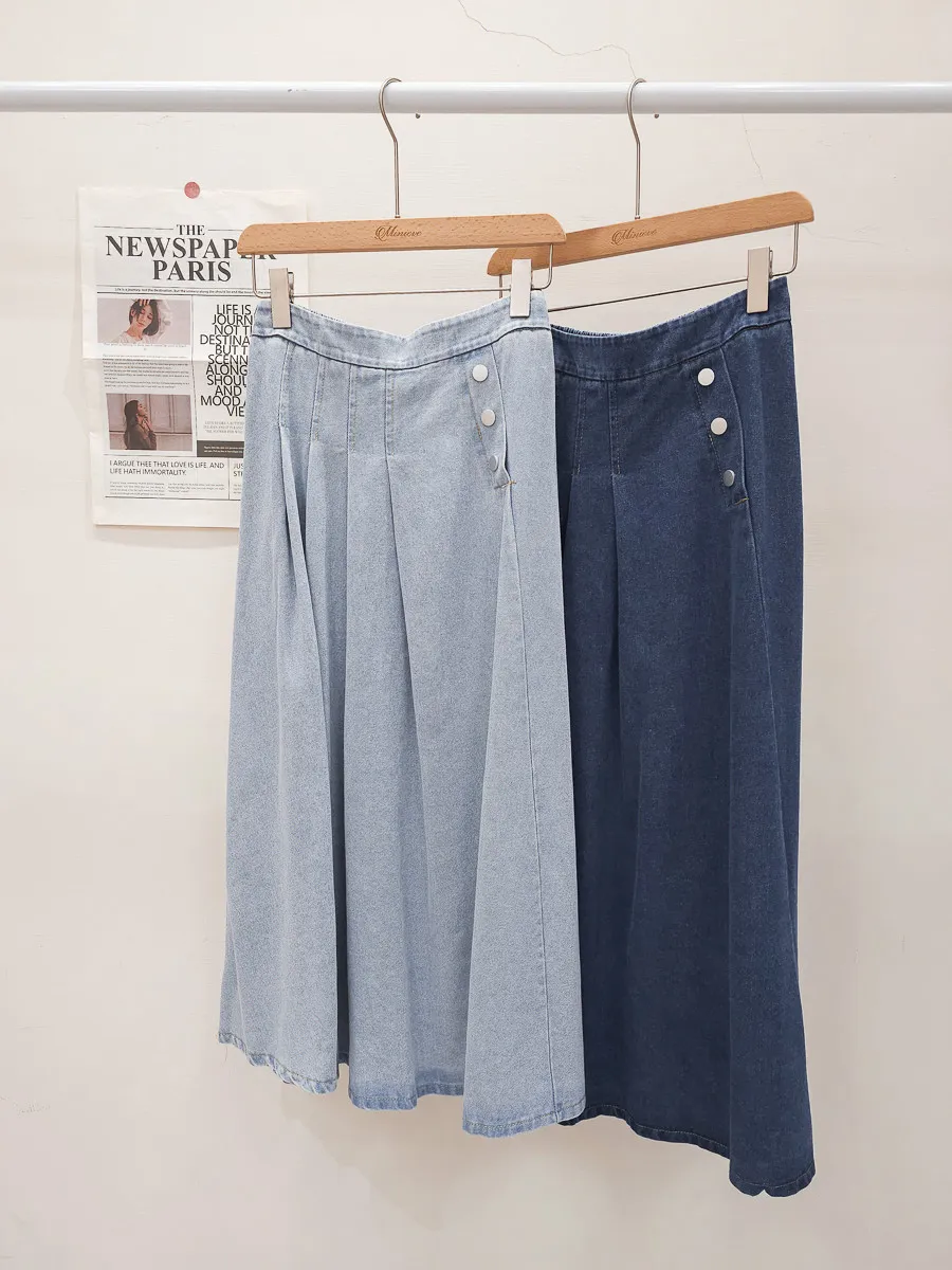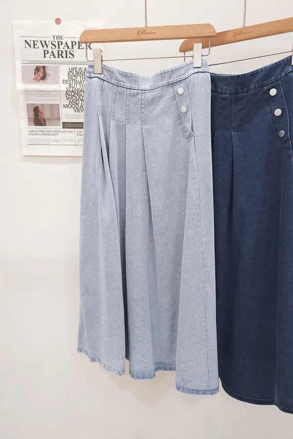 53.正韓 寬摺側釦雪花牛仔裙 2色
