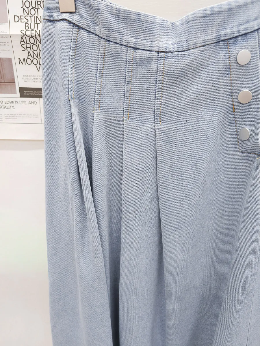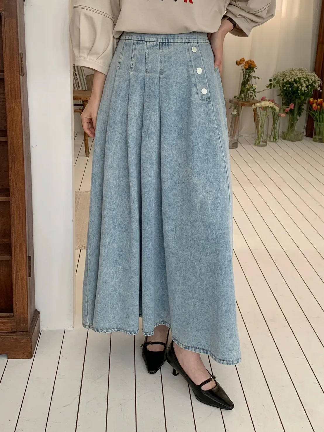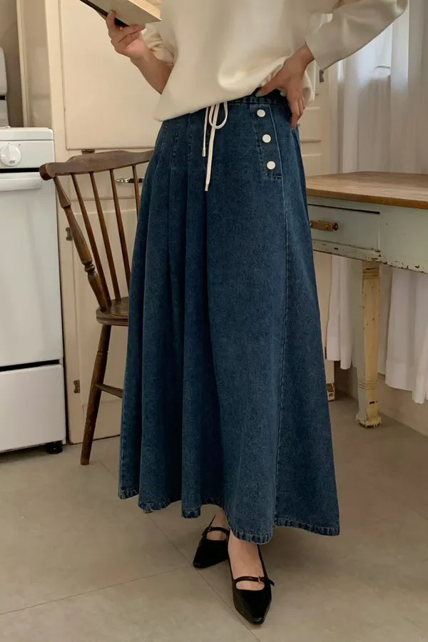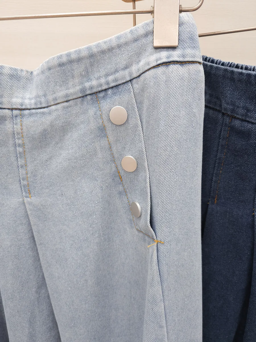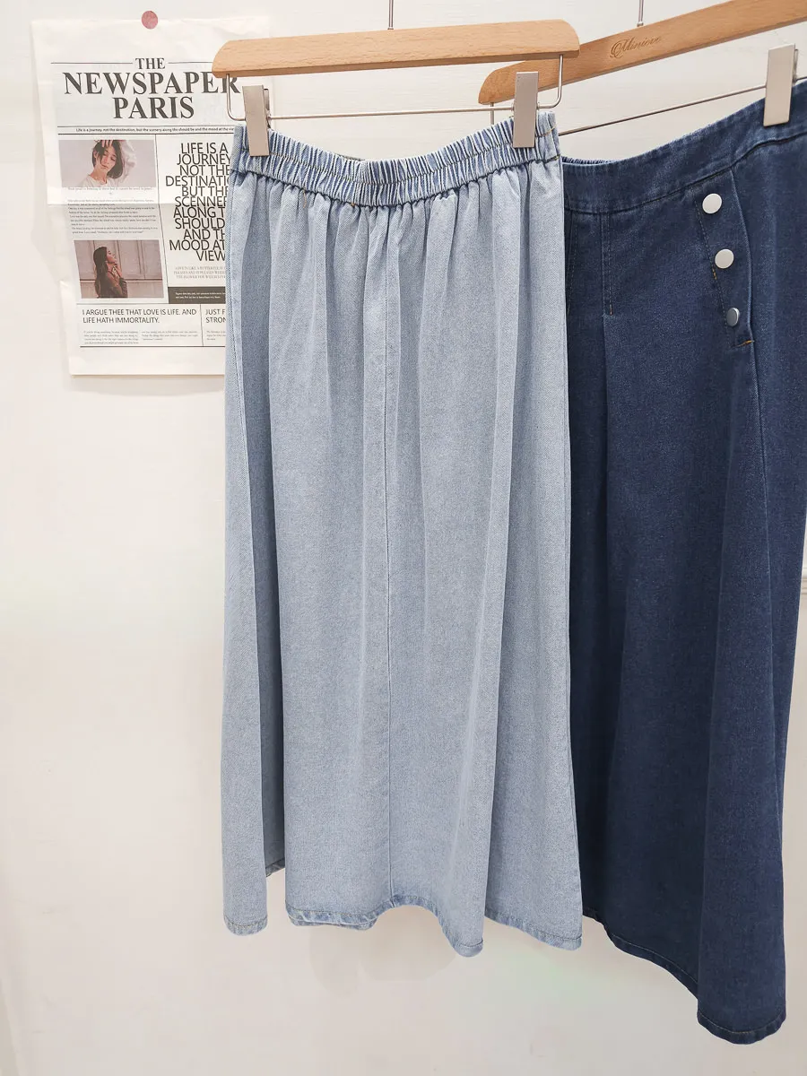 53.正韓 寬摺側釦雪花牛仔裙 2色