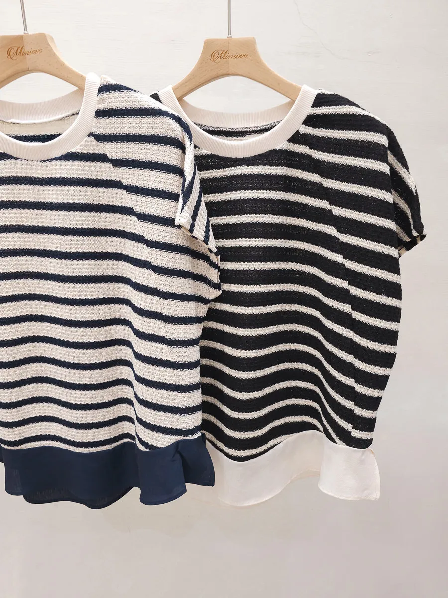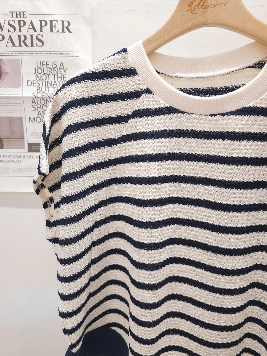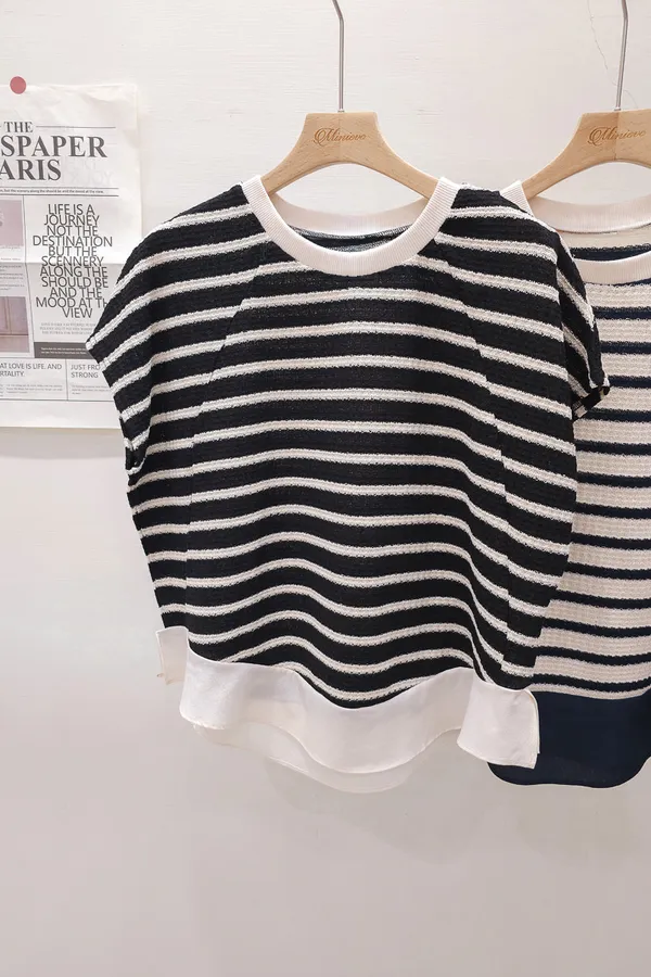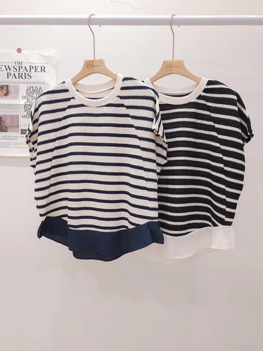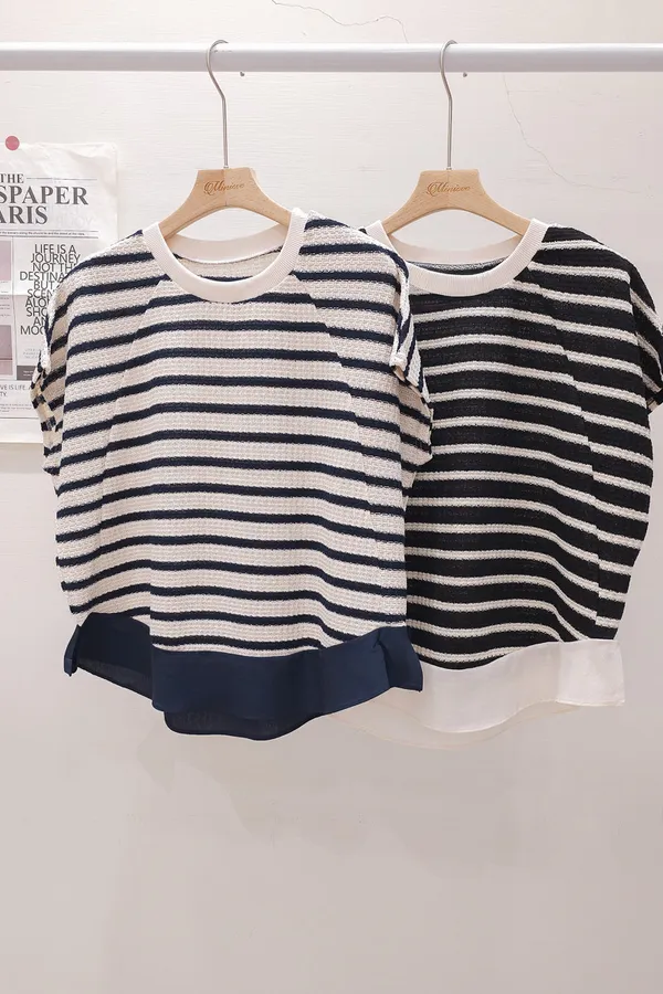 64.正韓 條紋拼接下擺棉麻上衣 2色