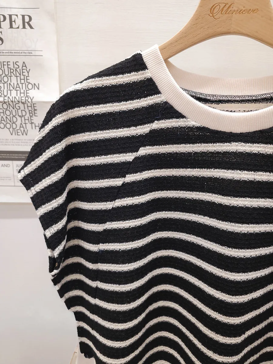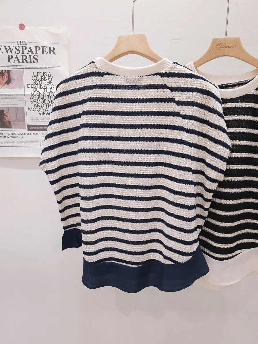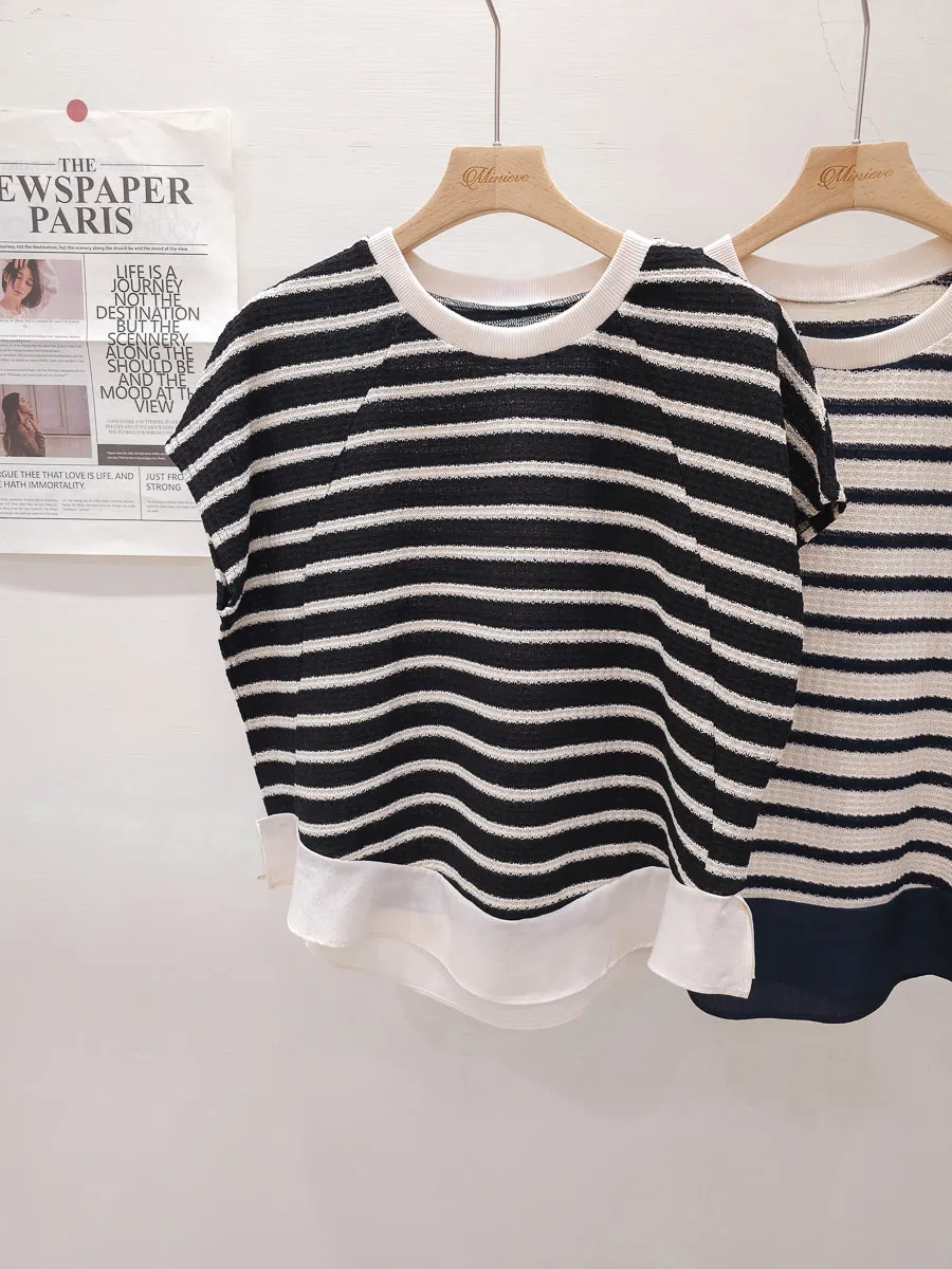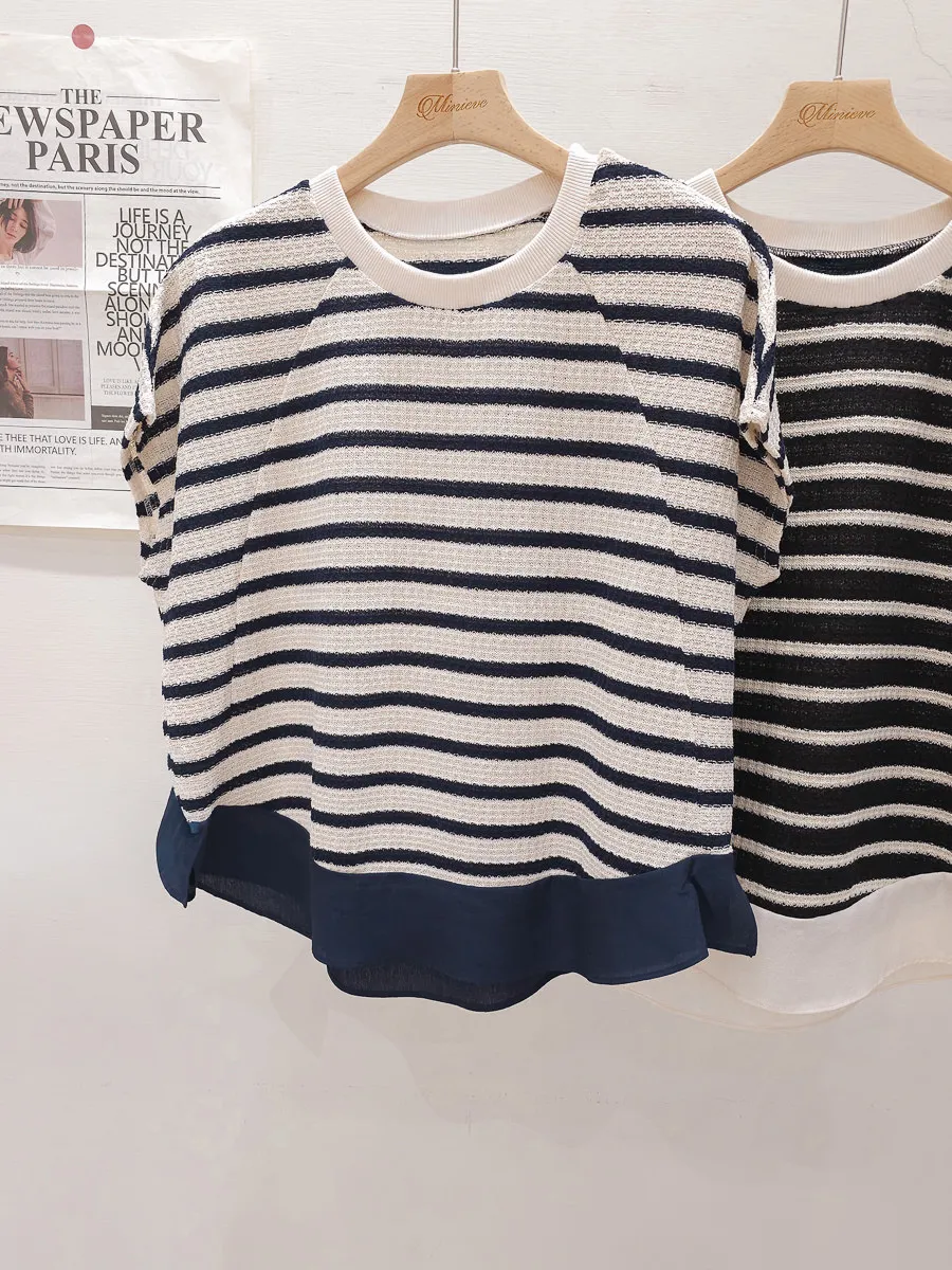 64.正韓 條紋拼接下擺棉麻上衣 2色
