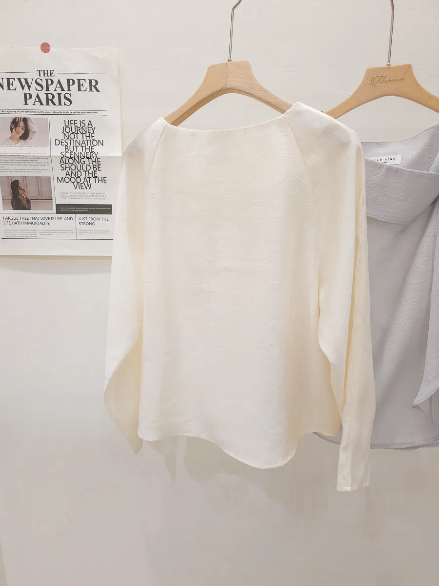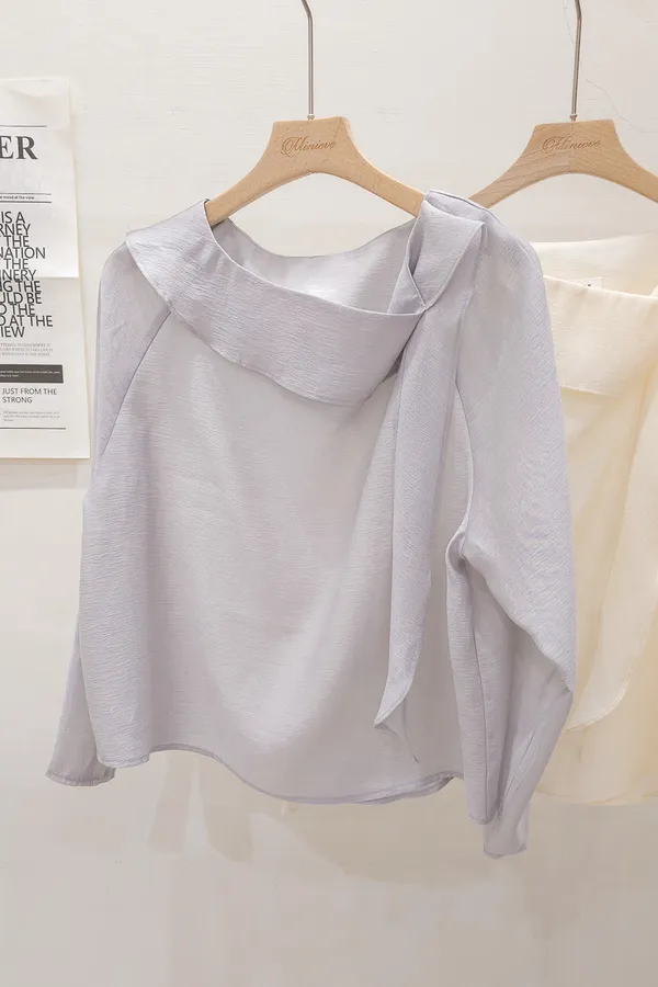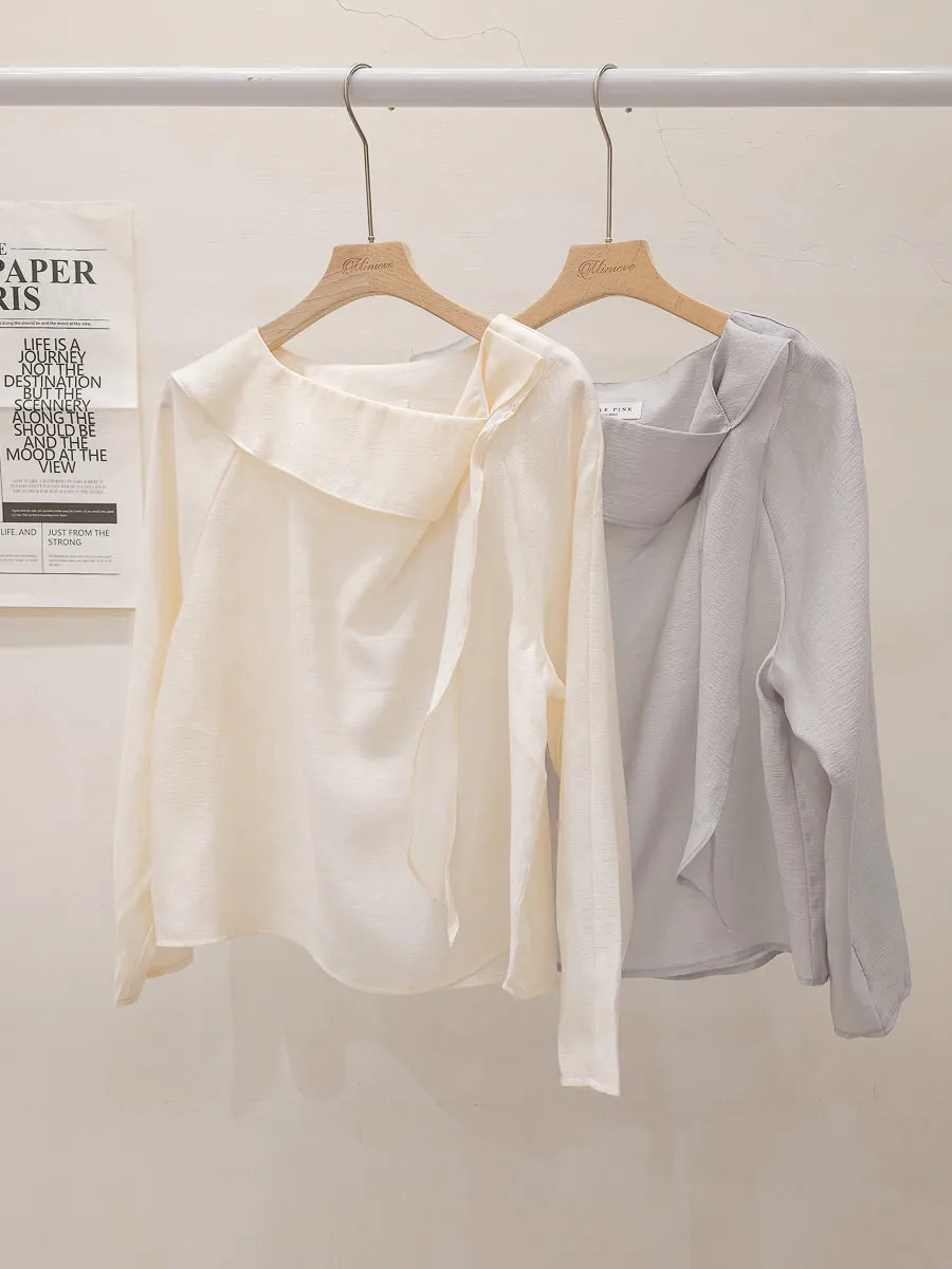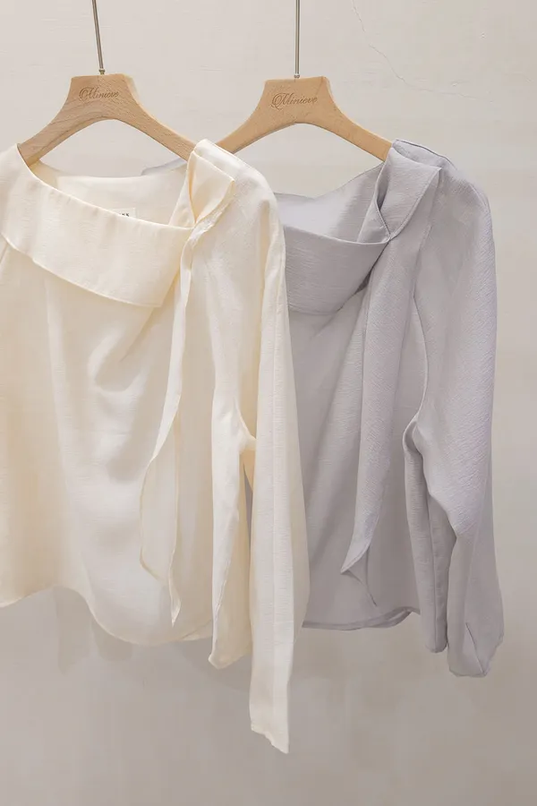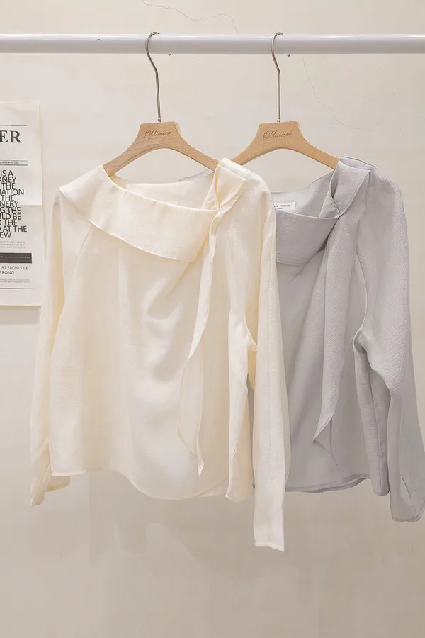 67.正韓 氣質側折領飄帶上衣 2色