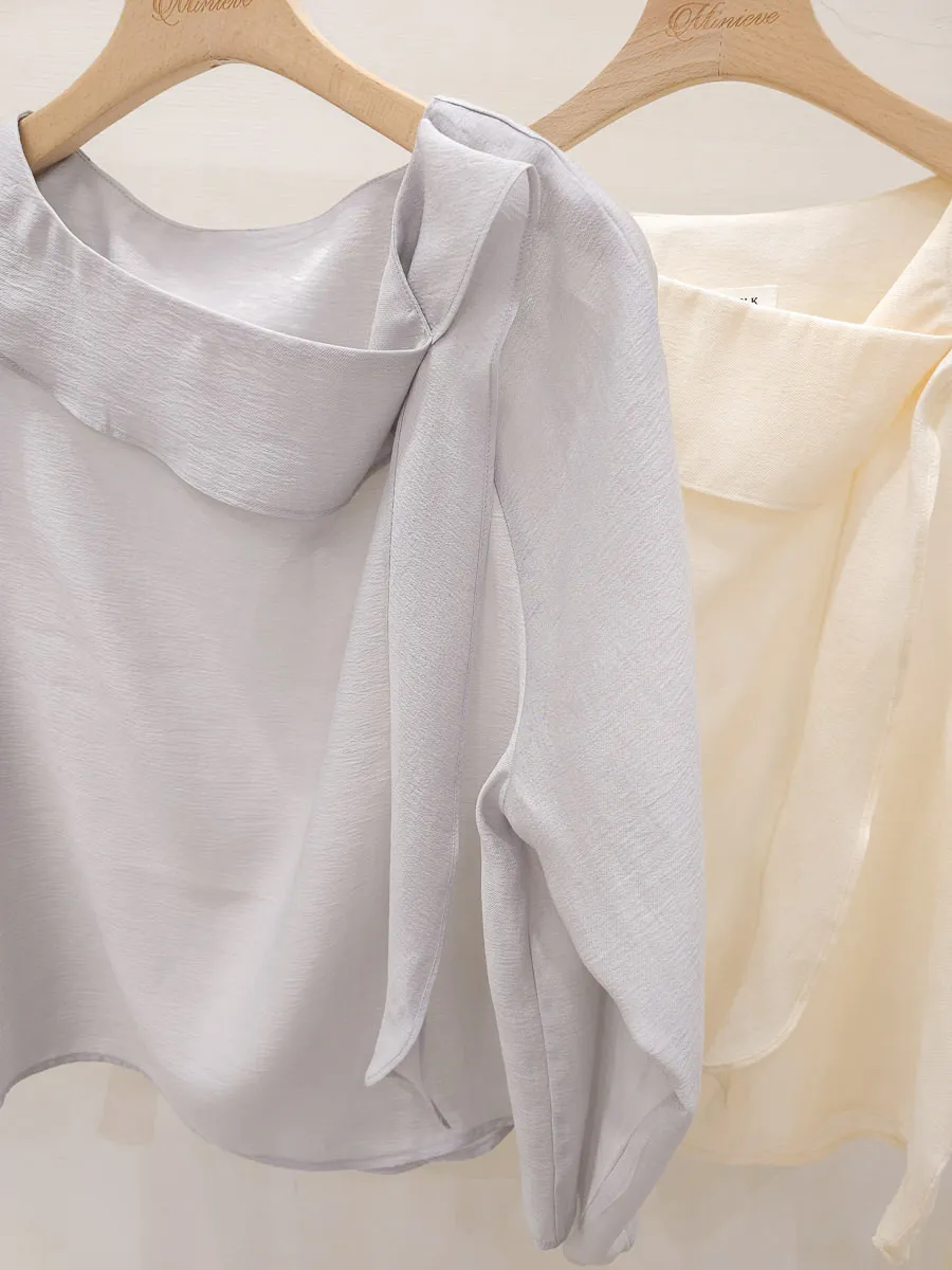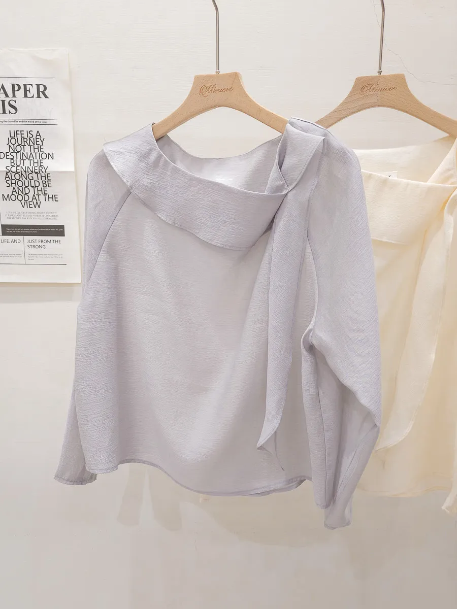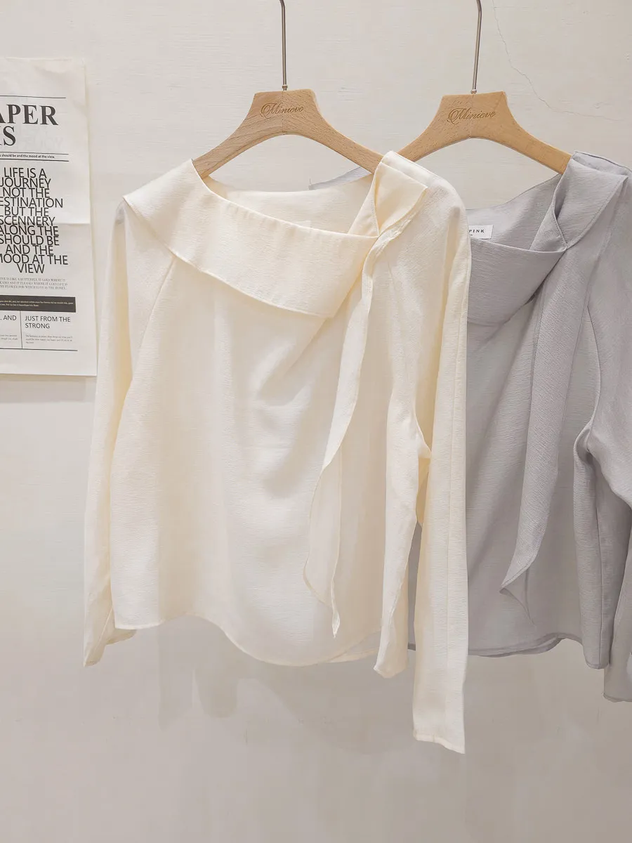 67.正韓 氣質側折領飄帶上衣 2色