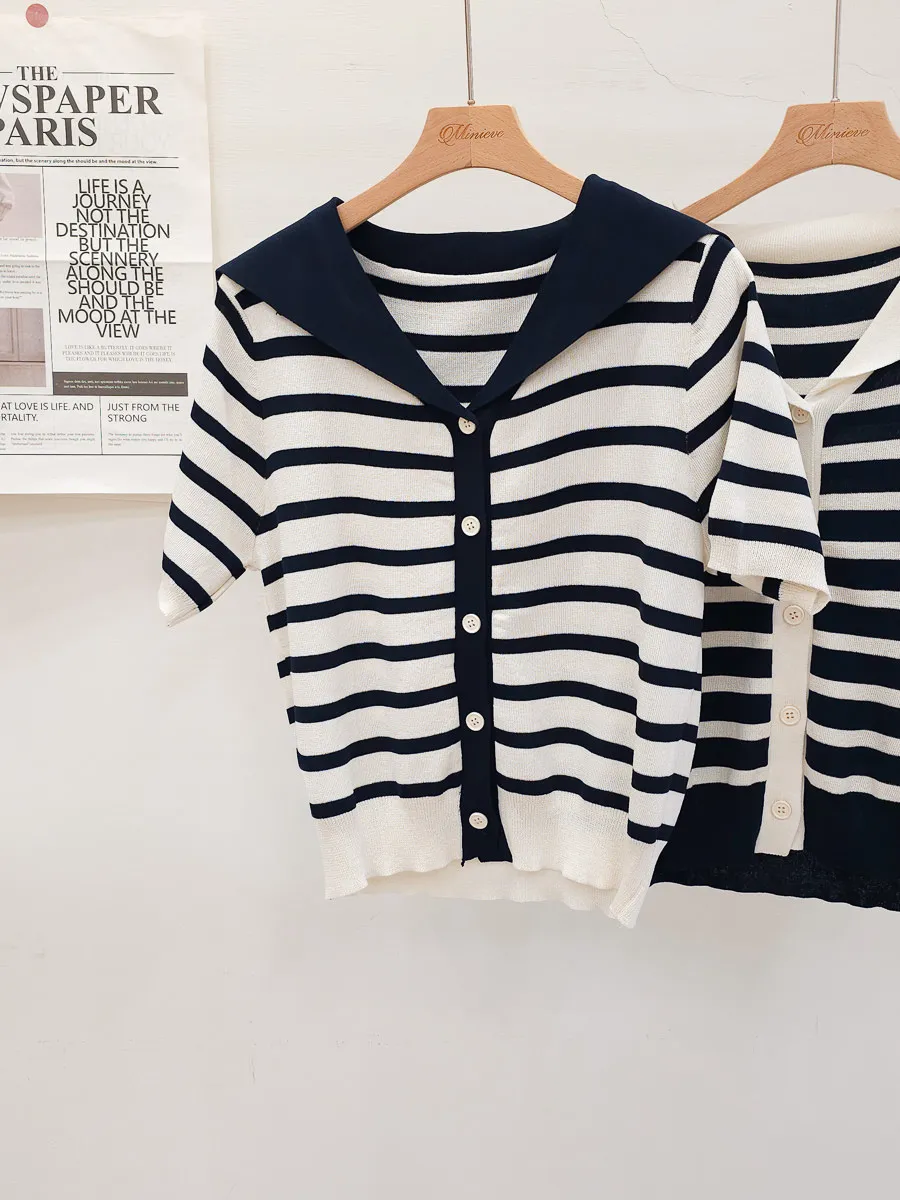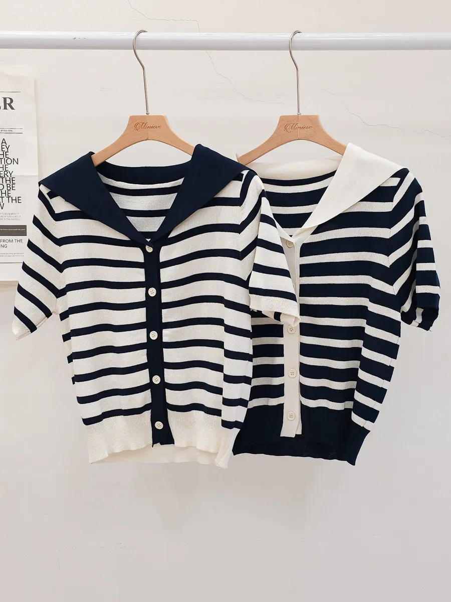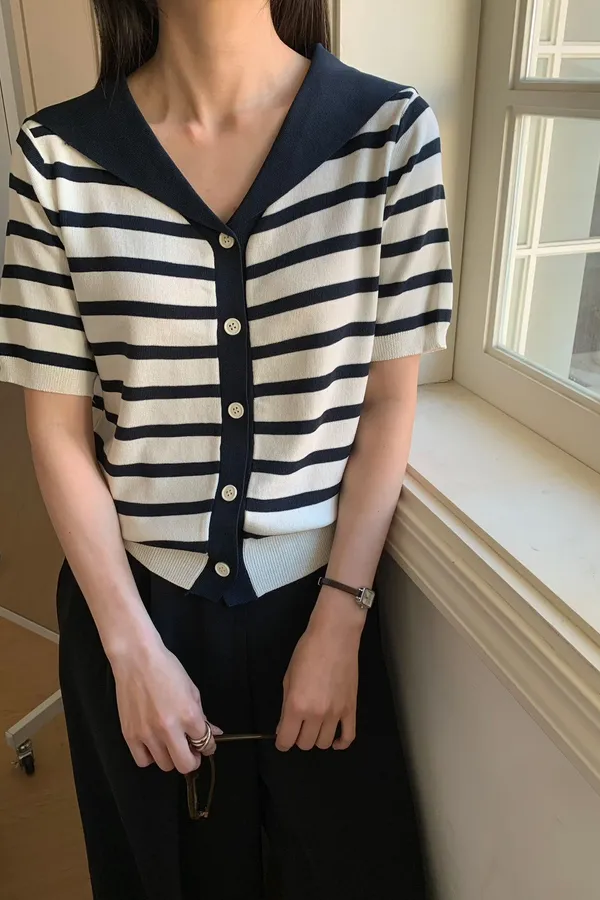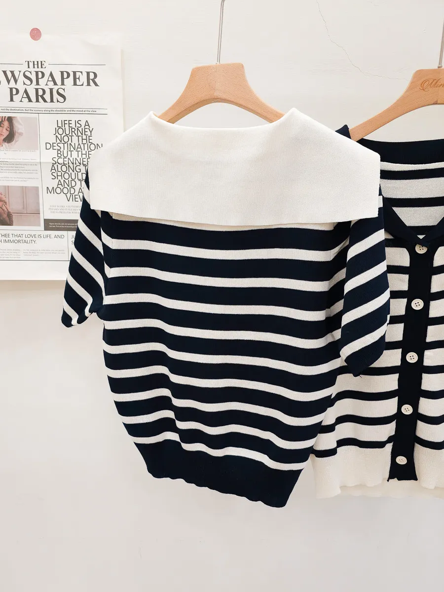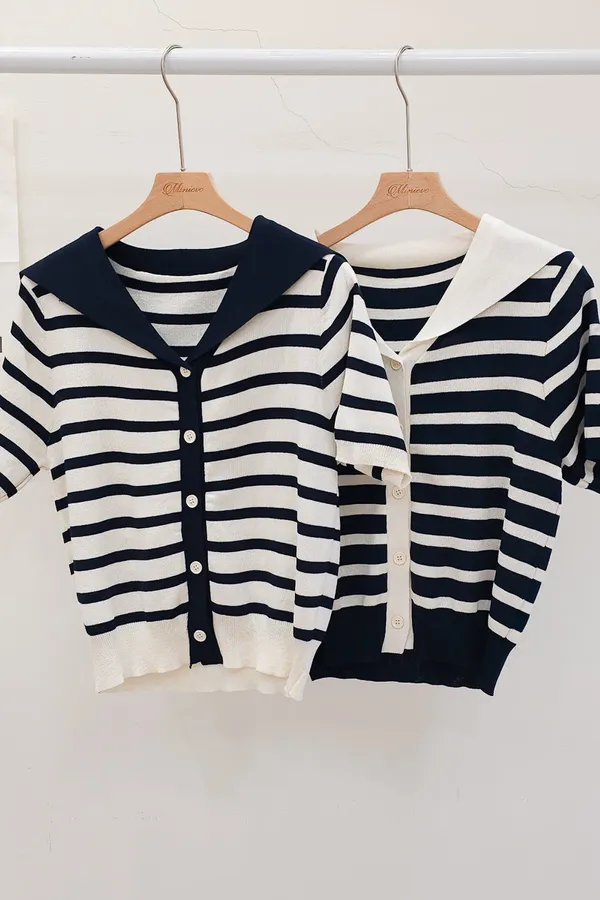 左:米白(配深藍領) / 右:深藍(配米白領)