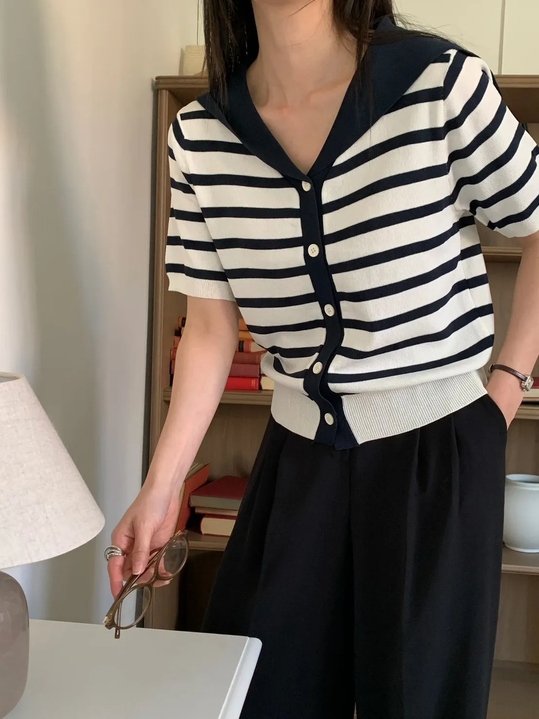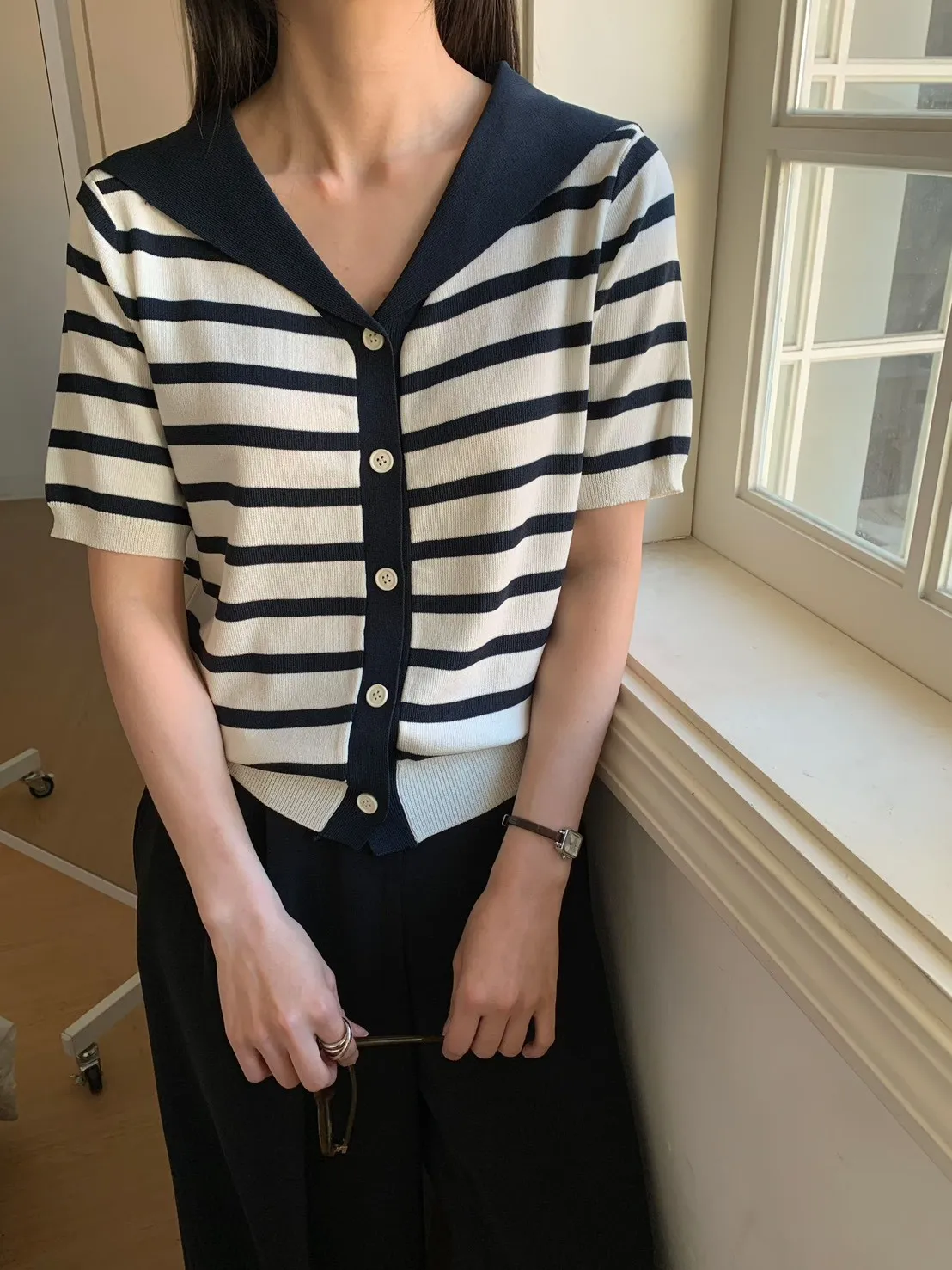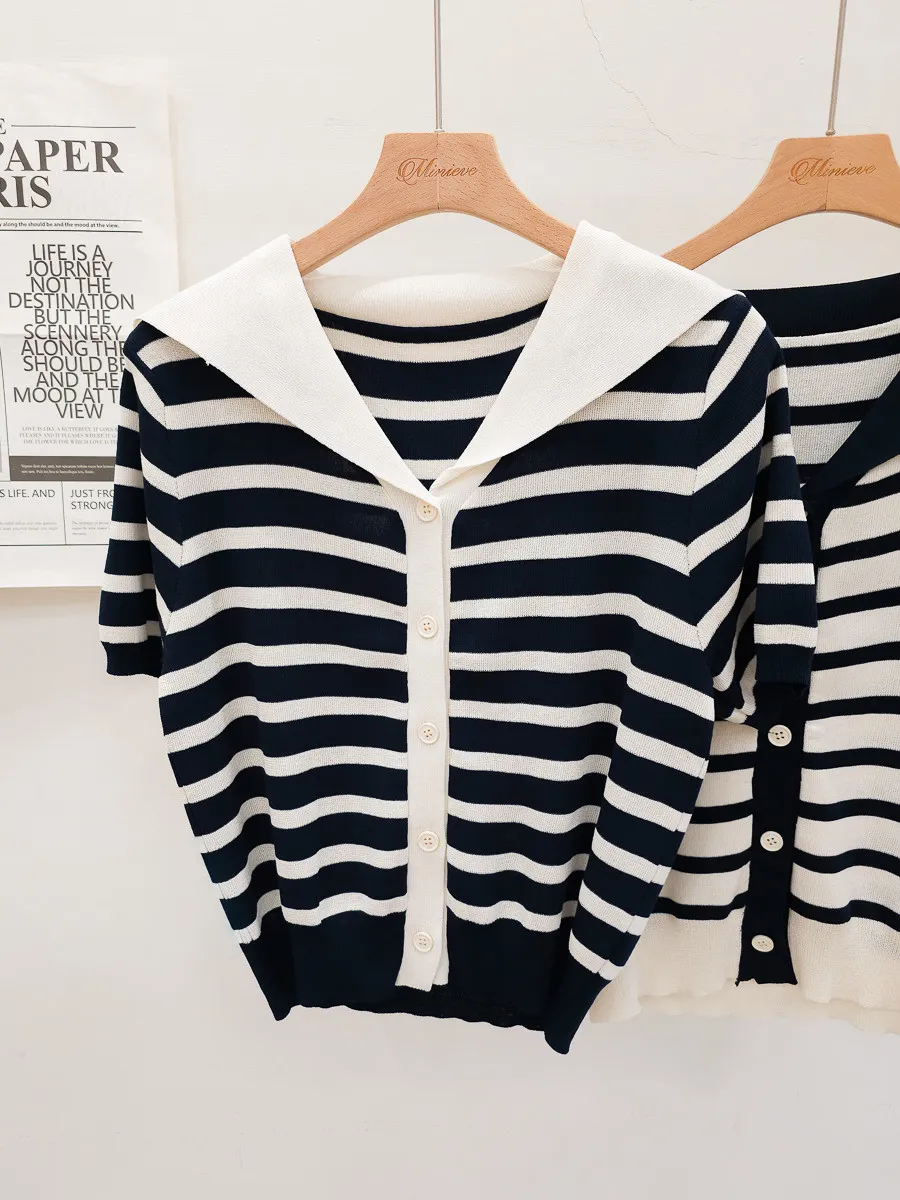 左:米白(配深藍領) / 右:深藍(配米白領)