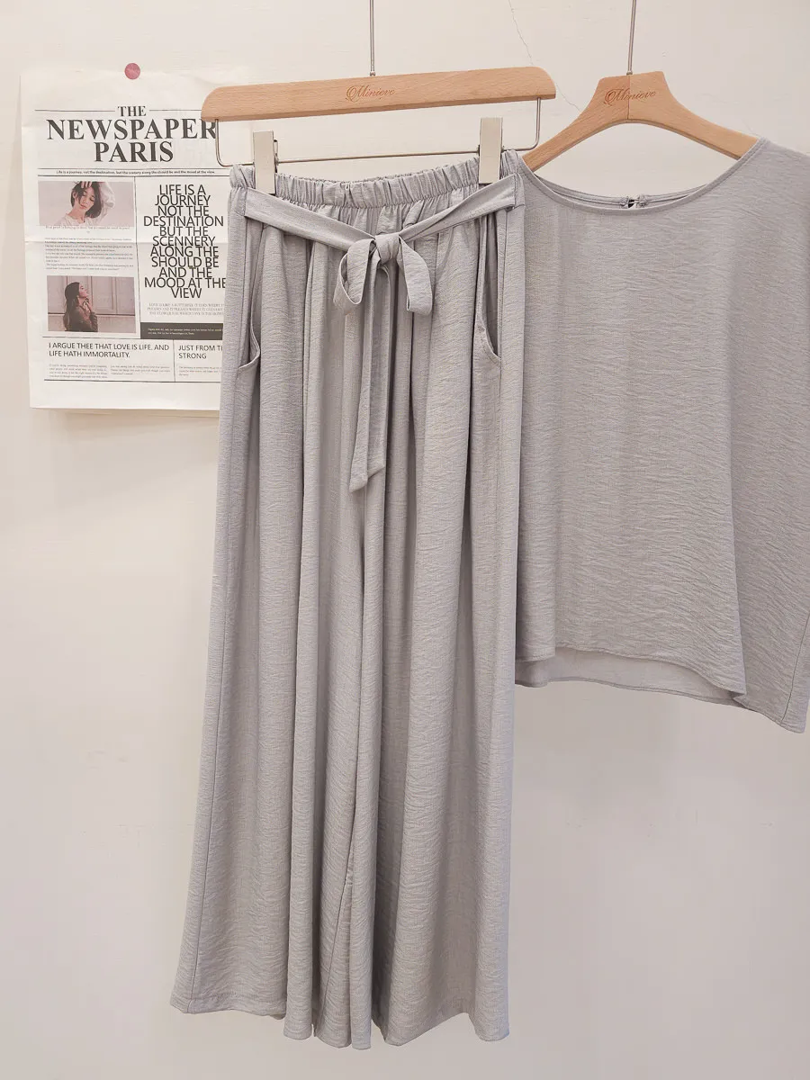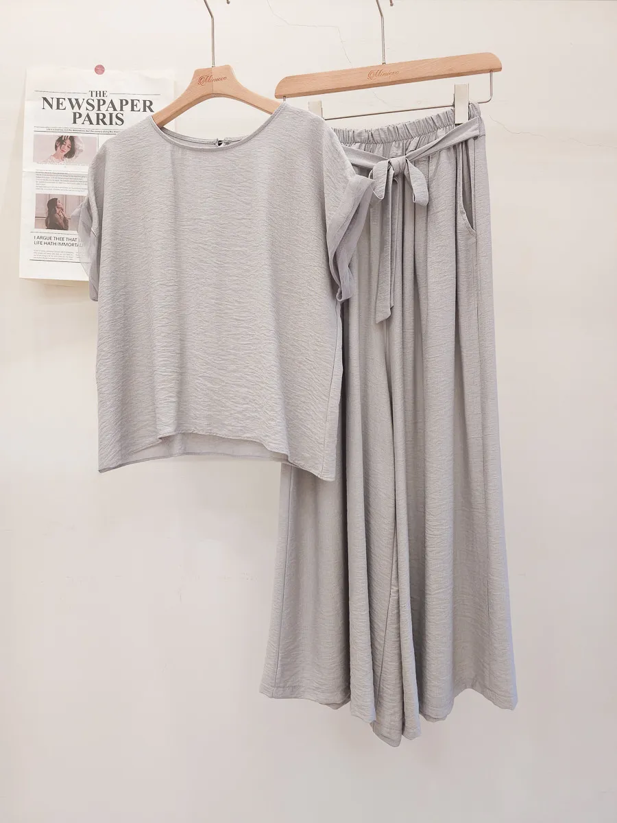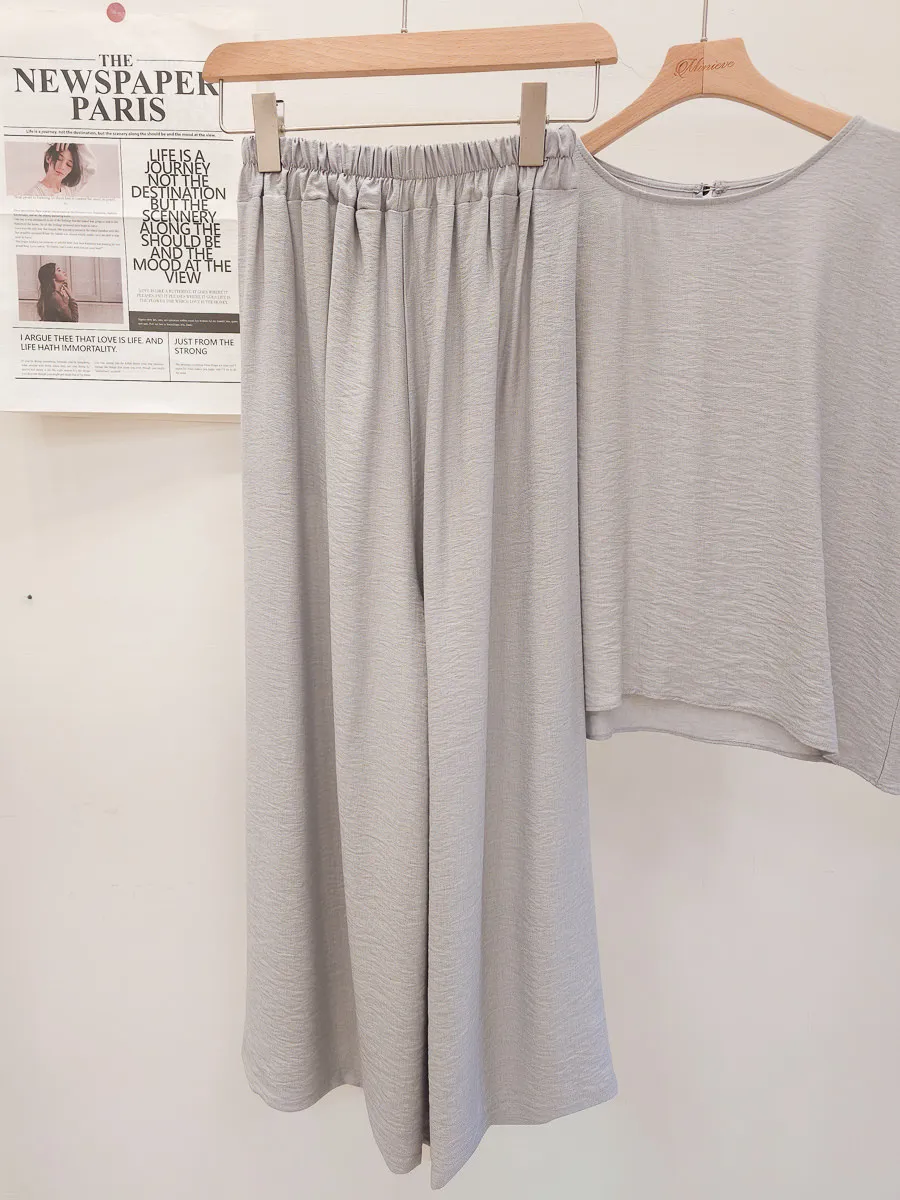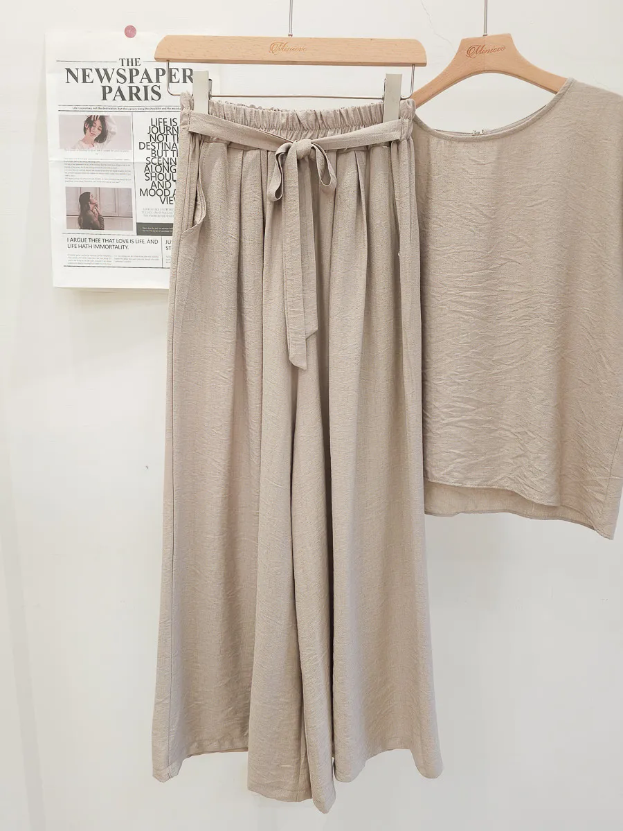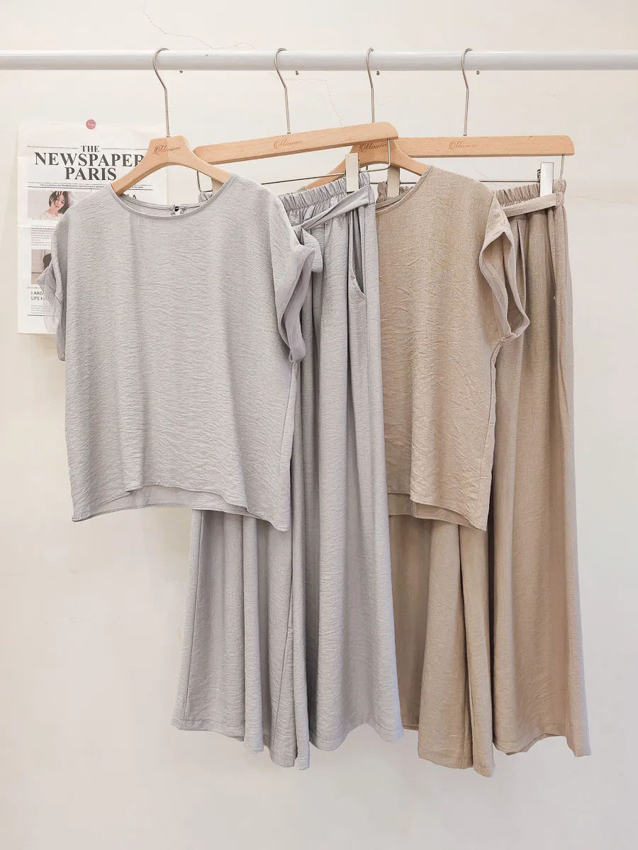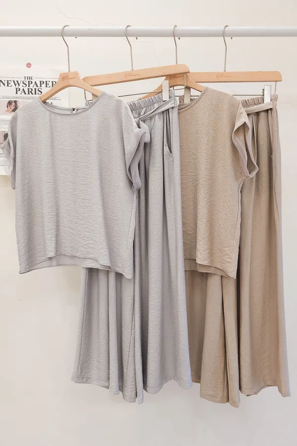 78.正韓 紋理折袖上衣寬褲裙Set 2色