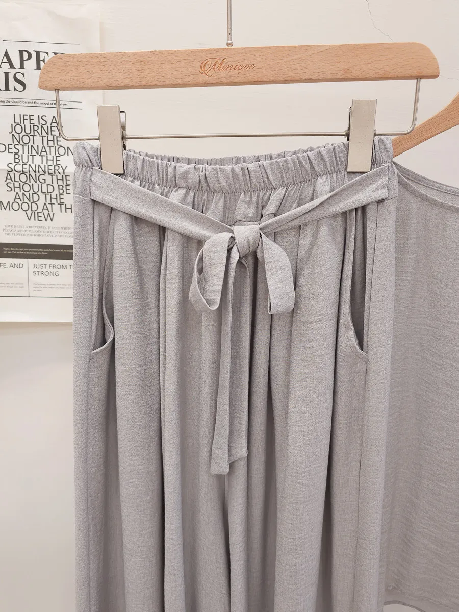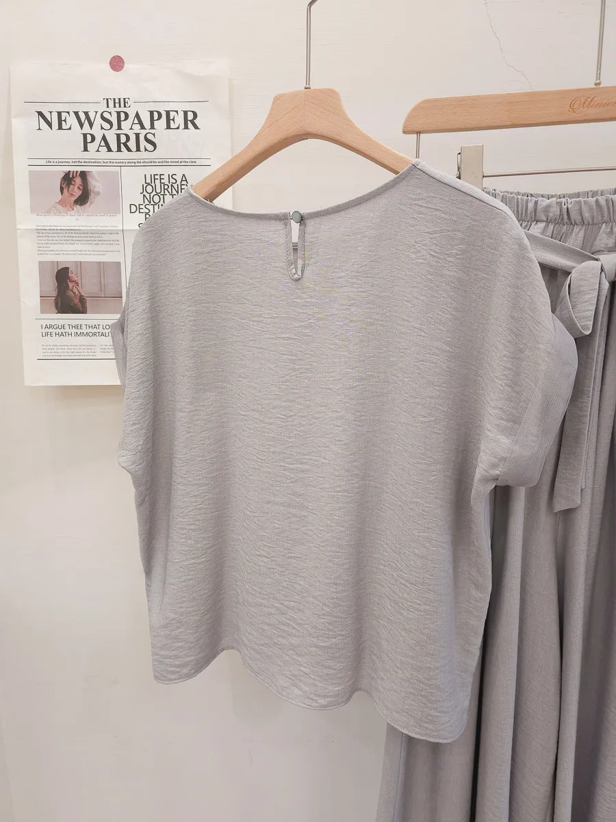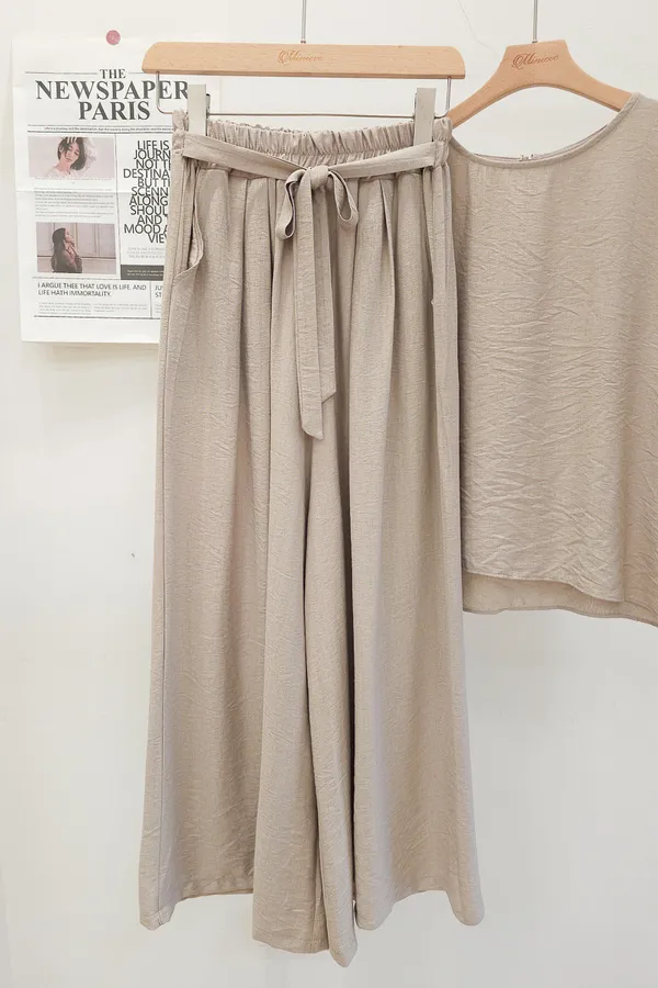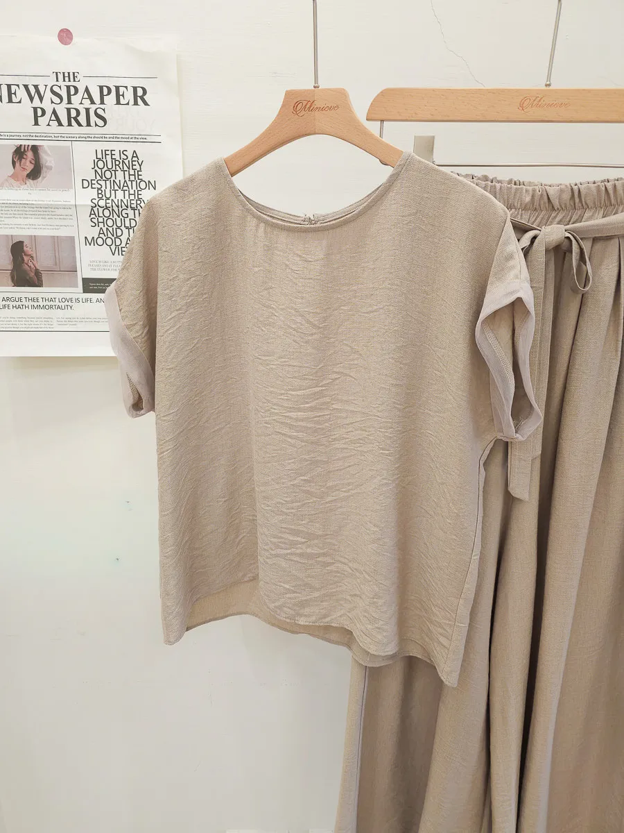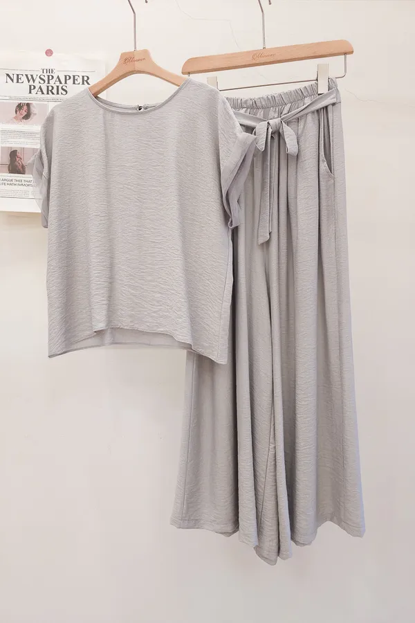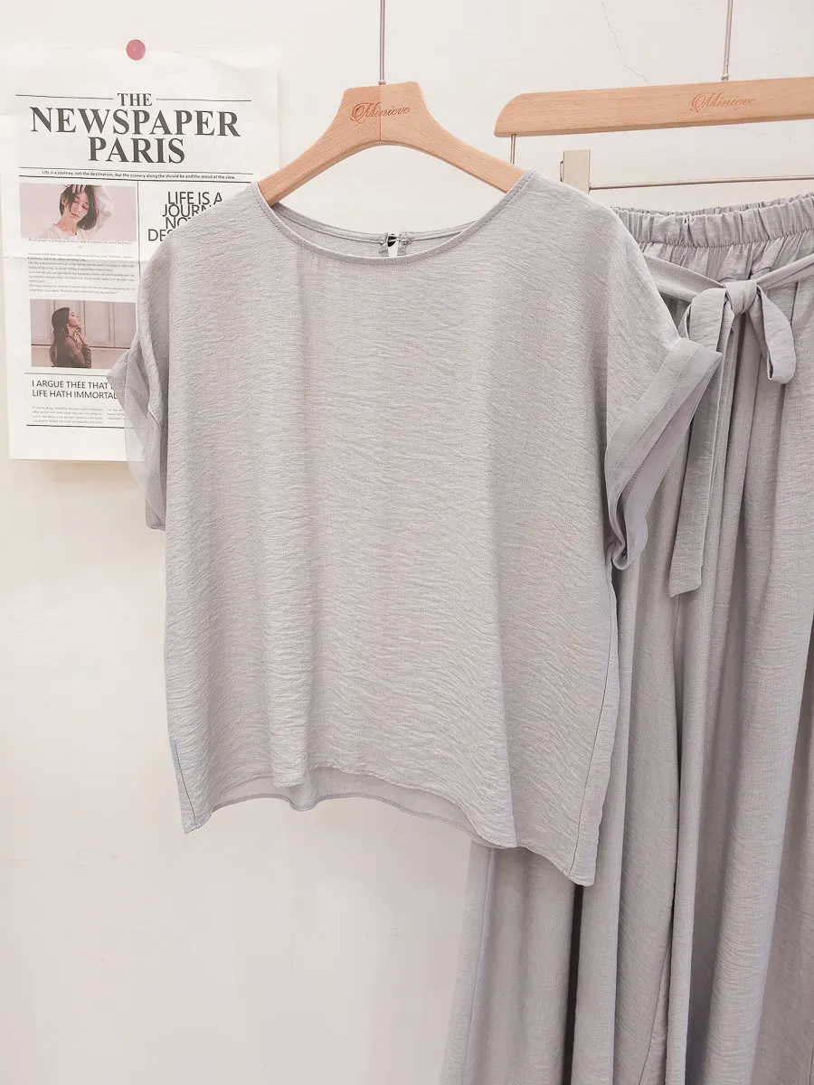 78.正韓 紋理折袖上衣寬褲裙Set 2色