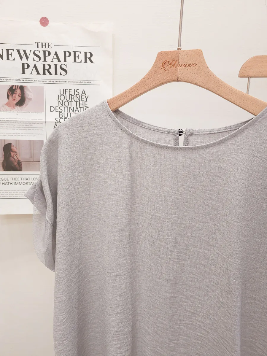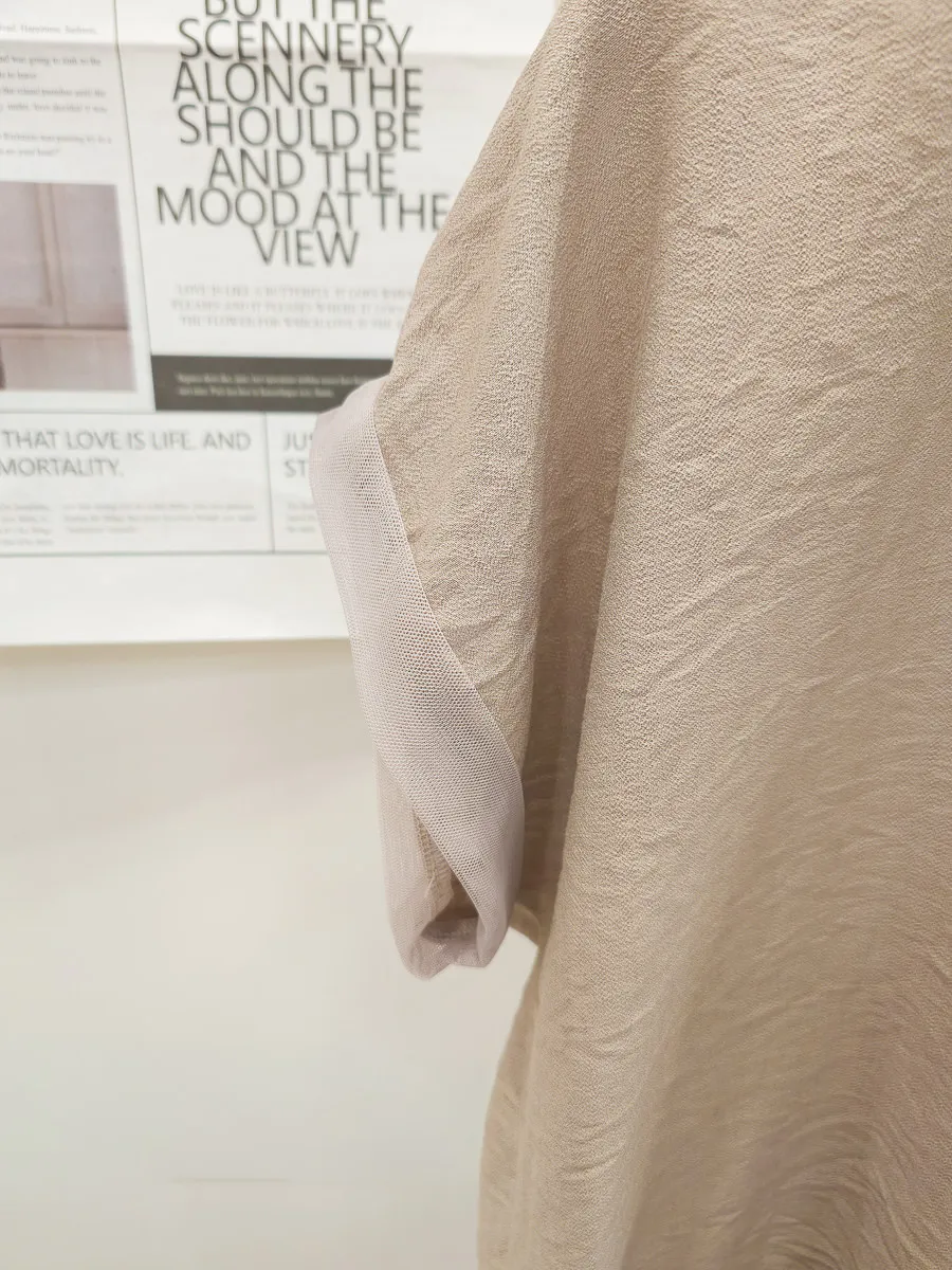 上衣:無內裡/後頸釦/無彈性/紋理棉紡+網紗袖