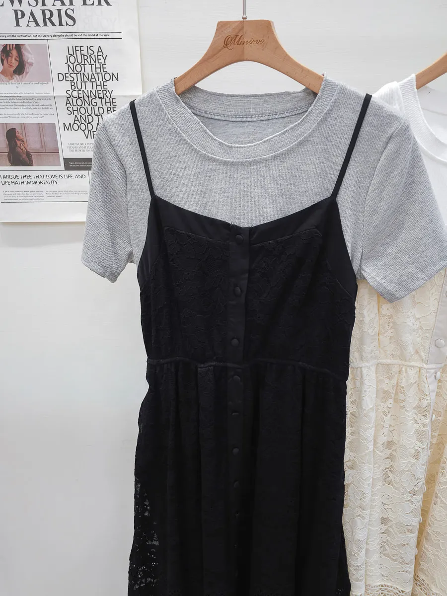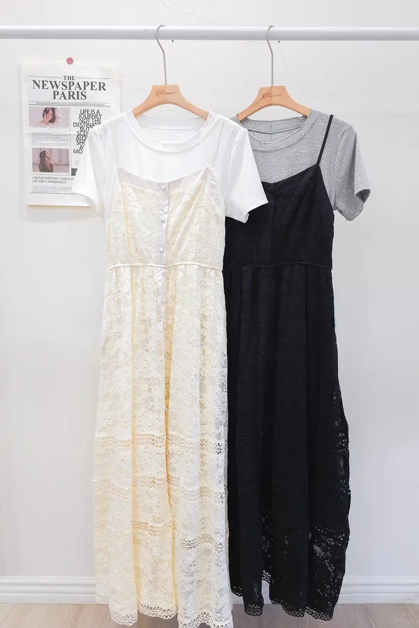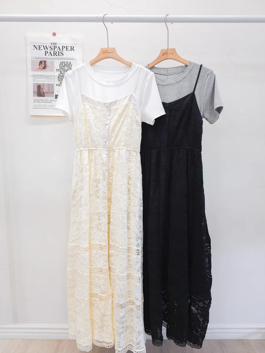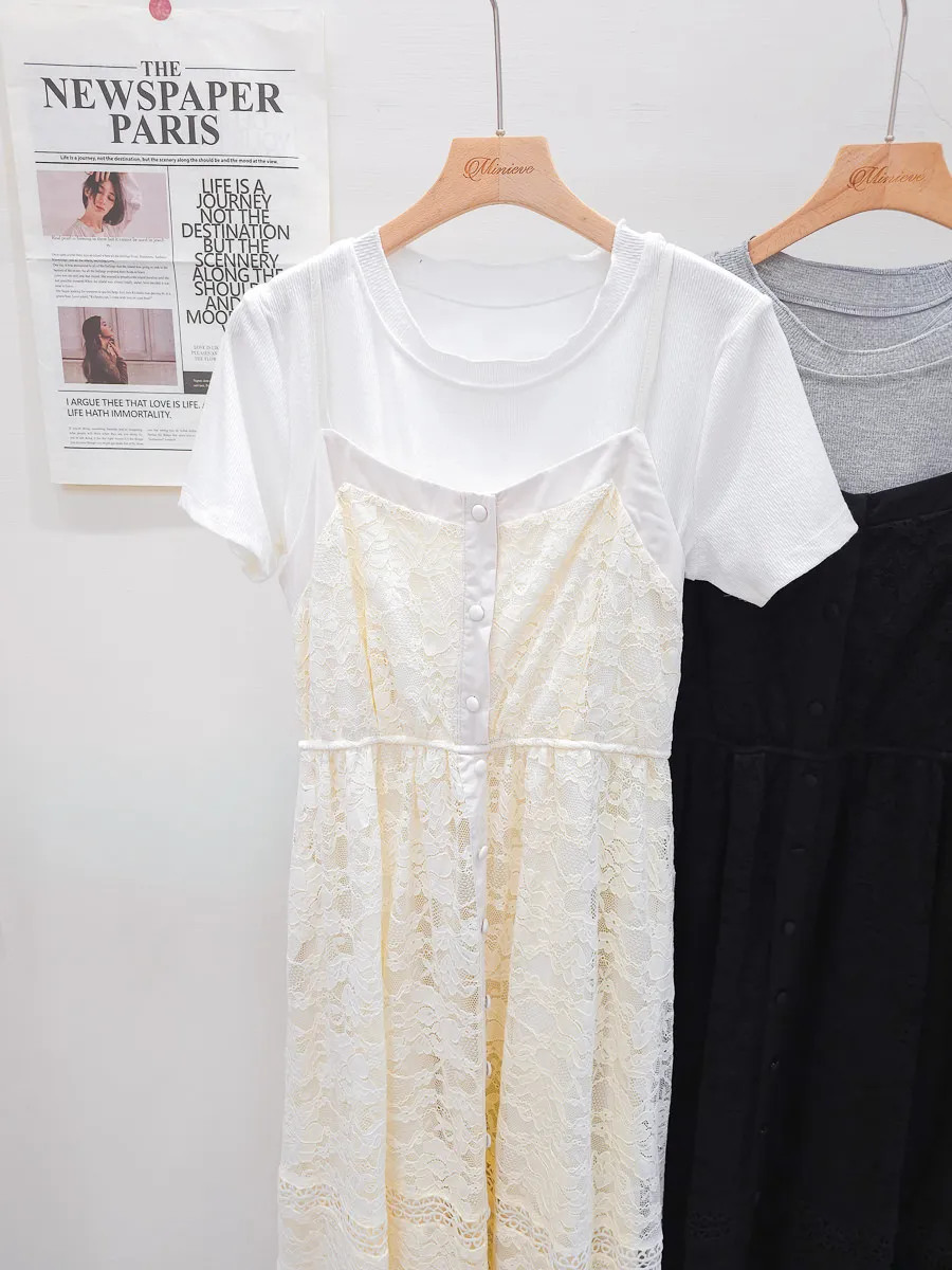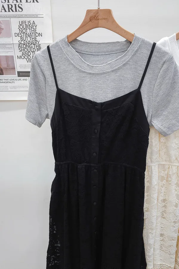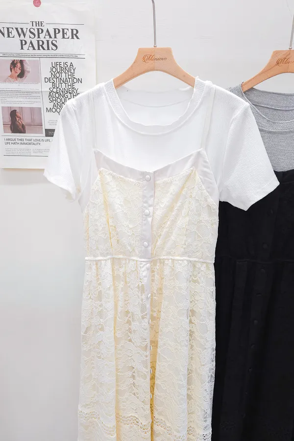 蕾絲拼接假兩件式洋裝 2色