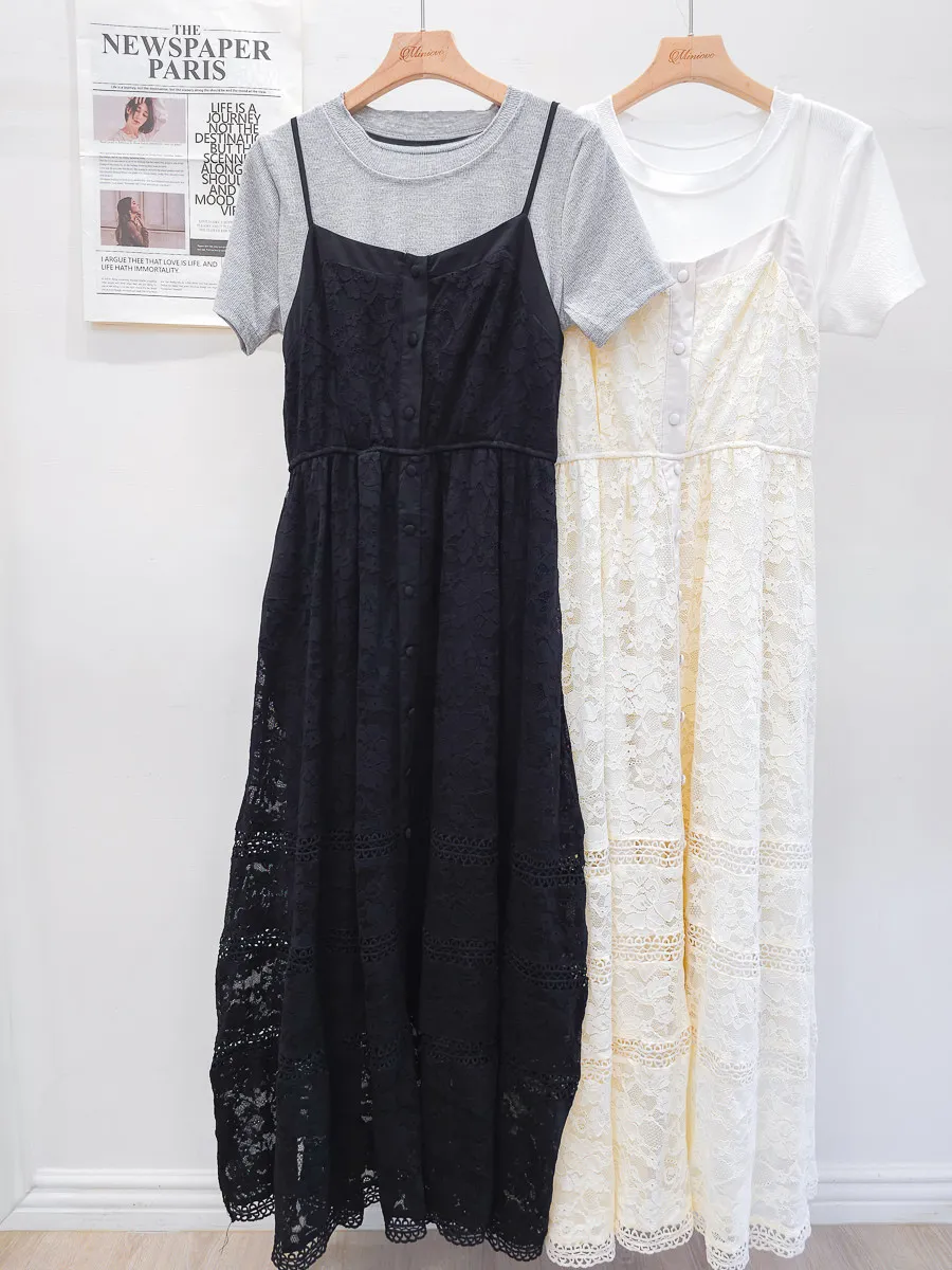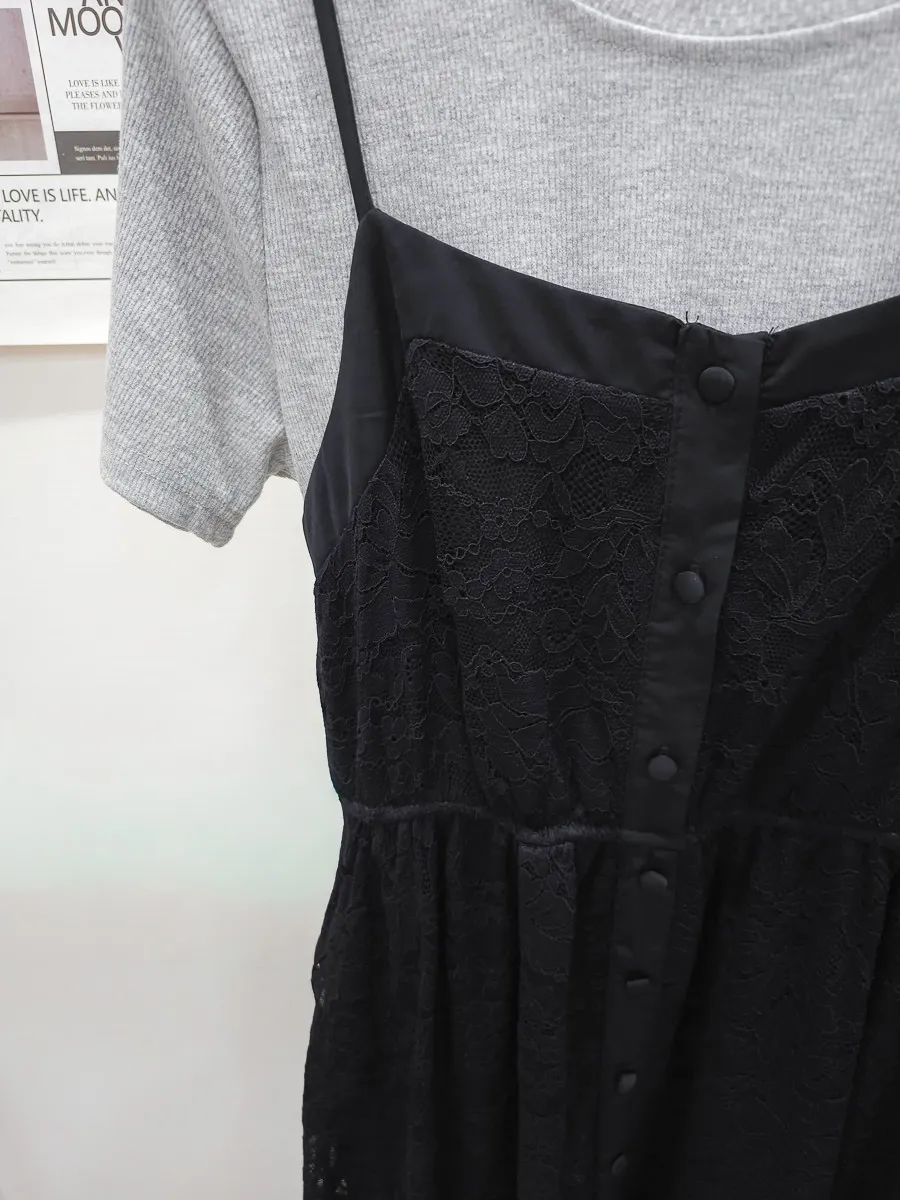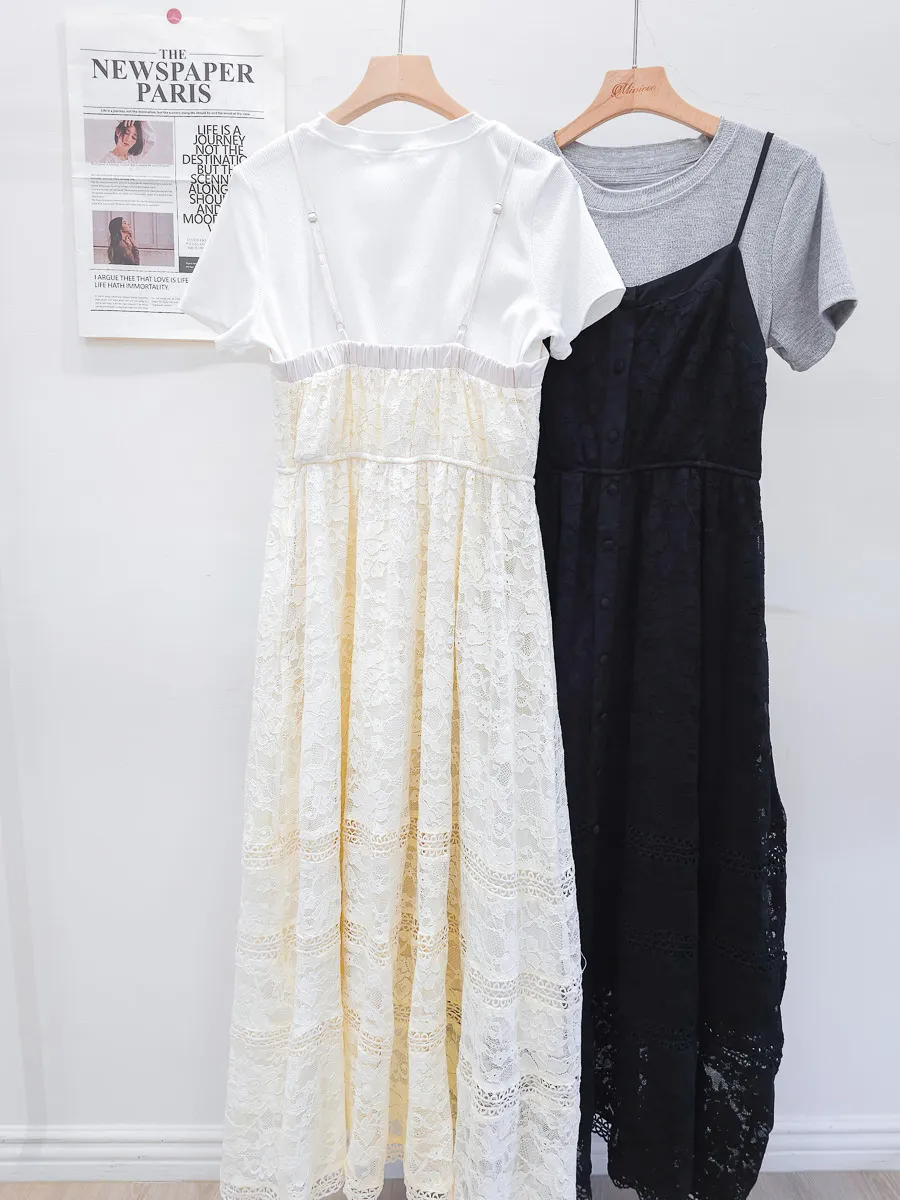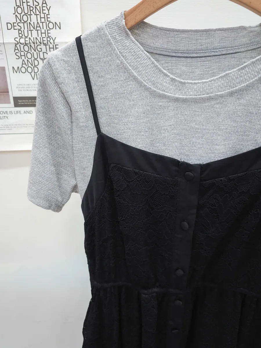 蕾絲拼接假兩件式洋裝 2色