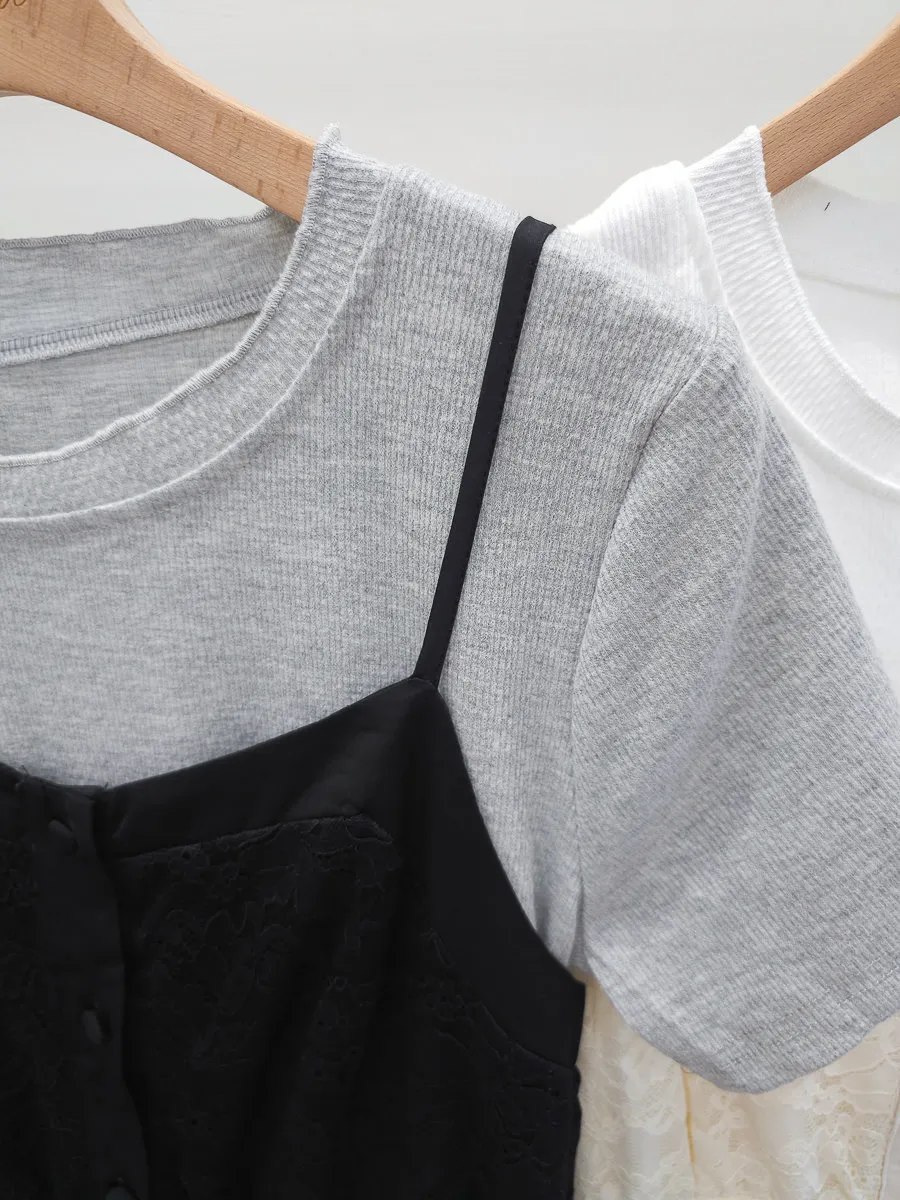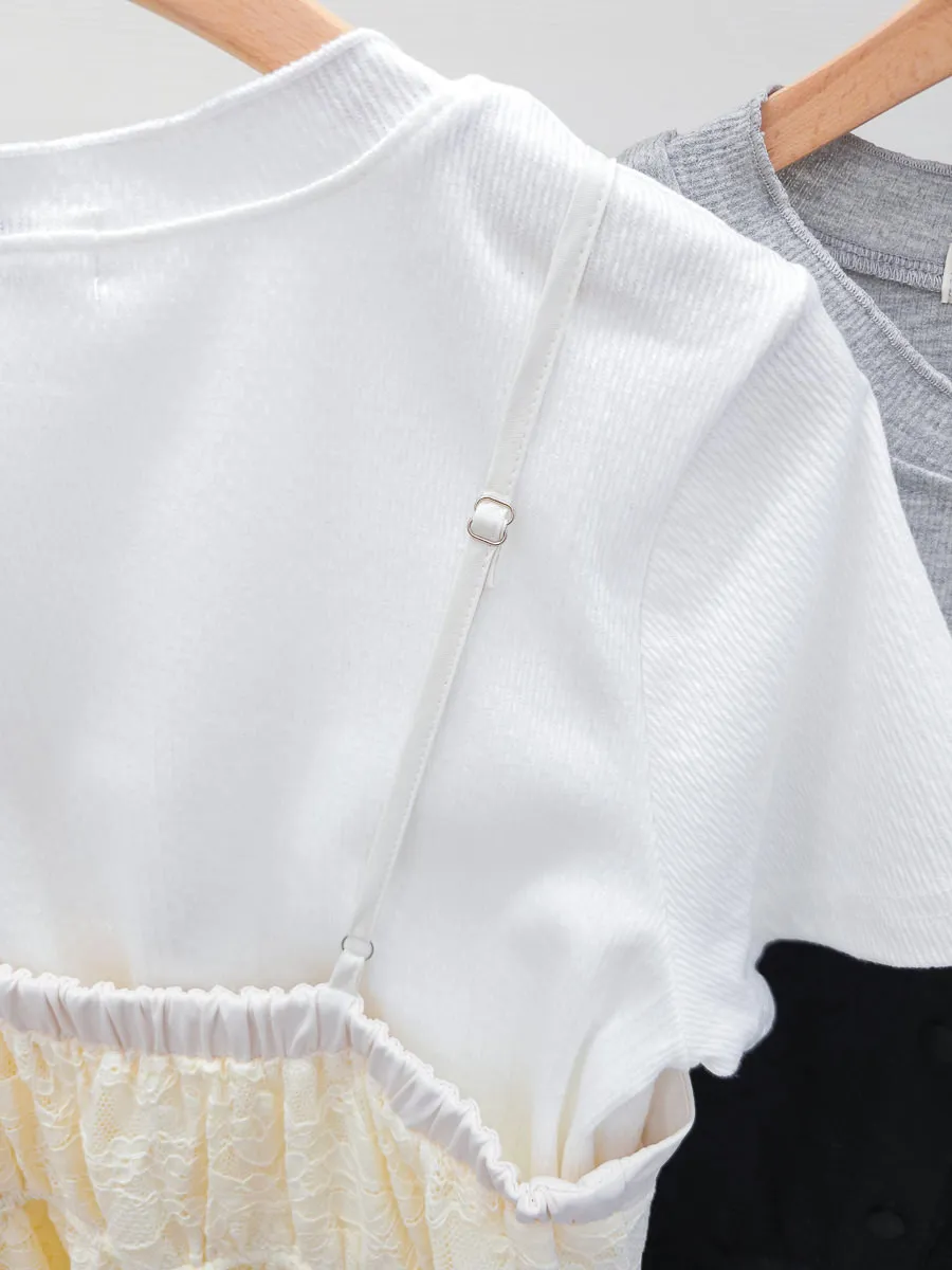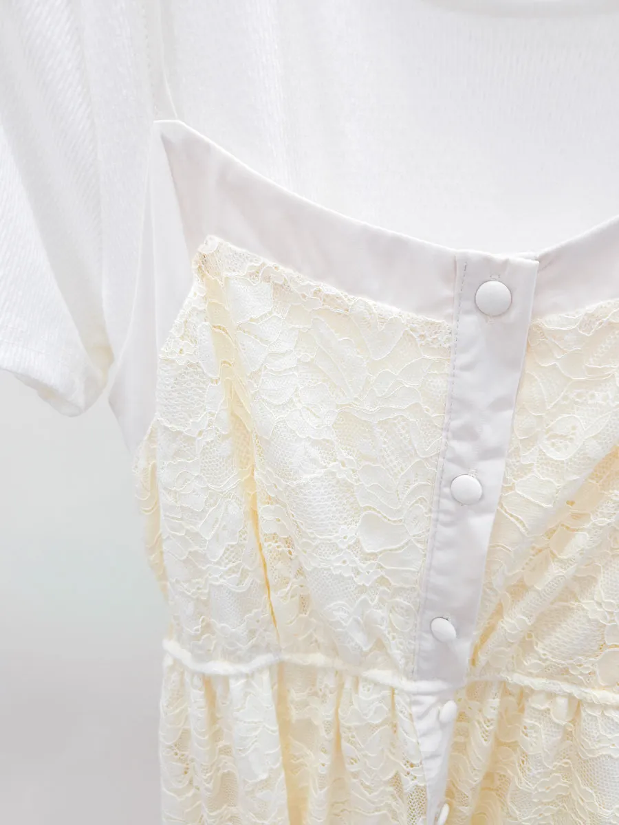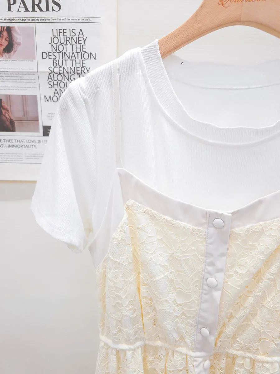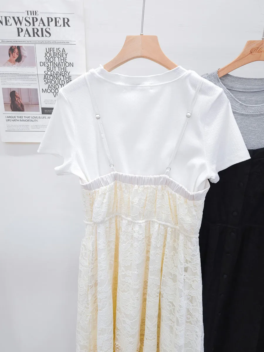 蕾絲拼接假兩件式洋裝 2色