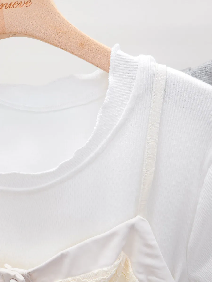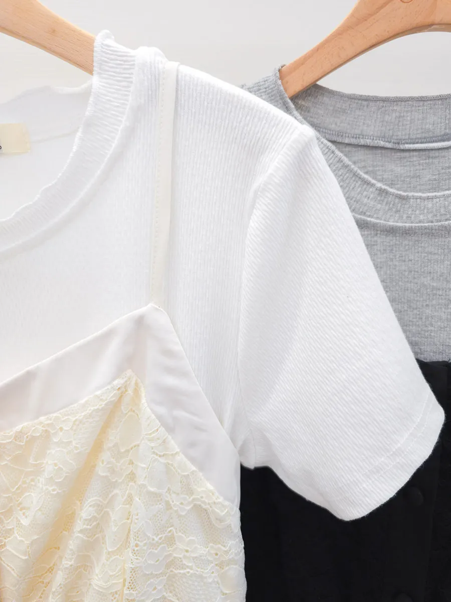 下半有內裡/穿套/有彈性/螺紋棉+棉織蕾絲