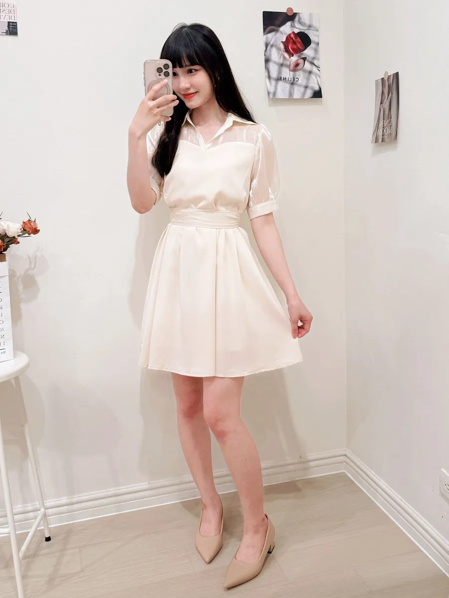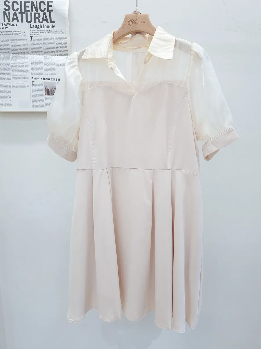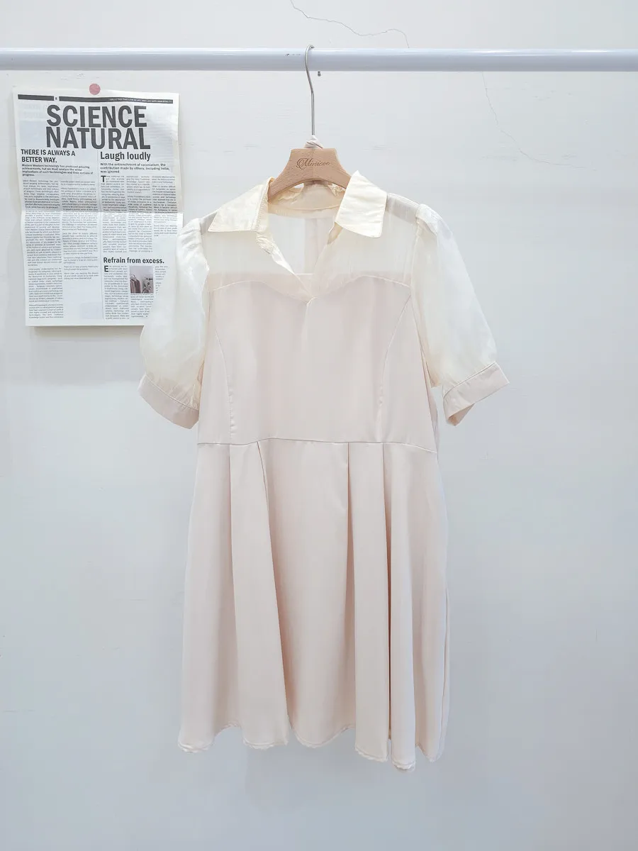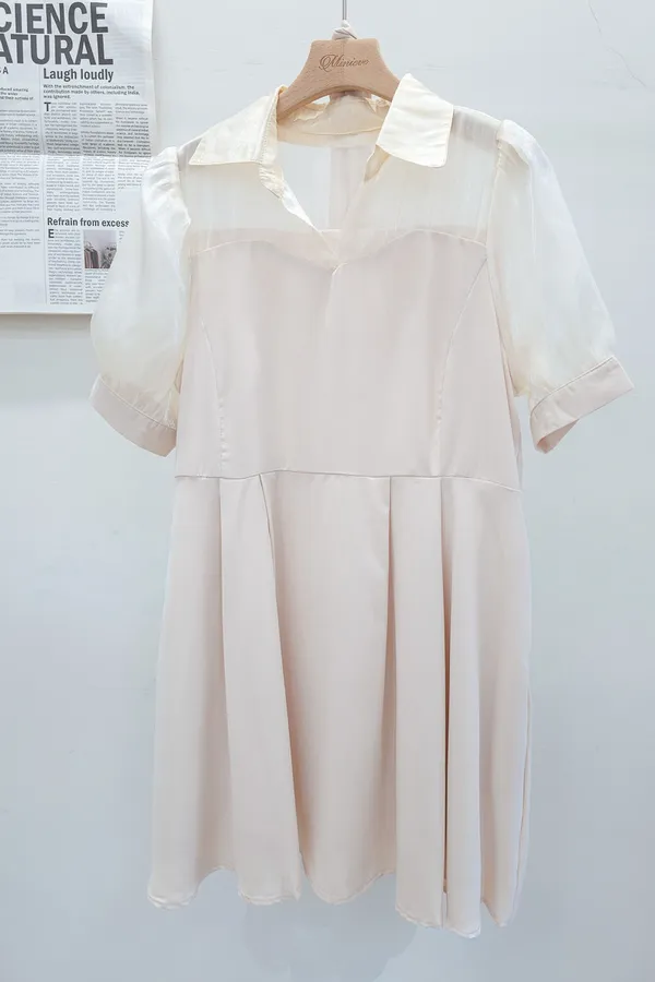 102.透紗馬甲拼接短洋裝