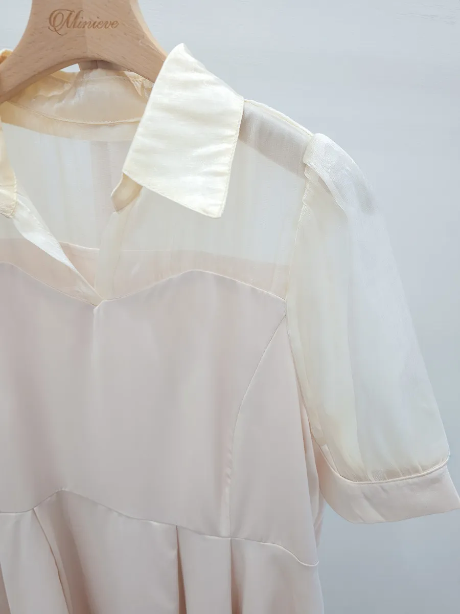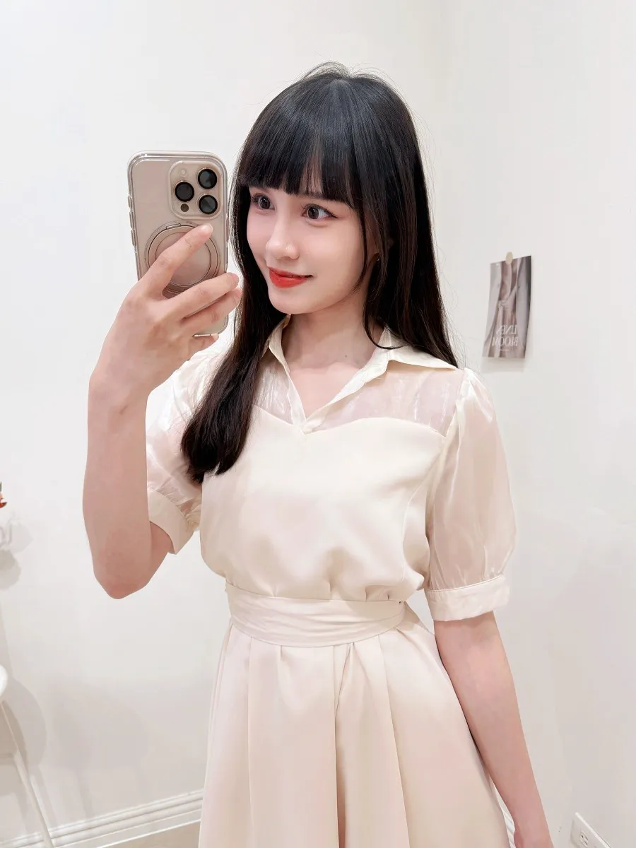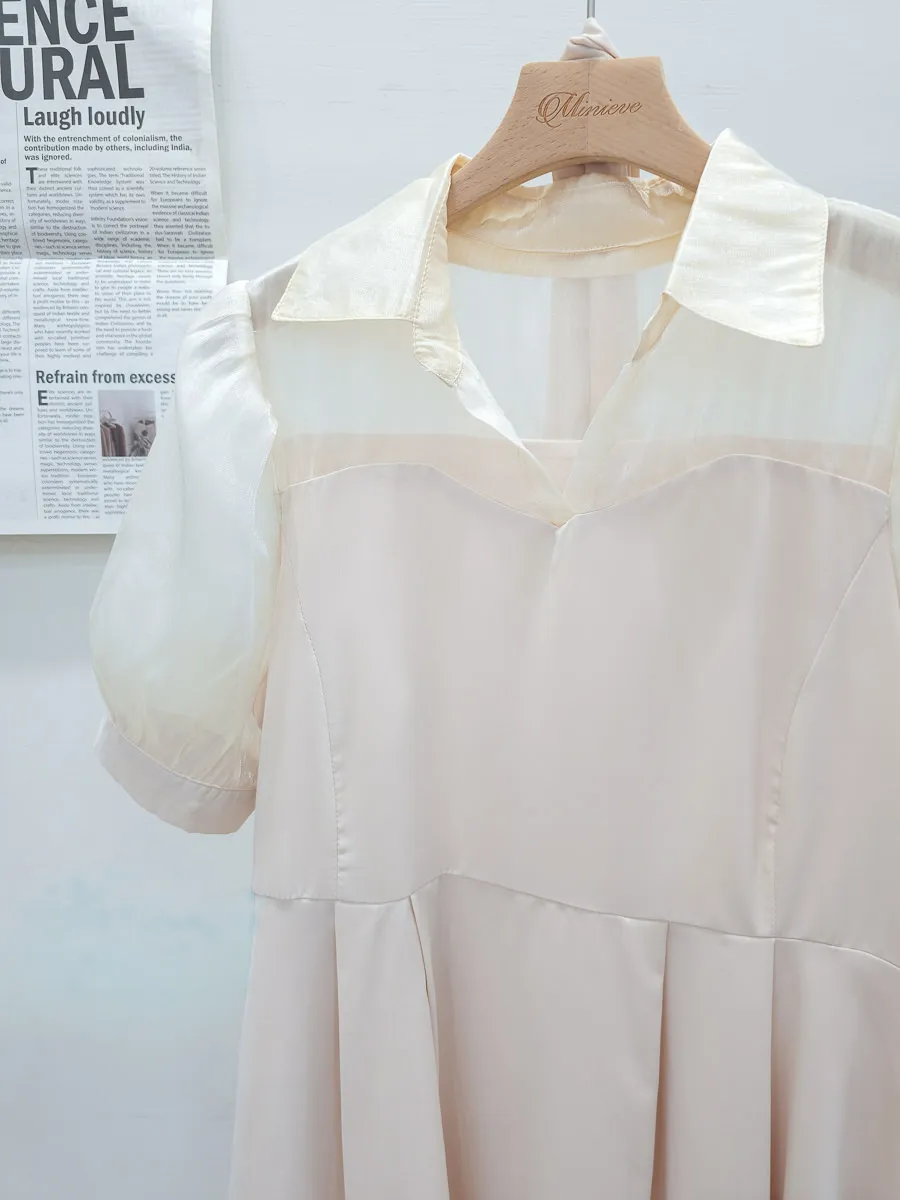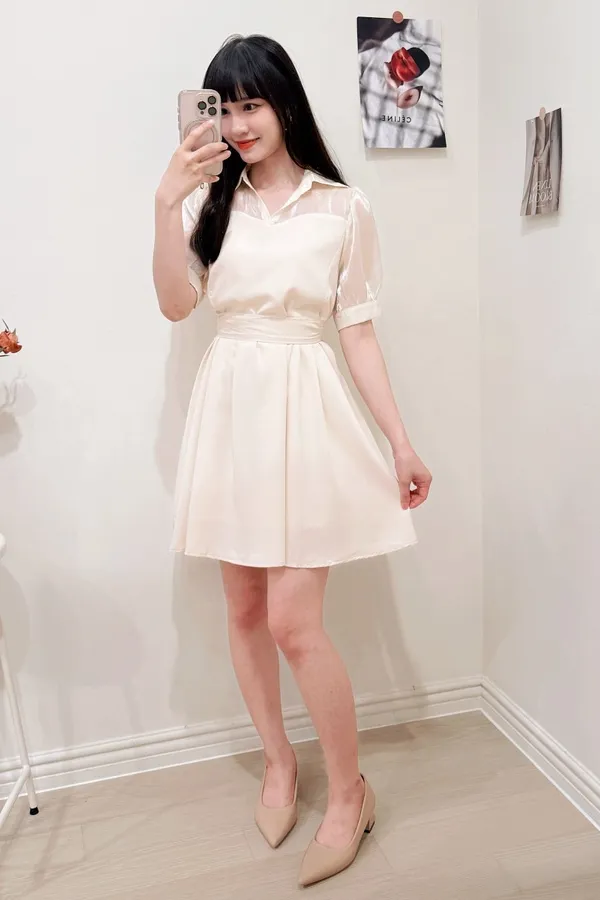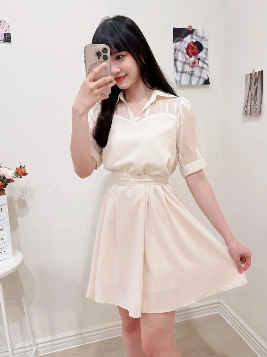 102.透紗馬甲拼接短洋裝
