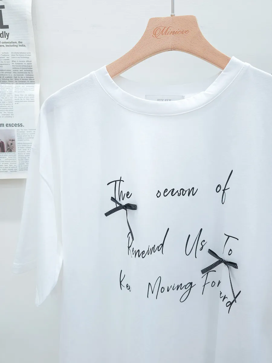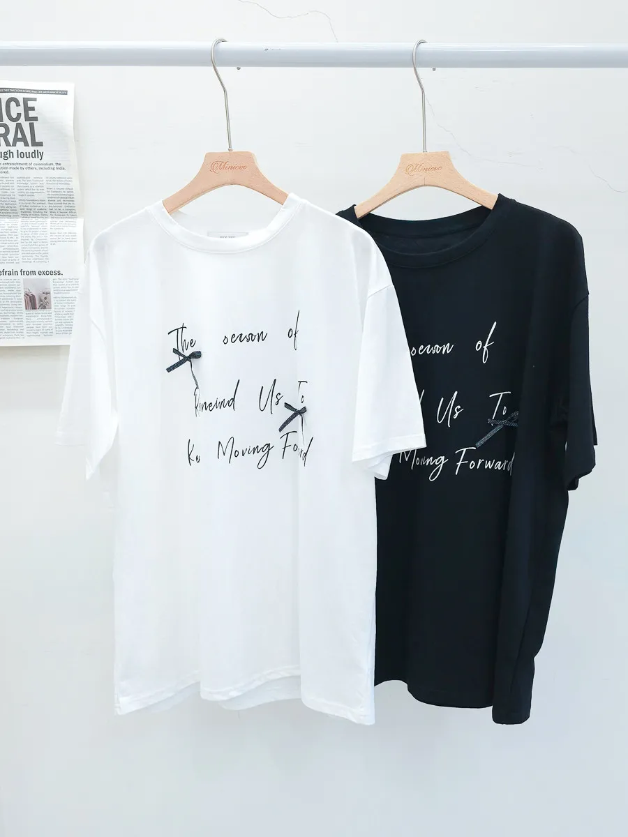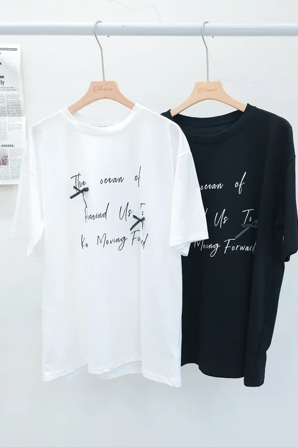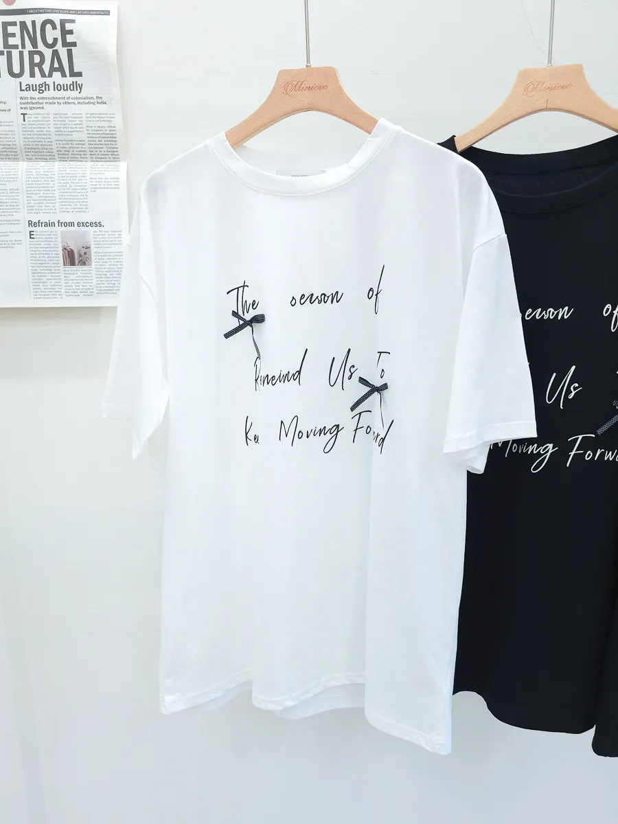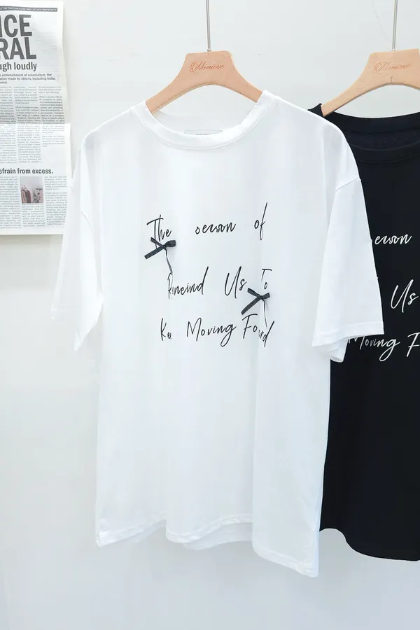 115.正韓 英文綴蝴蝶結寬版棉T 2色