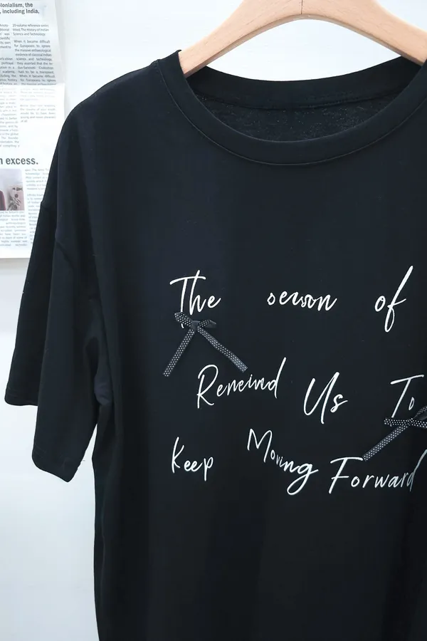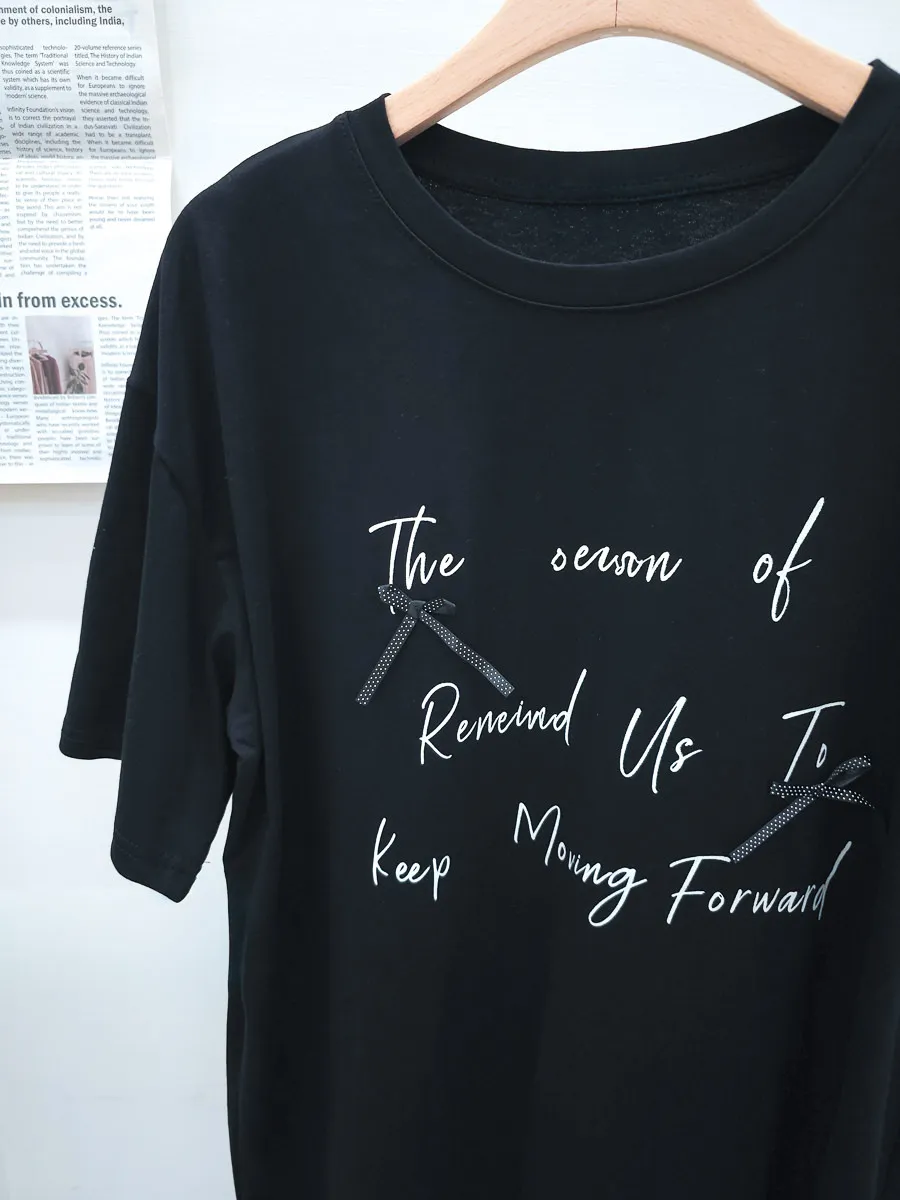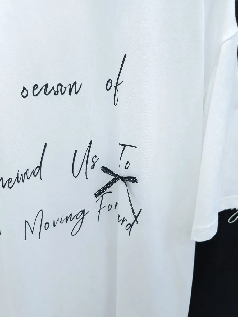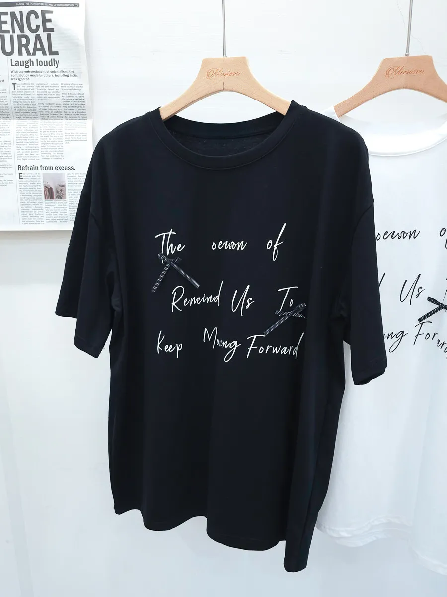 115.正韓 英文綴蝴蝶結寬版棉T 2色