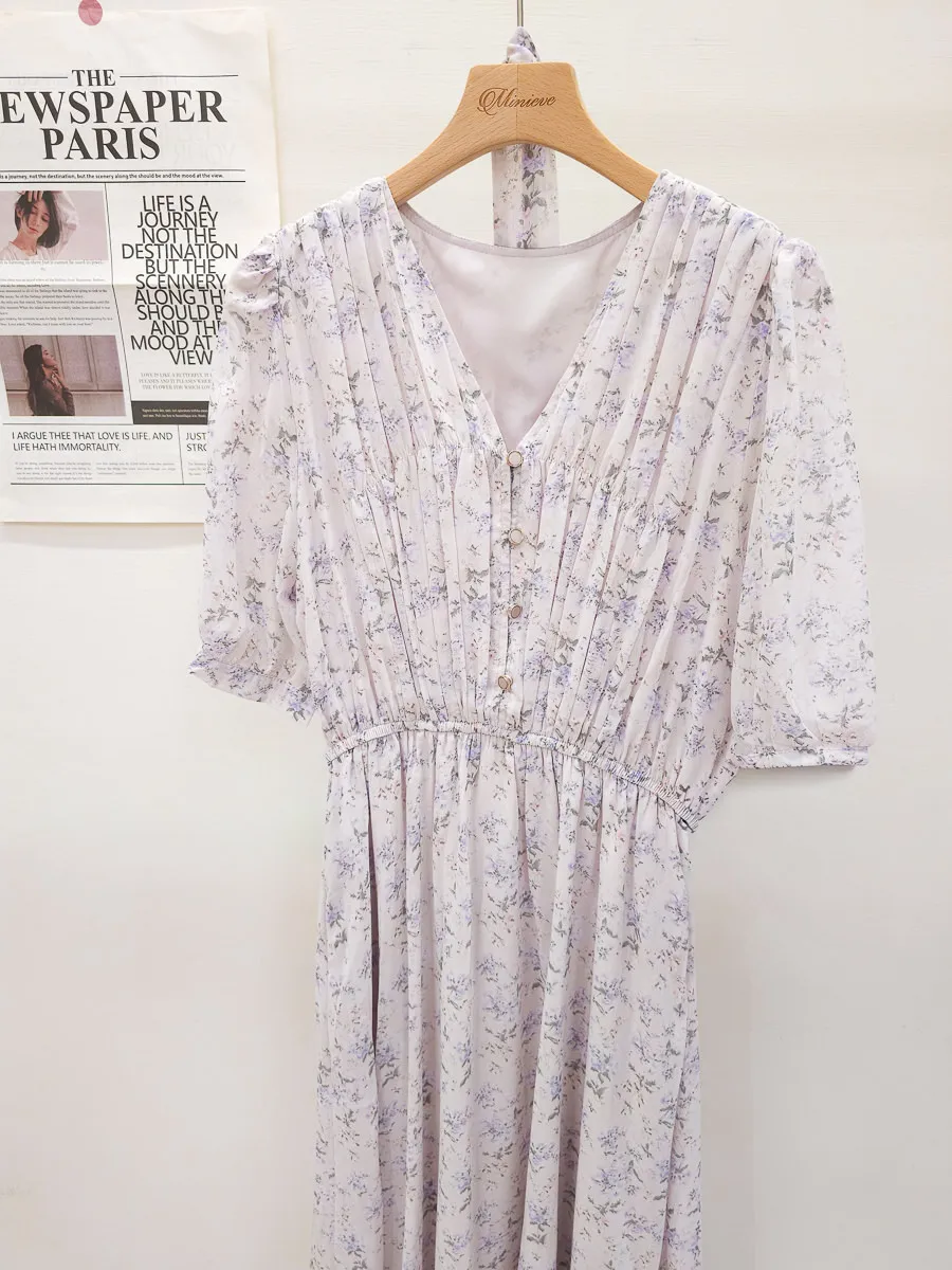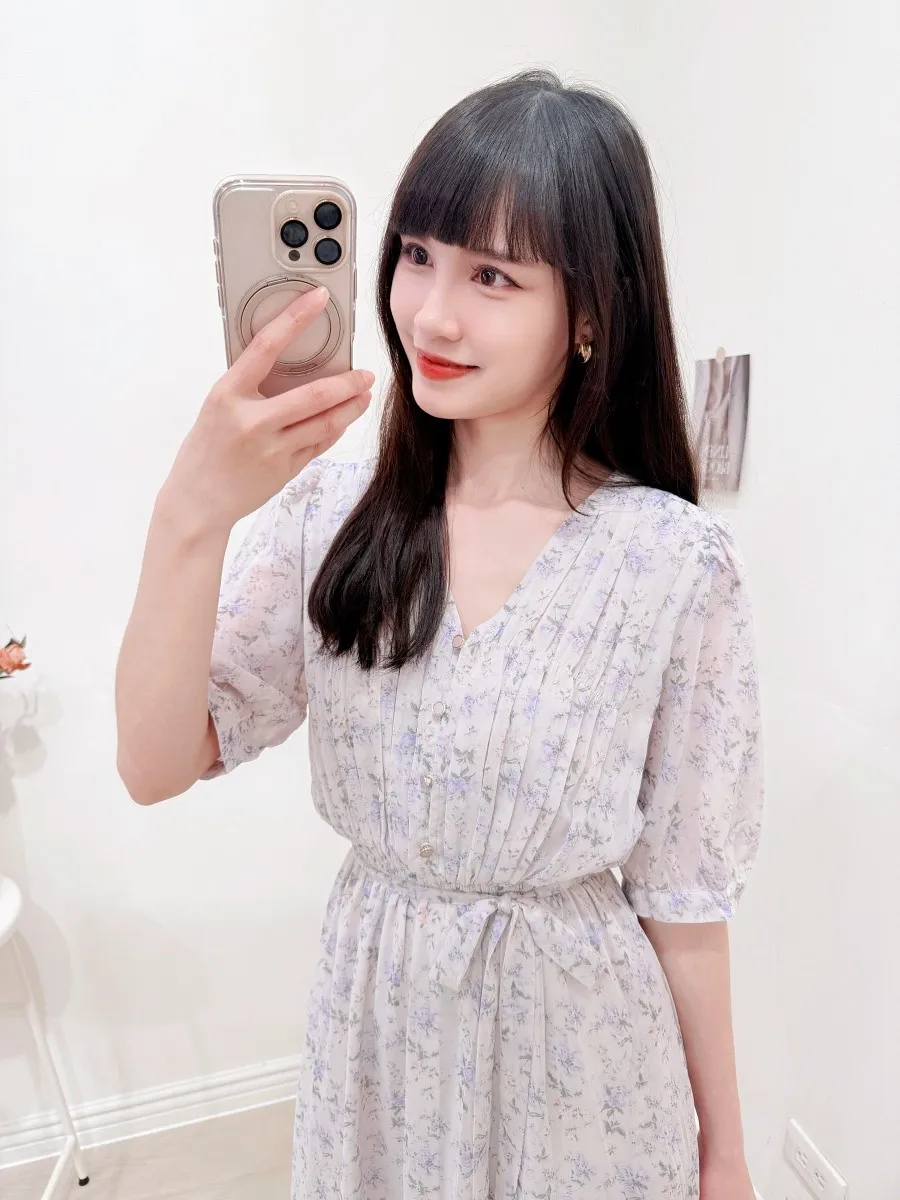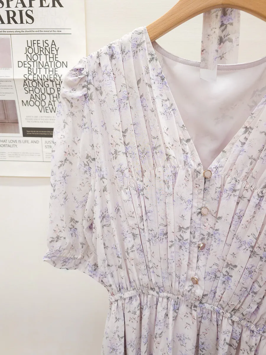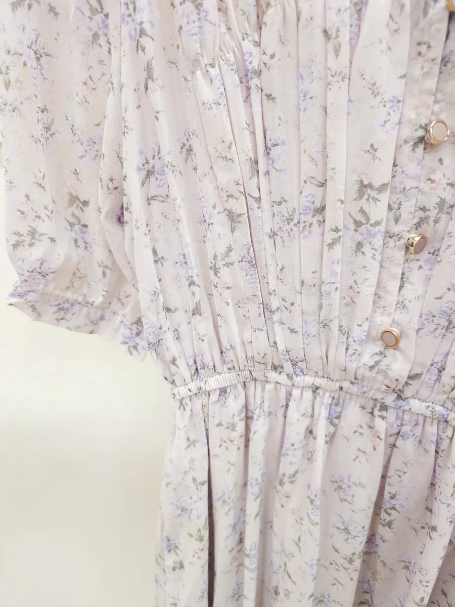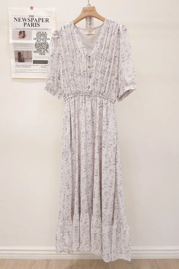 117.細摺排釦層次碎花洋裝