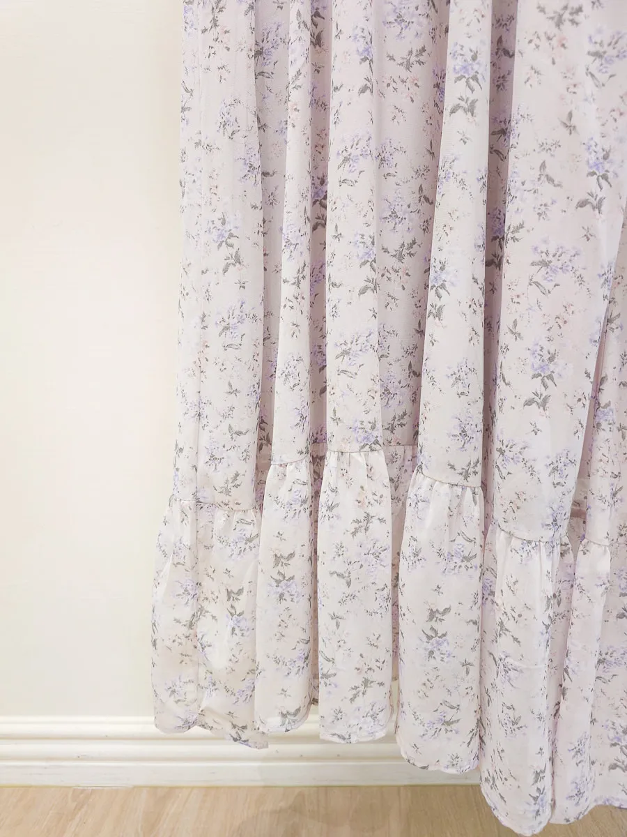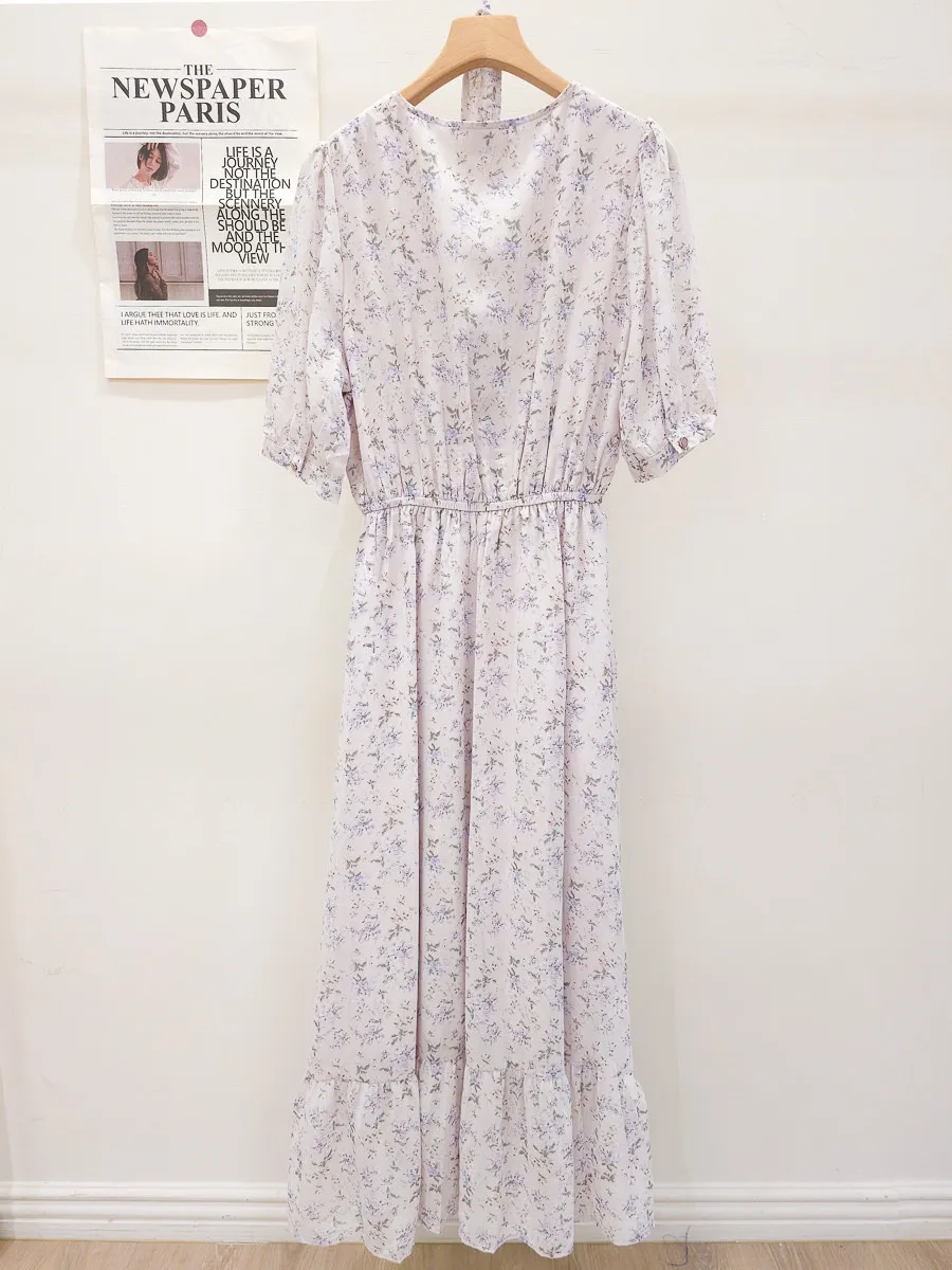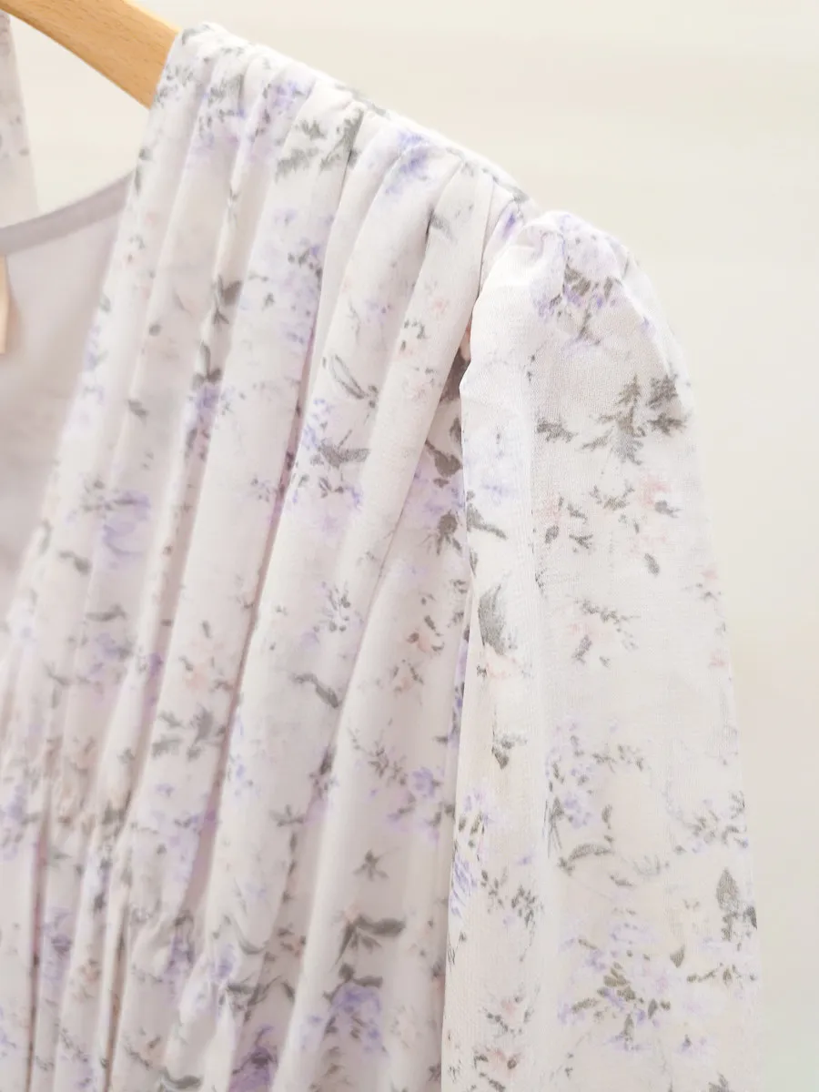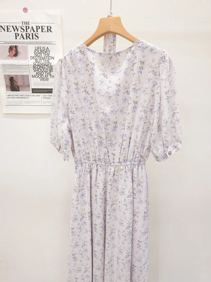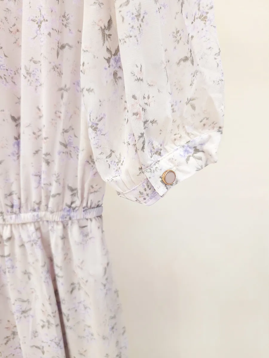 117.細摺排釦層次碎花洋裝