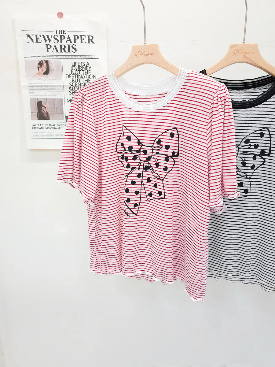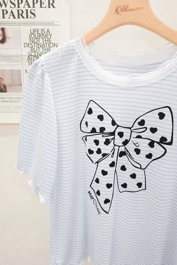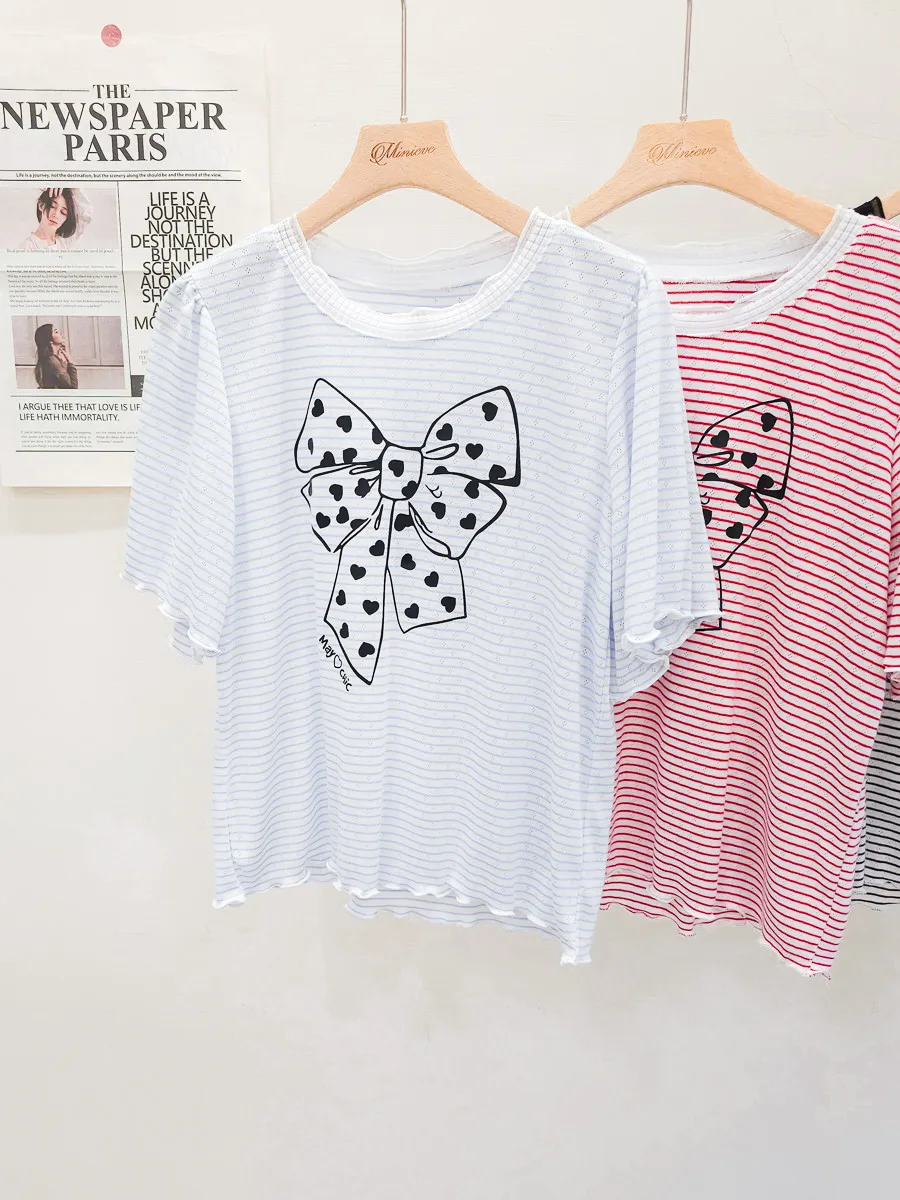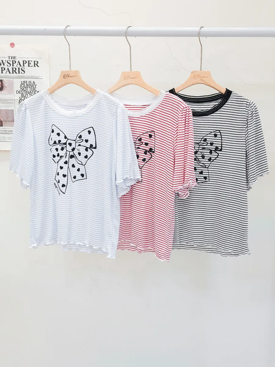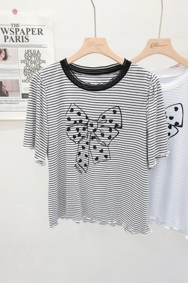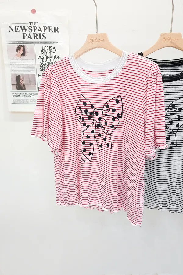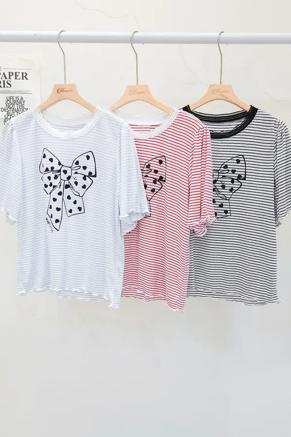 12.正韓 細條紋蝴蝶結棉T 3色