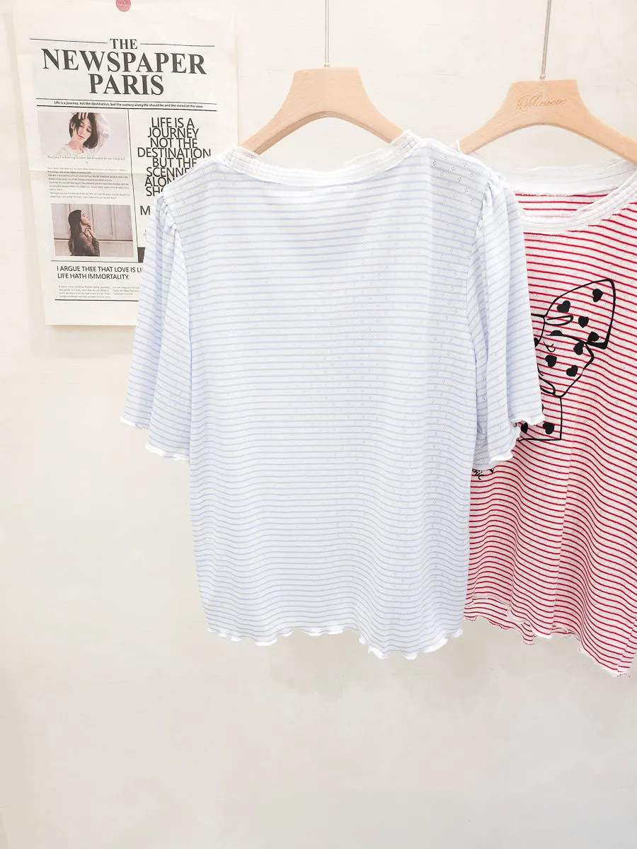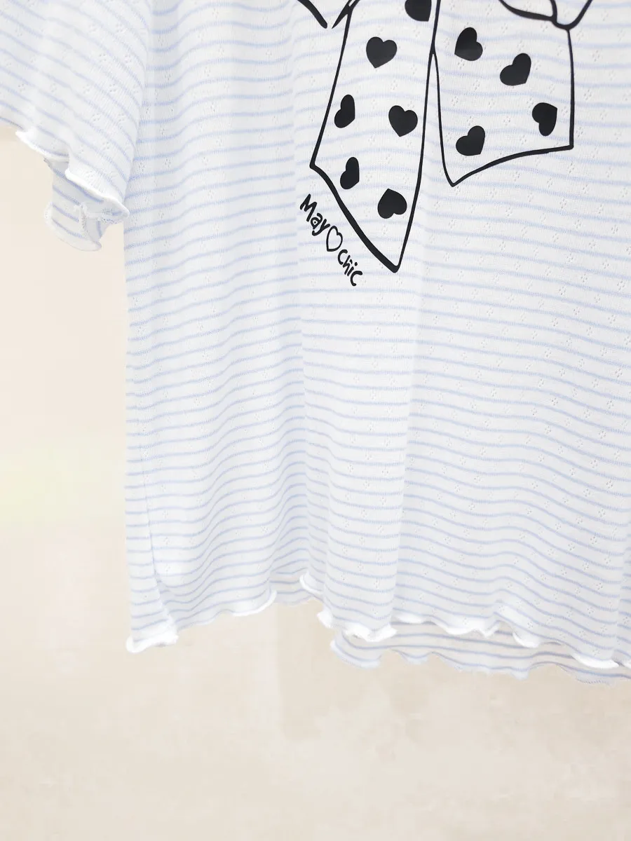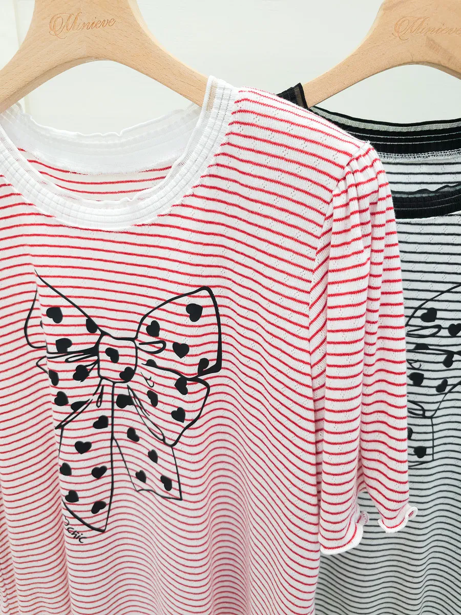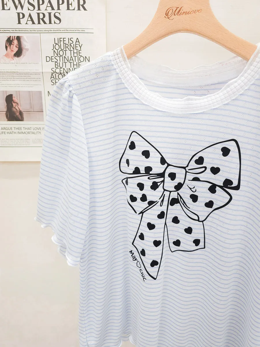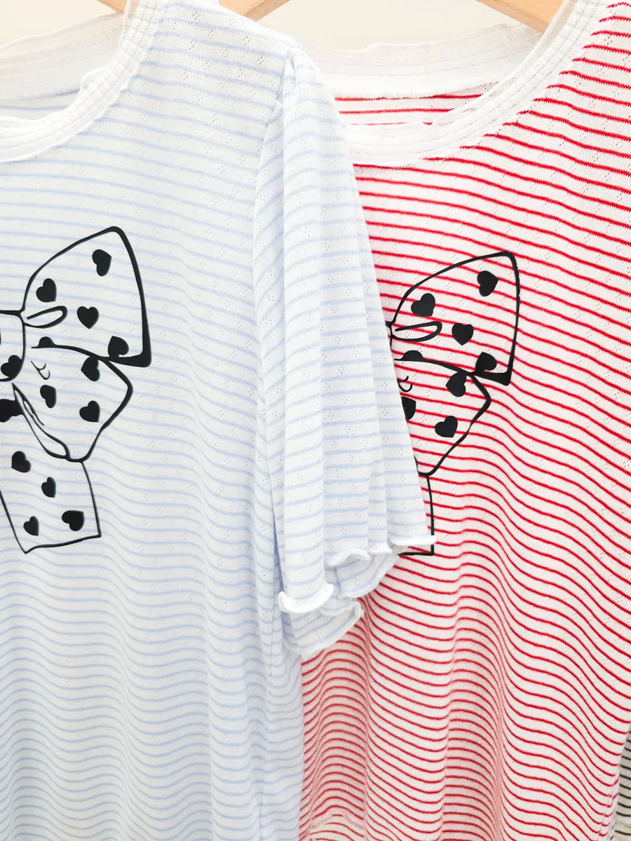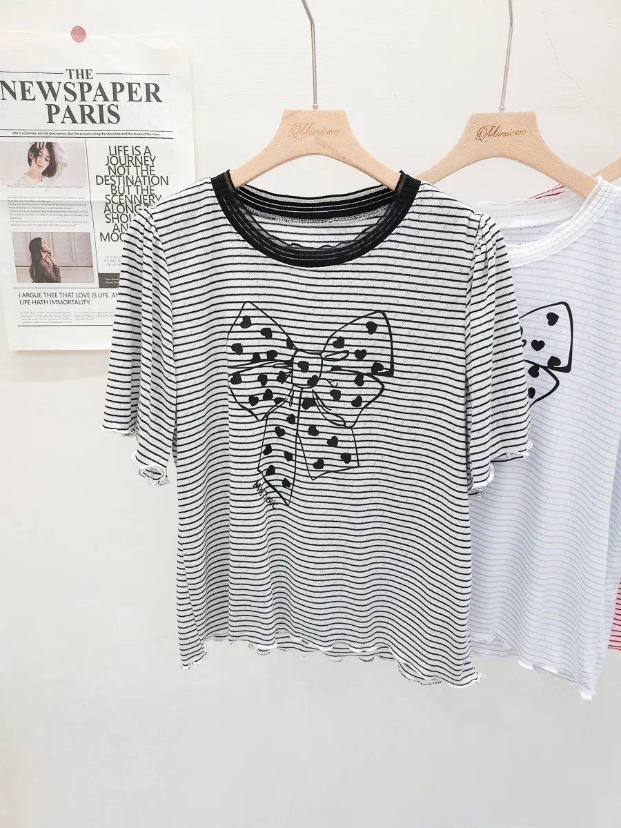 12.正韓 細條紋蝴蝶結棉T 3色
