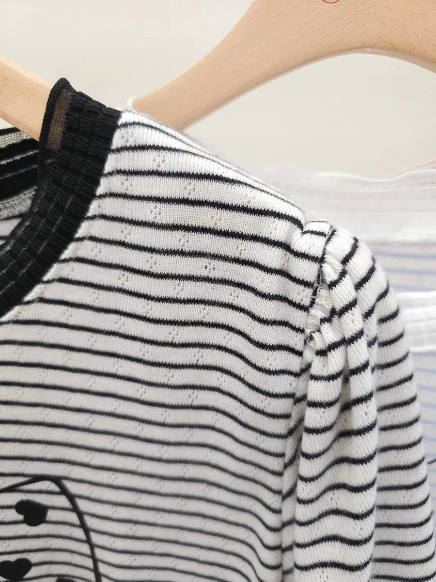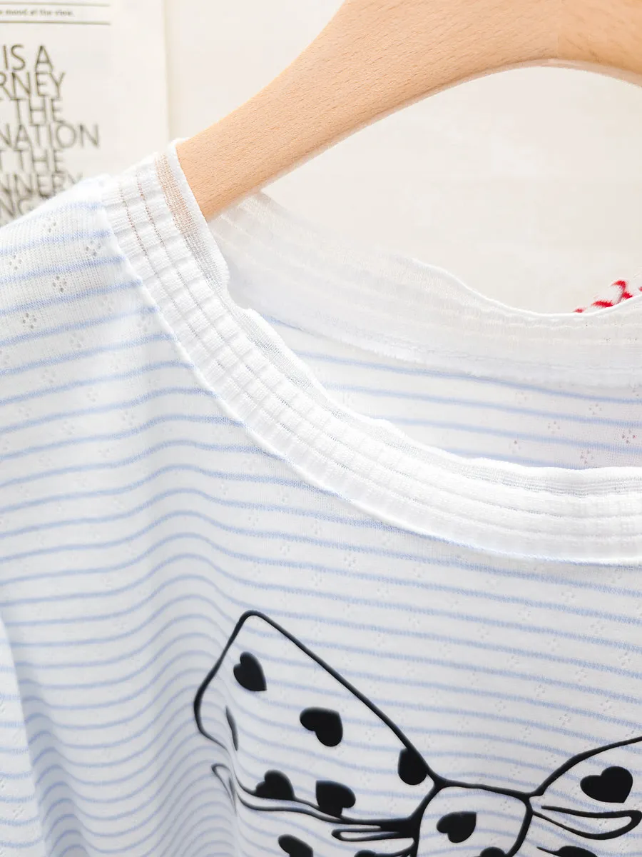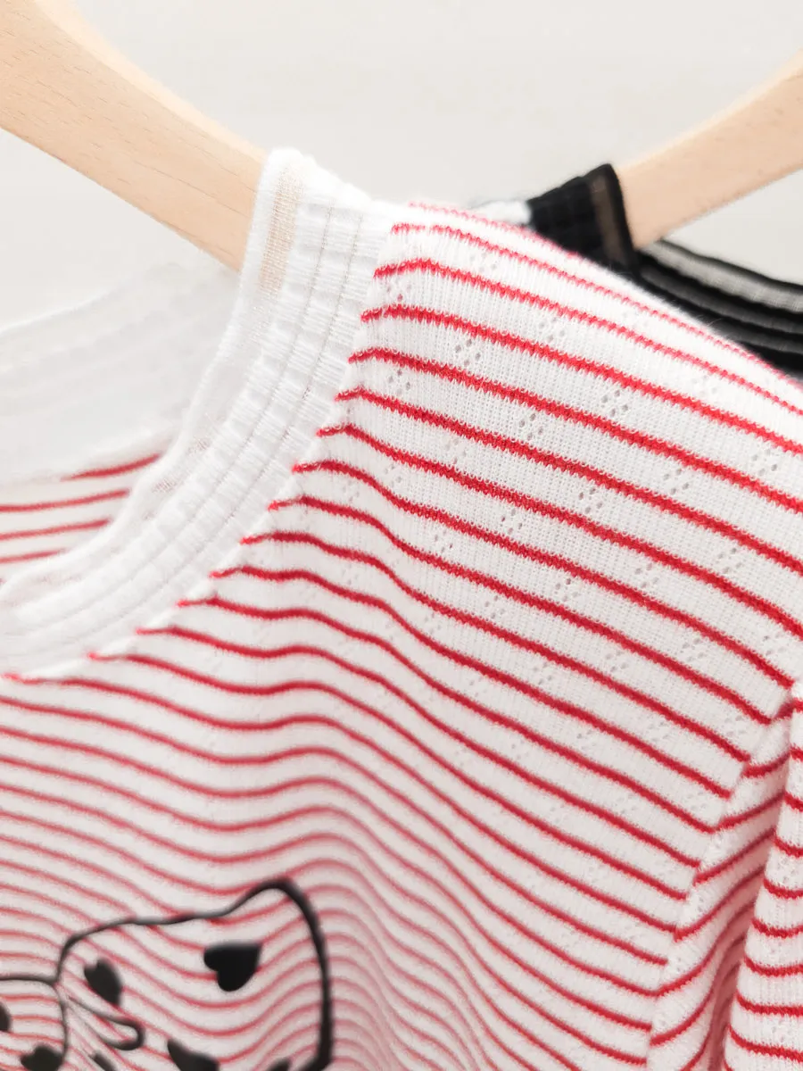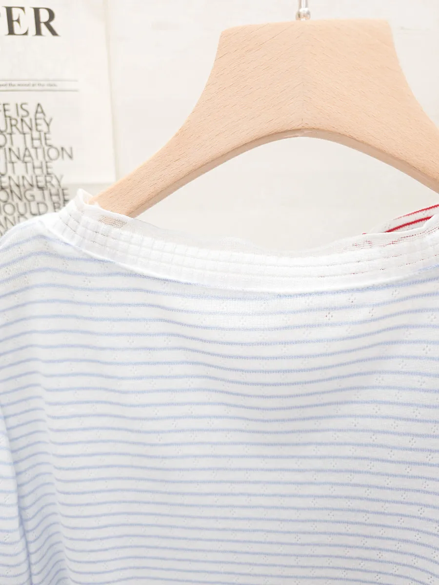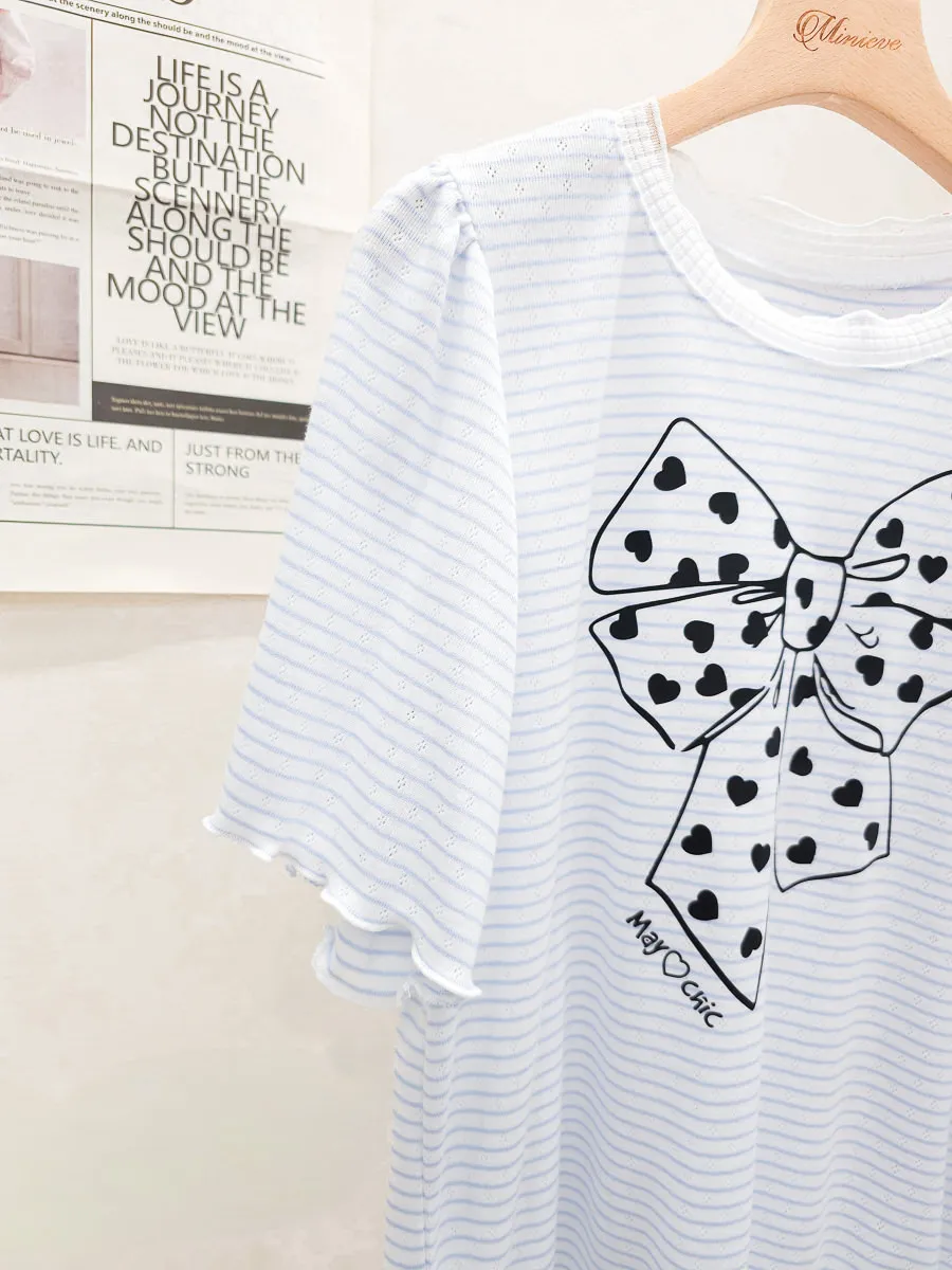 12.正韓 細條紋蝴蝶結棉T 3色