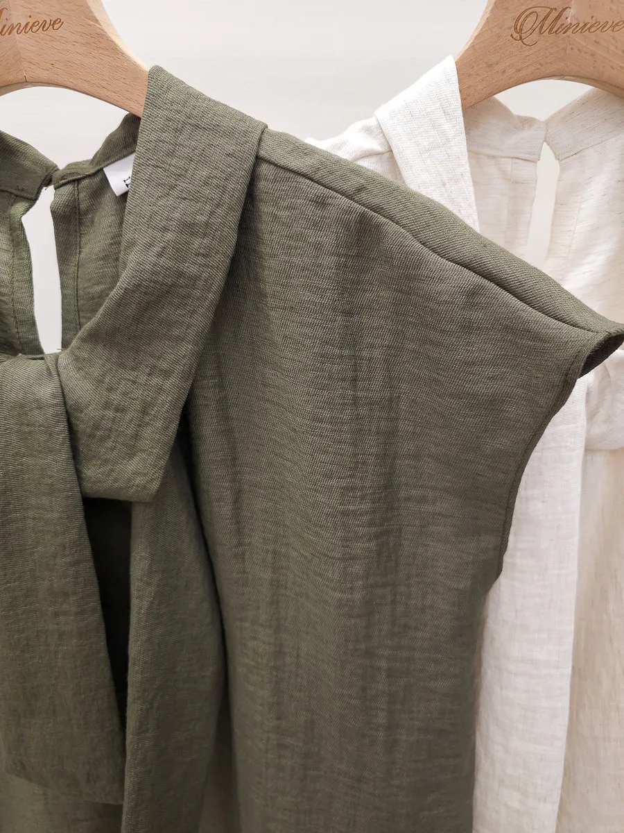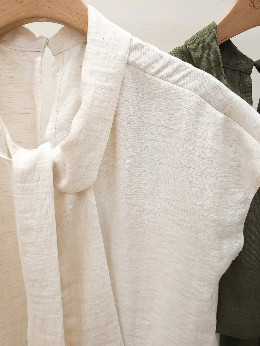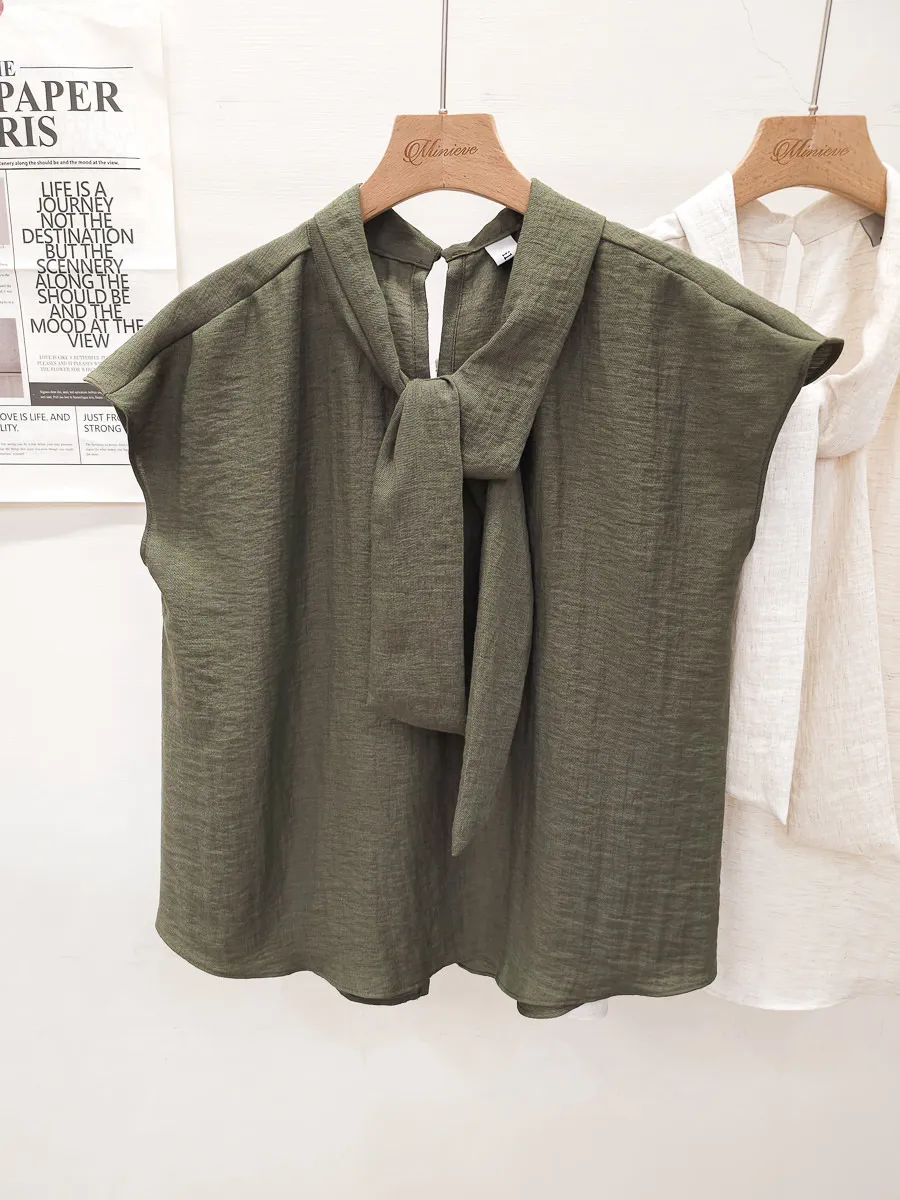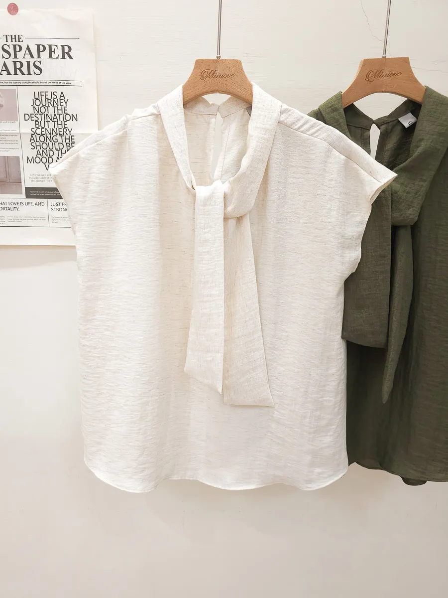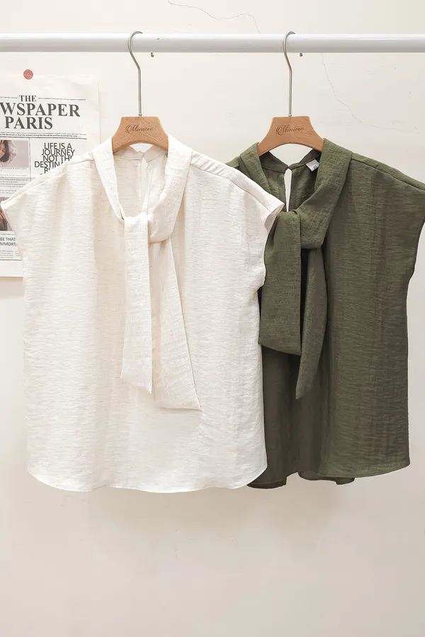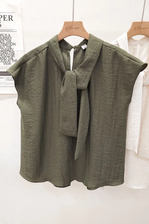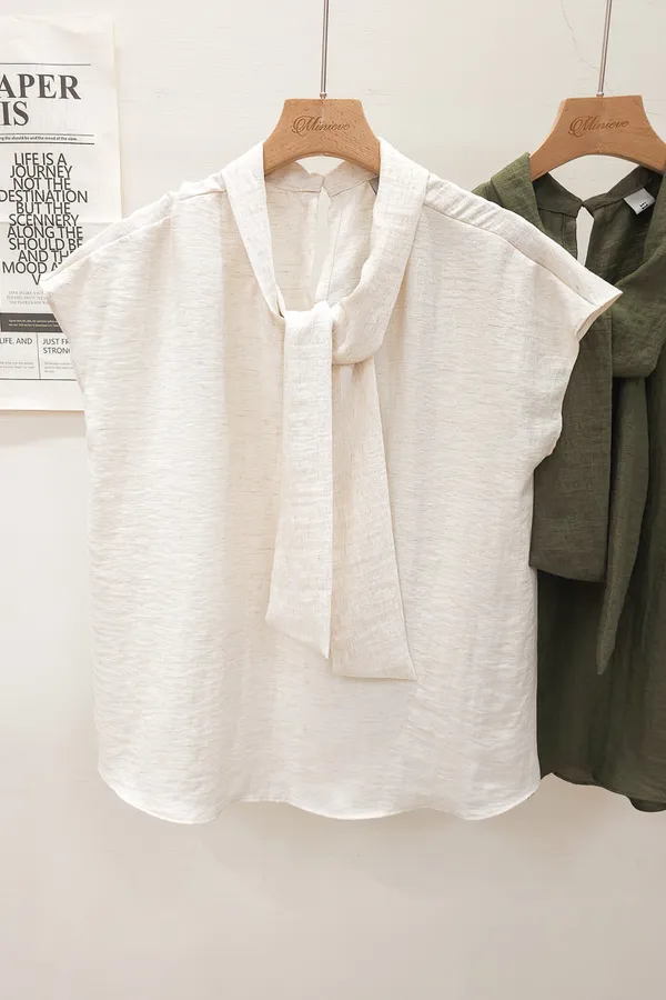 20.正韓 隨性領帶棉麻上衣 2色