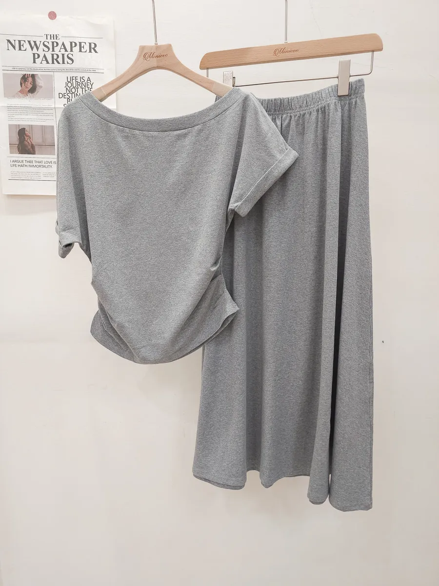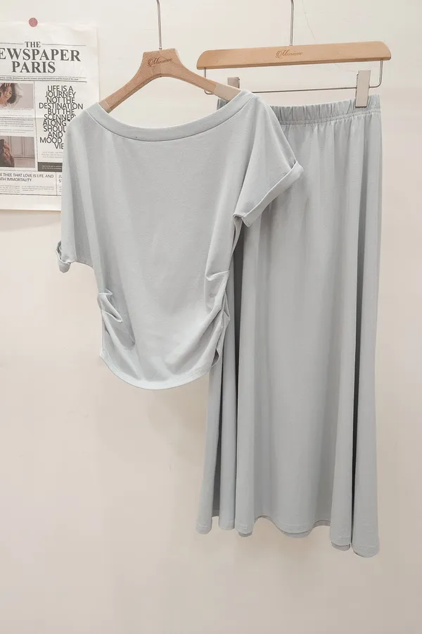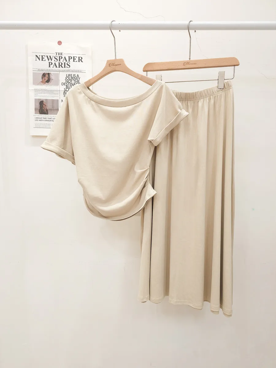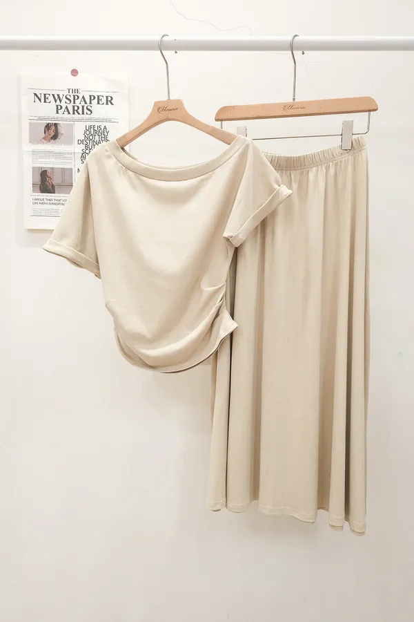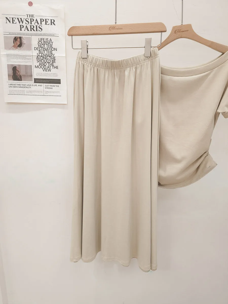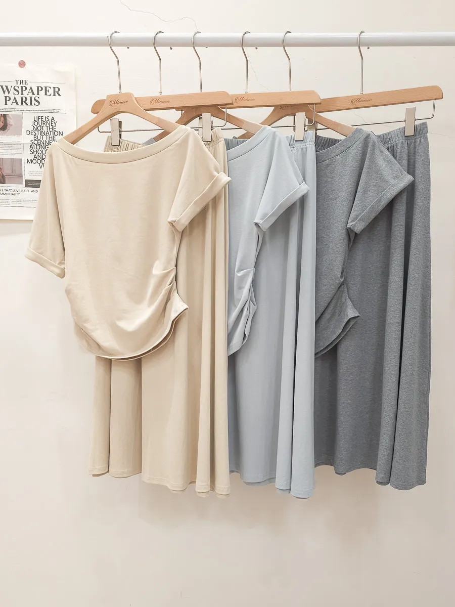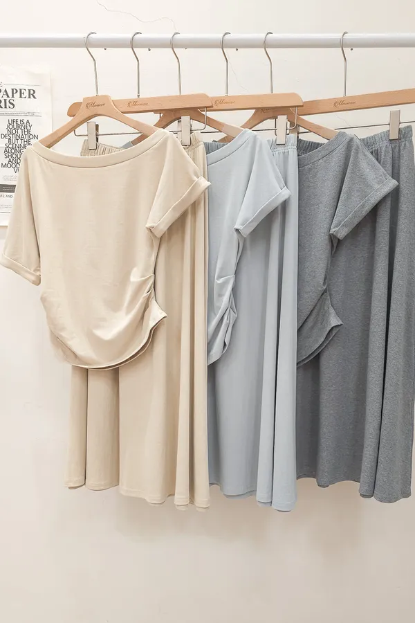 25.正韓 抓皺腰線棉質中裙Set 3色