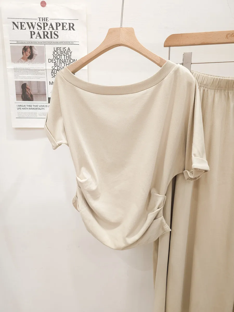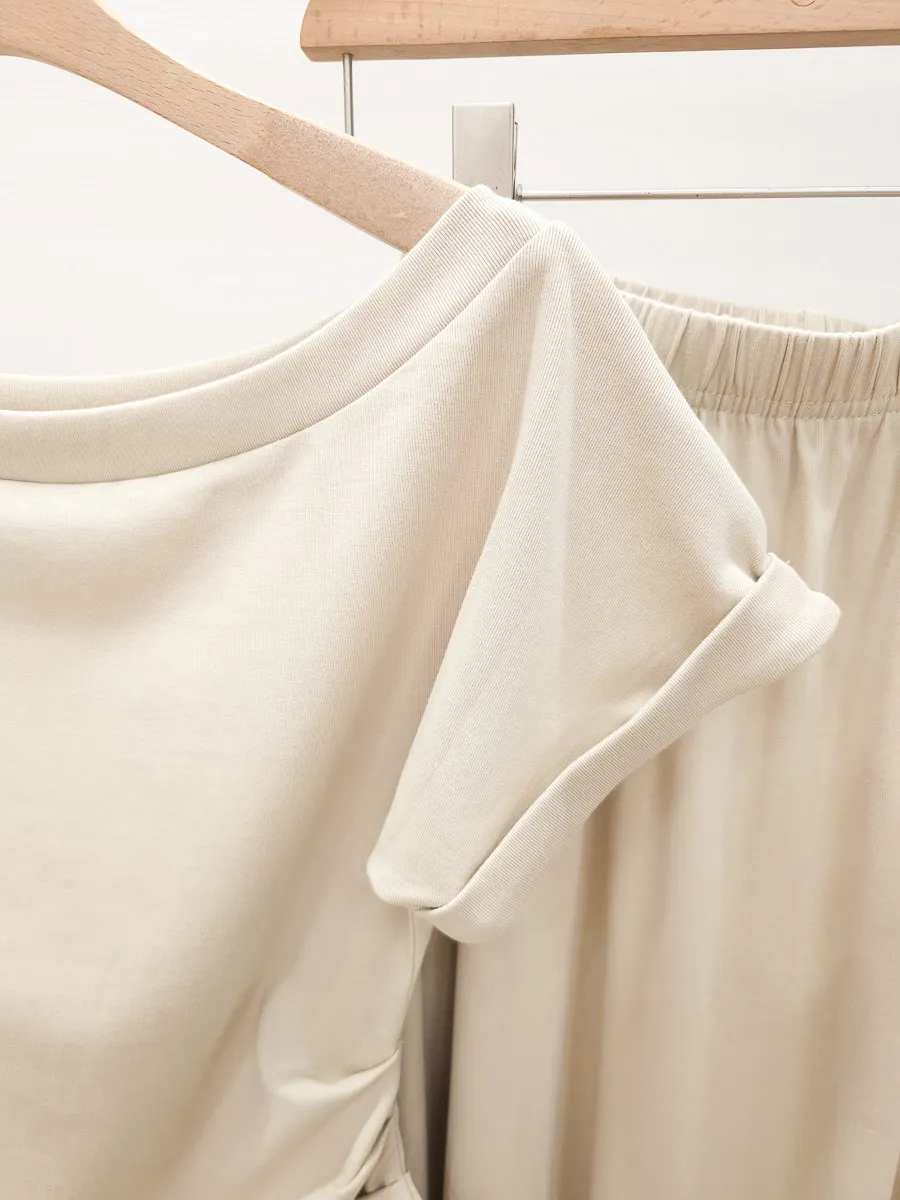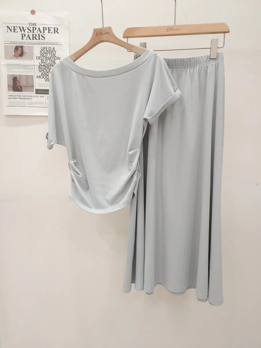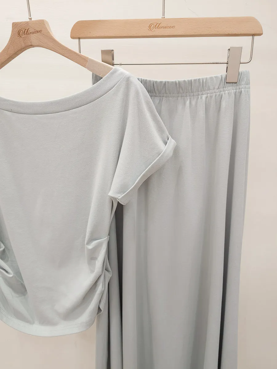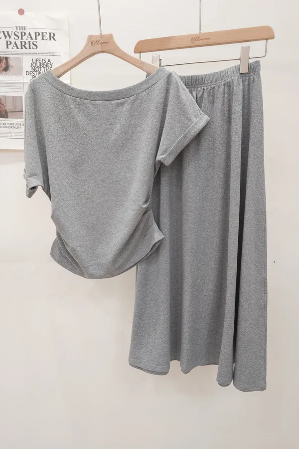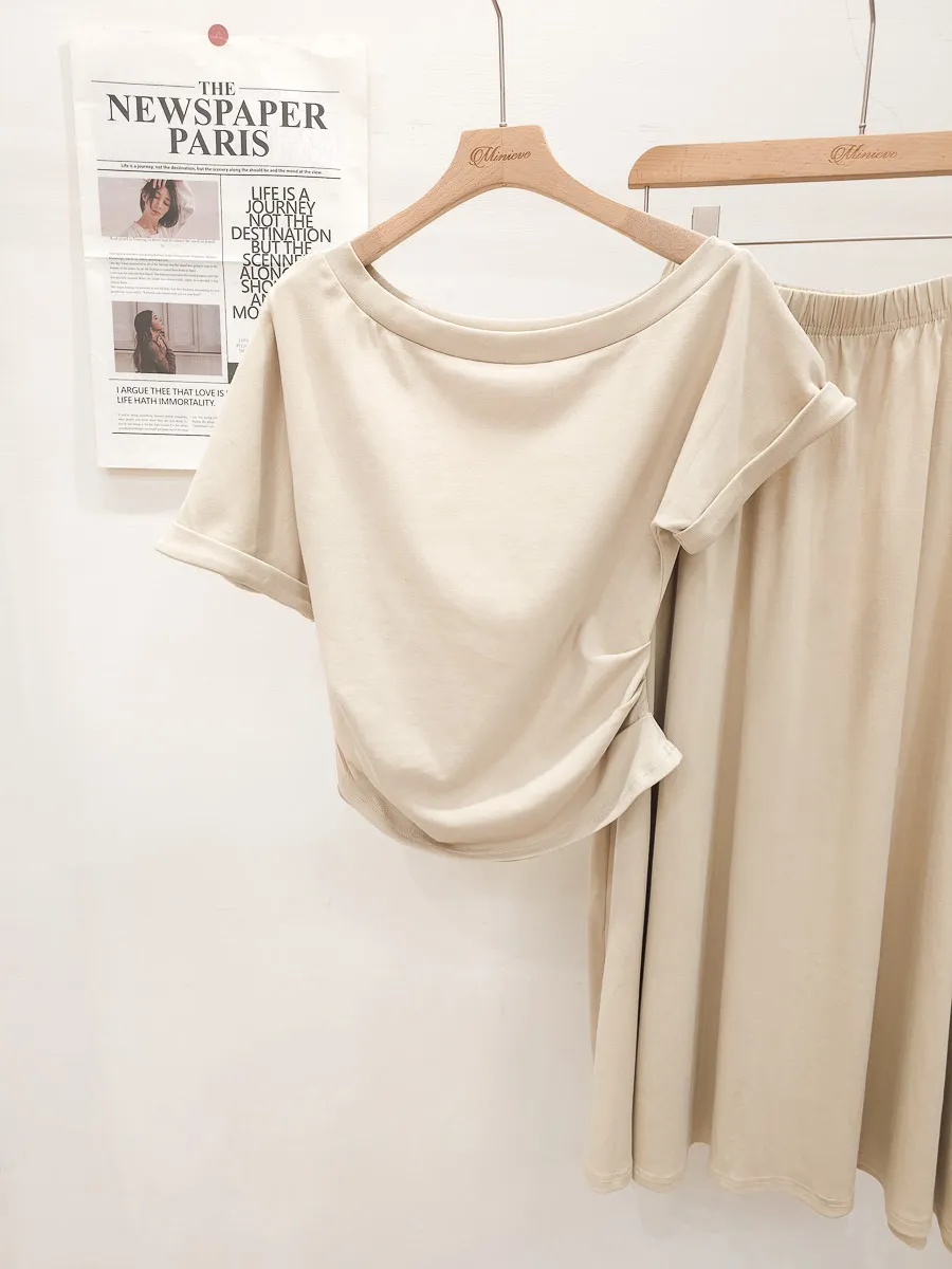 25.正韓 抓皺腰線棉質中裙Set 3色