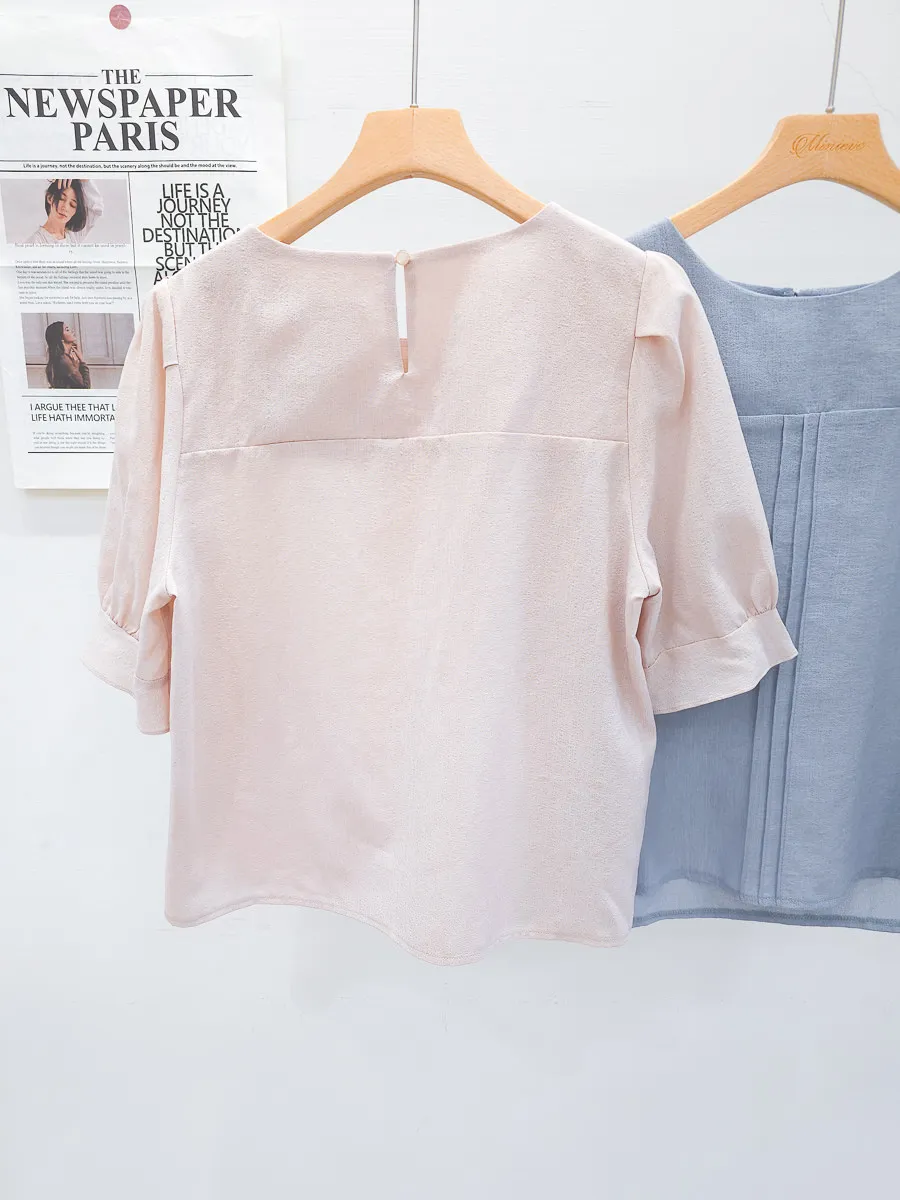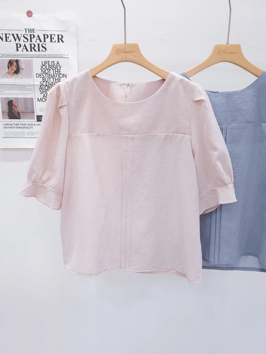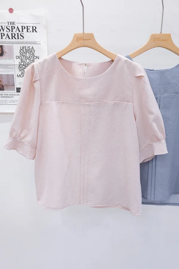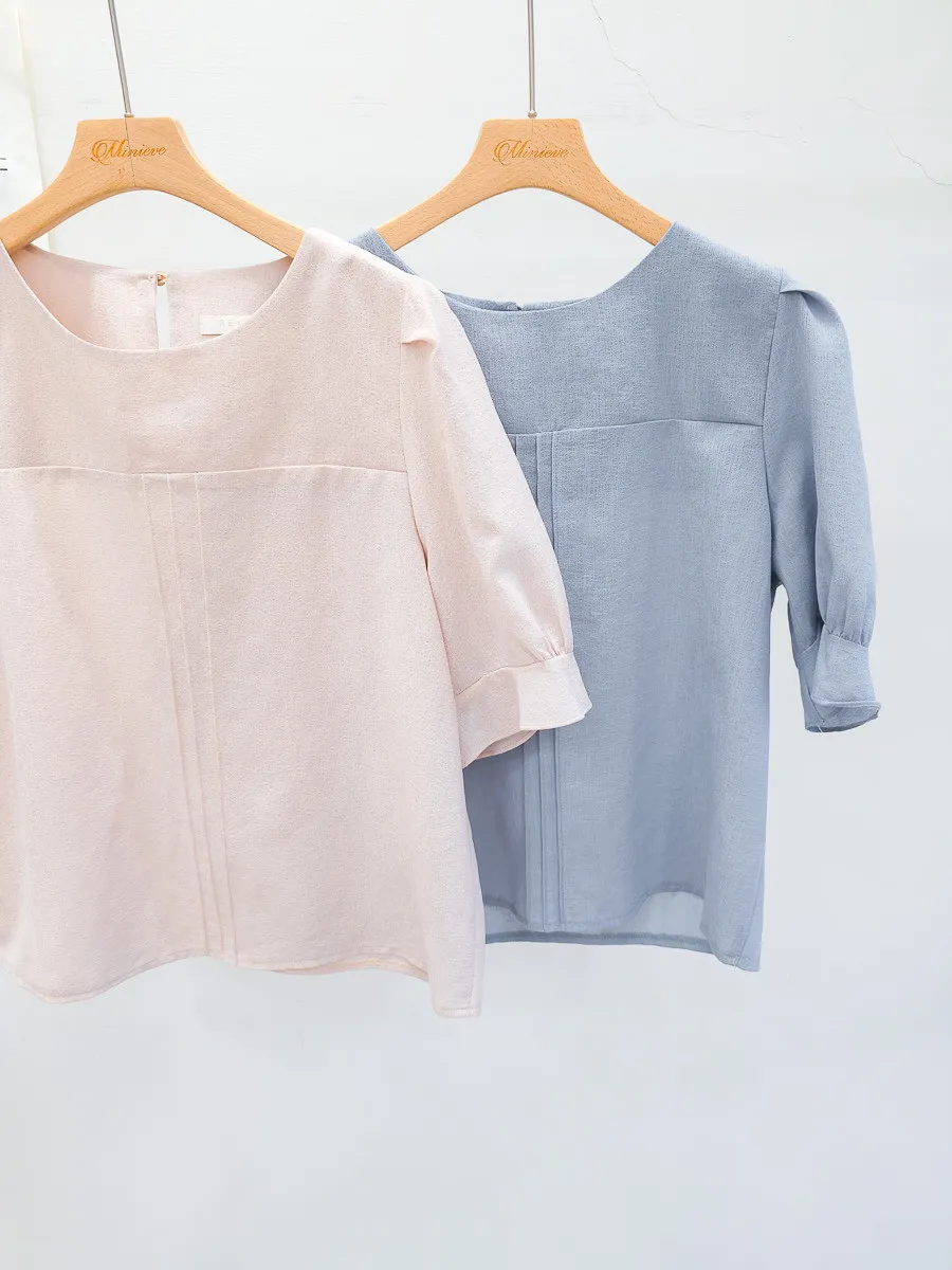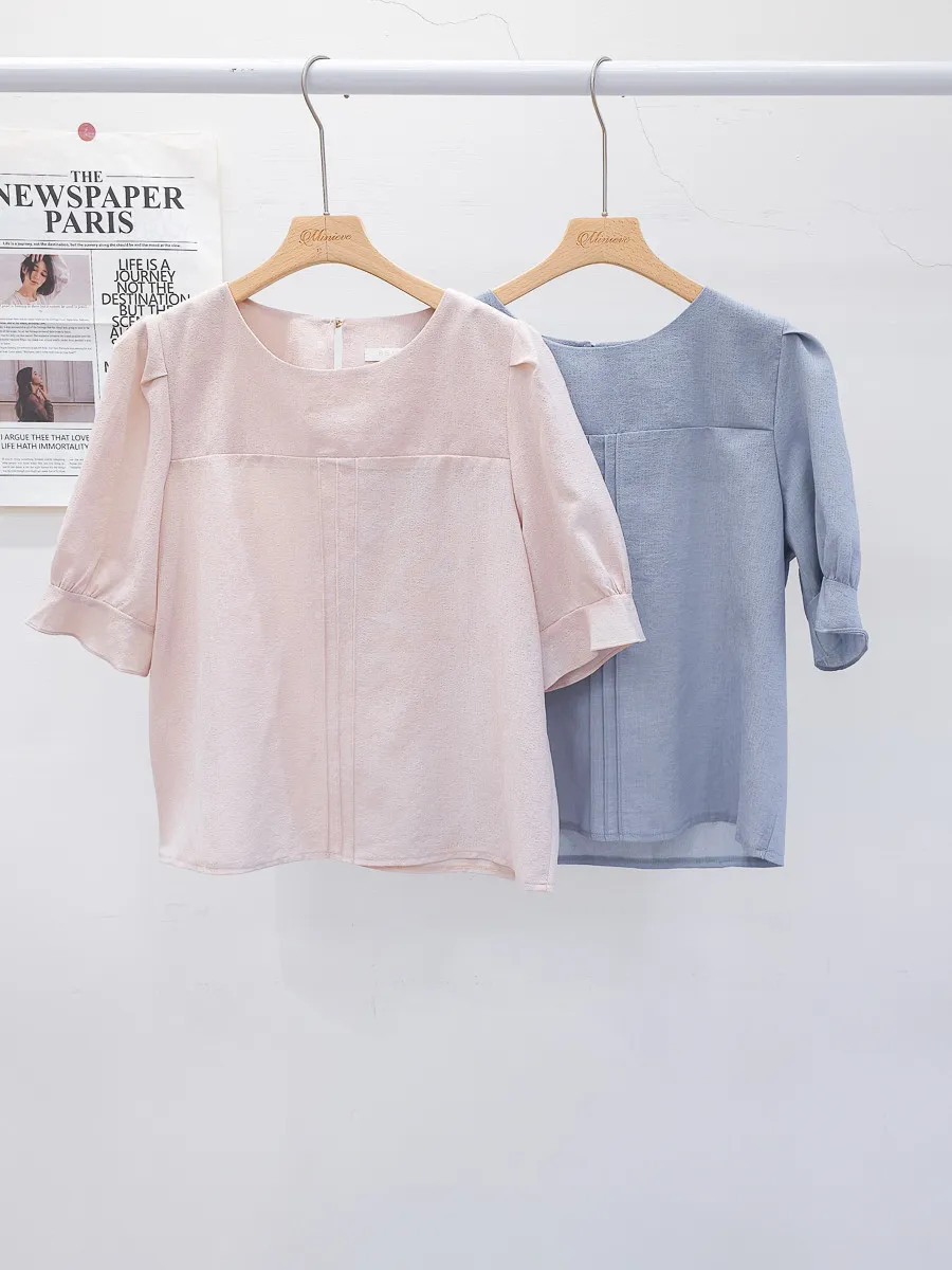 39.正韓 簡約打摺棉麻上衣 2色