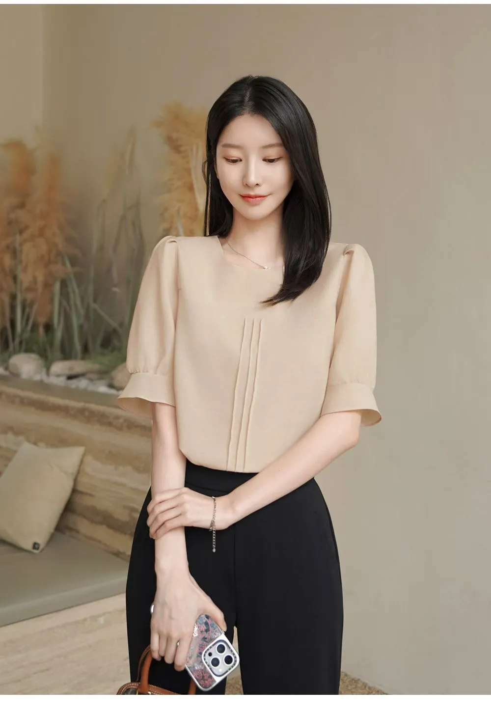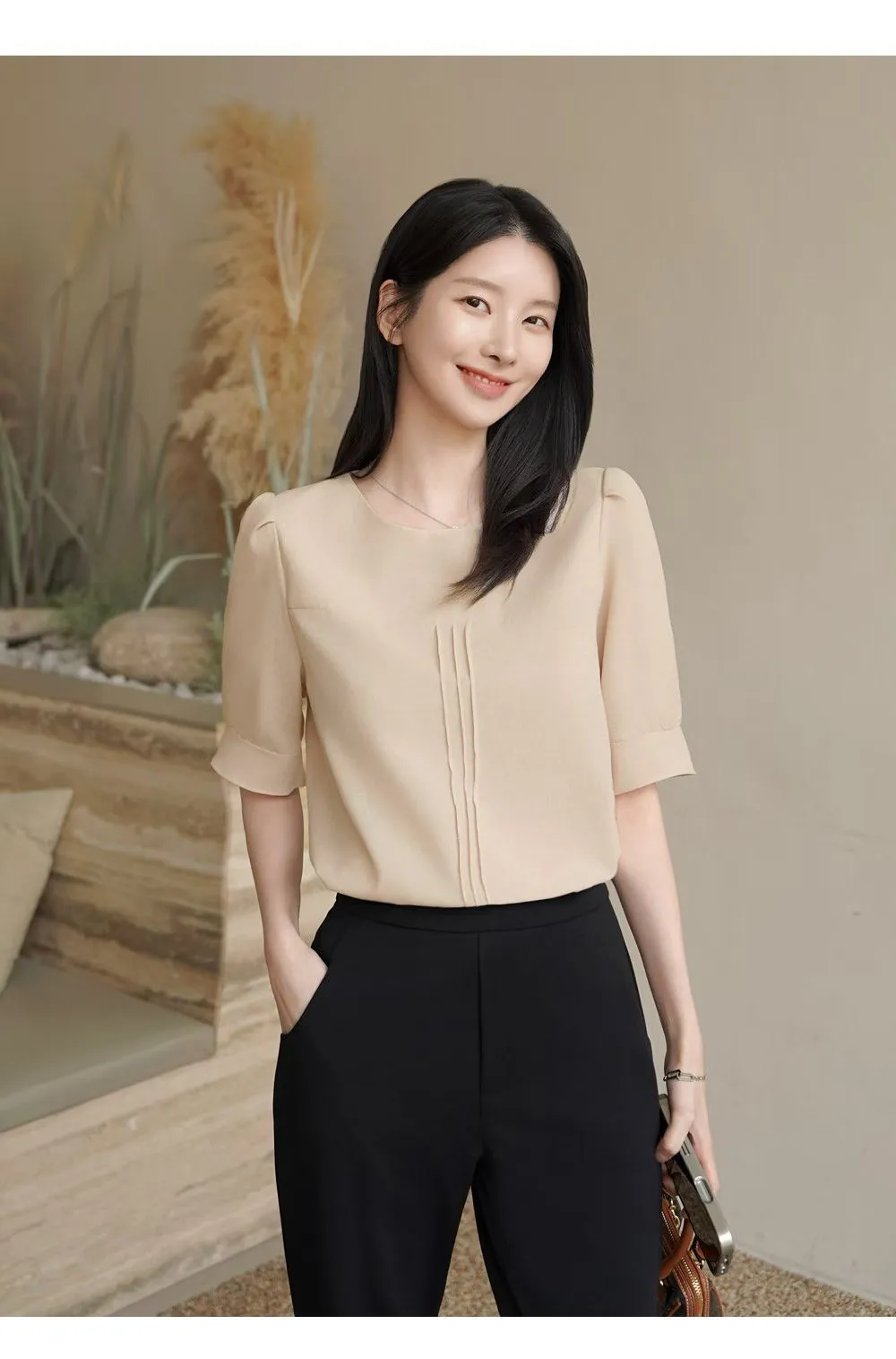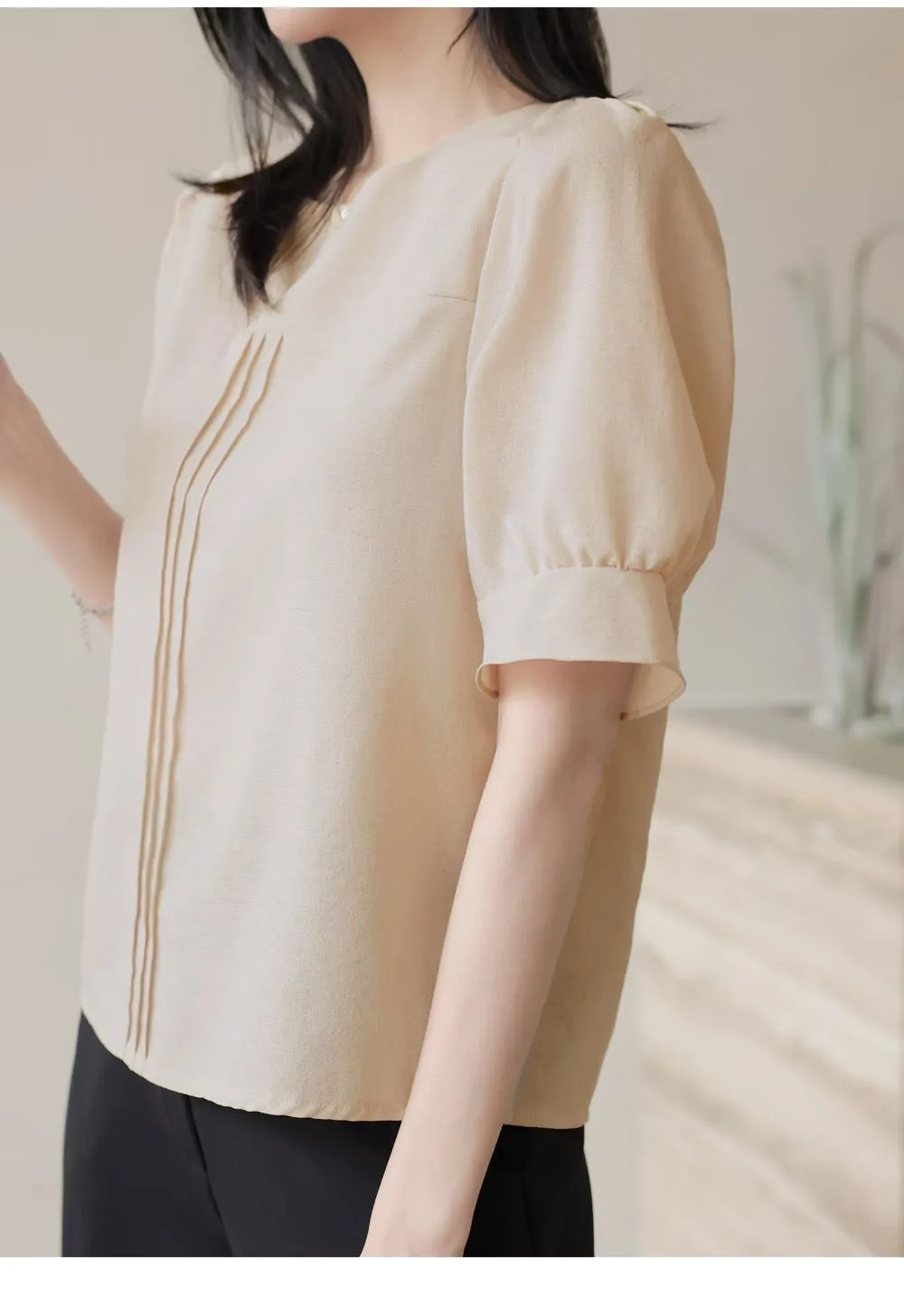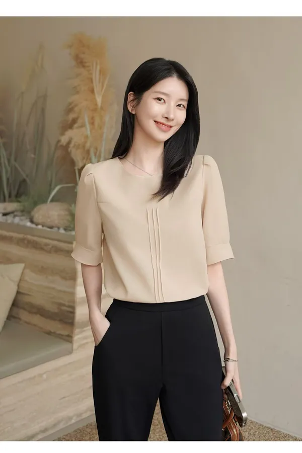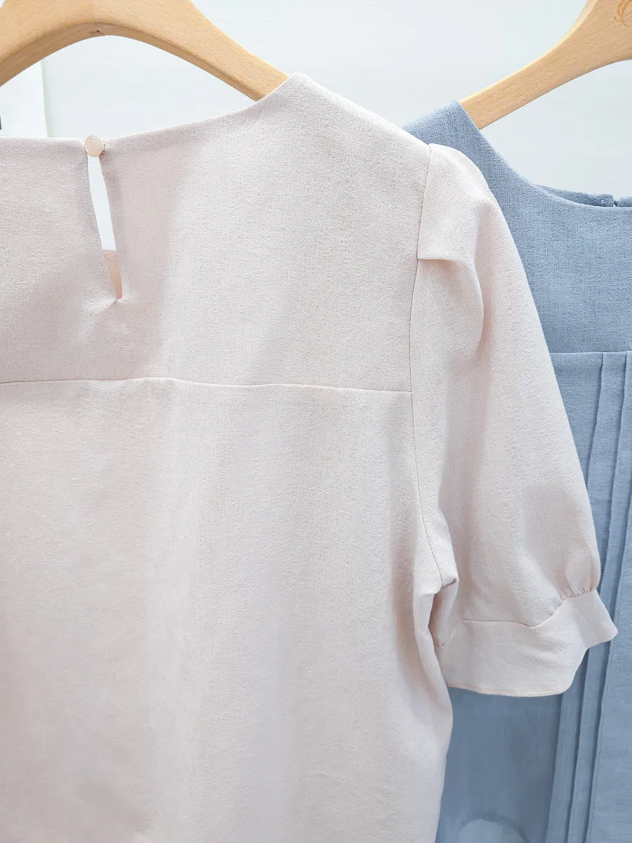 39.正韓 簡約打摺棉麻上衣 2色